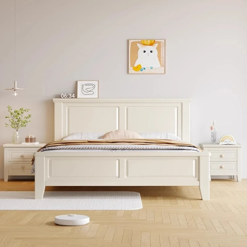 Modern American Cream Style Solid Wood Double Bed - 1.5m & 1.8m White Princess Single Bed for Minimalist Bedroom, Perfect for Couples and Newlyweds.