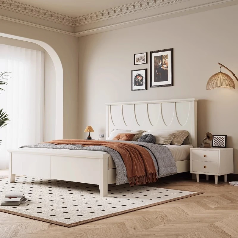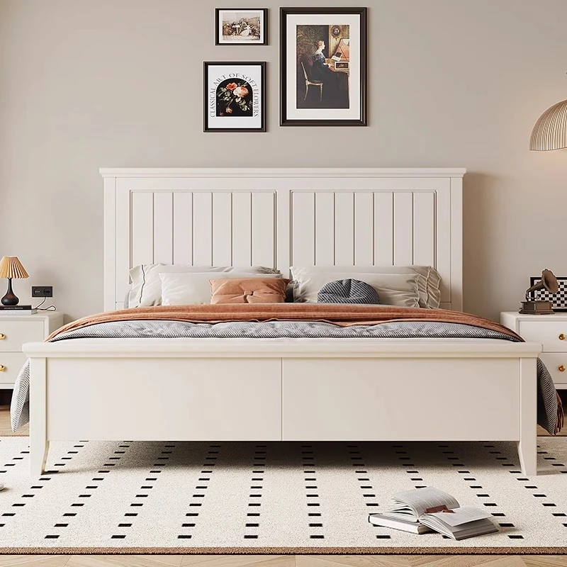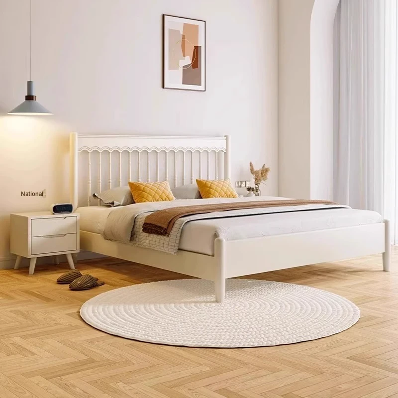 Modern Minimalist Cream-Style 1.5m American Solid Wood Bed - Elegant 1.8m Double Bed for Main Bedroom - Spacious White Double Bed for Stylish Homes