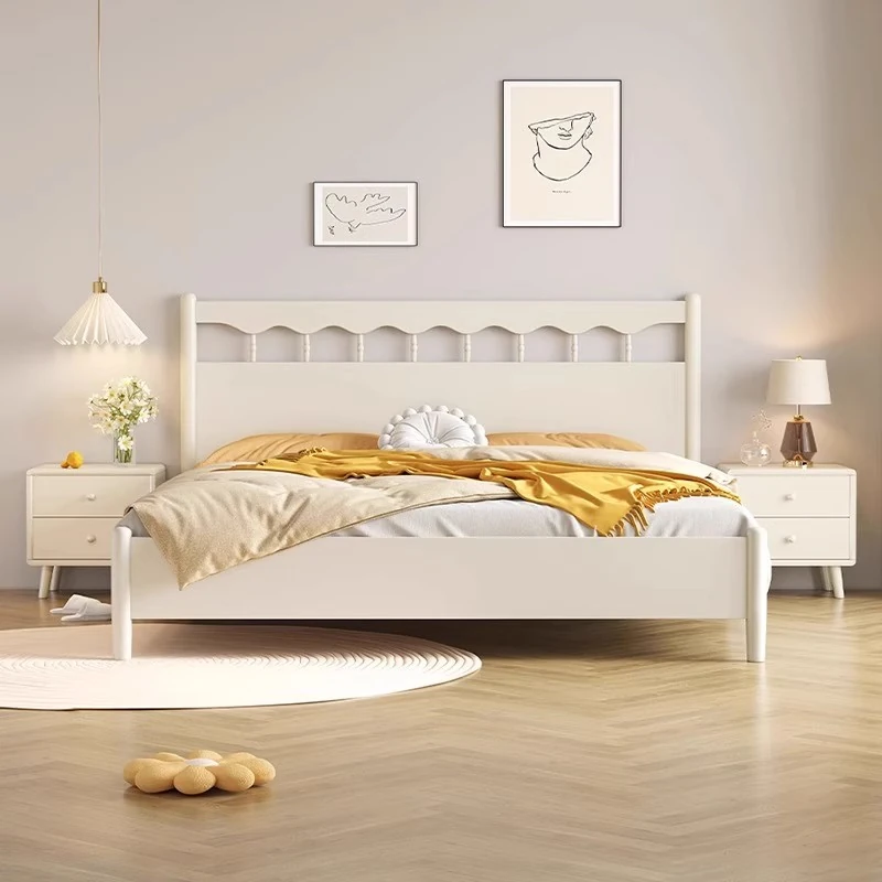 New Creamy Style Solid Wood Bed for Small Spaces - 1.5m White Princess Bed & 1.8m Double Marriage Bed - American Style for Your Master Bedroom
