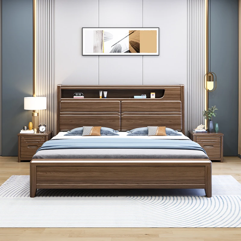 Modern Minimalist Imported Walnut Solid Wood Bed - 1.5m & 1.8m Luxury High Storage Bedroom Double Bed for Couples - Stylish & Functional Design for Your Master Bedroom