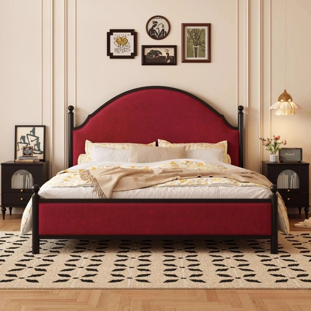 Retro American Style Upholstered Bed - Modern Minimalist 1.8m Double Bed & 1.5m Black Solid Wood Bed - French Light Luxury for Master Bedroom