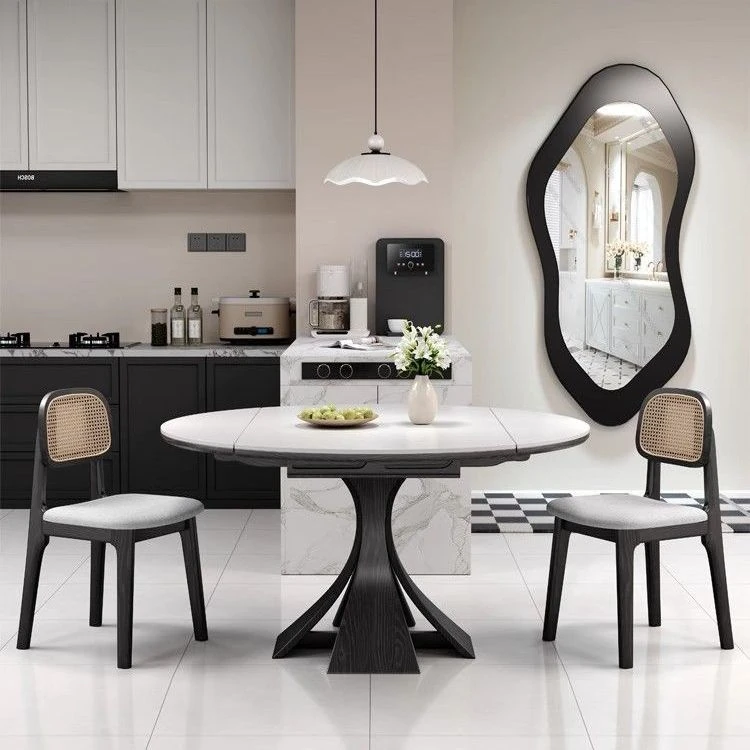 Creamy Style Rock Plate Dining Table and Chair Set - Space-Saving, Extendable and Foldable Modern Minimalist Round/Square Table for Small Homes