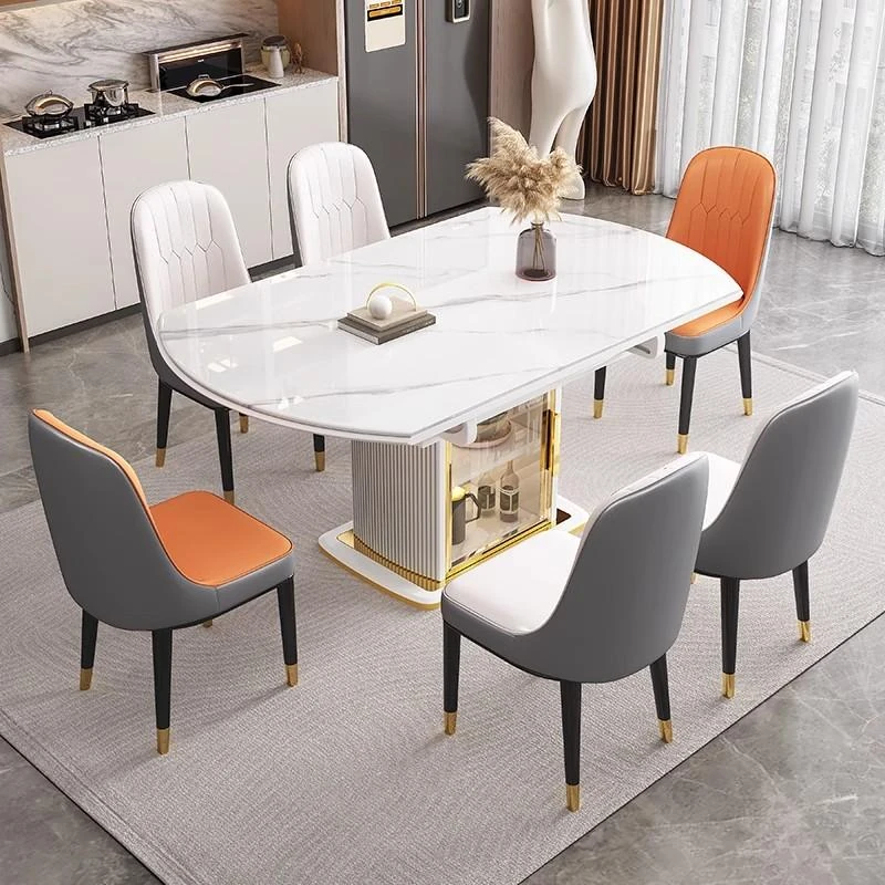 Modern Minimalist Creamy Rock Slab Dining Table Set with Extendable Functionality for Small Spaces - 2024 Light Luxury Home Dining Solution