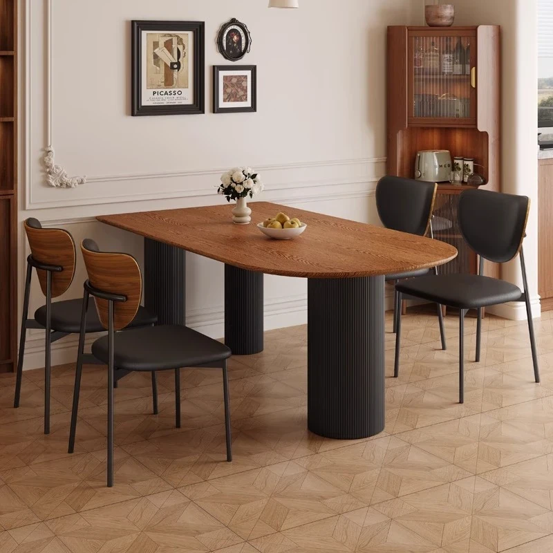 Vintage Solid Wood Roman Column Dining Table for Small Spaces - Modern Minimalist Design, 2025 New Retro Style Chairs Included
