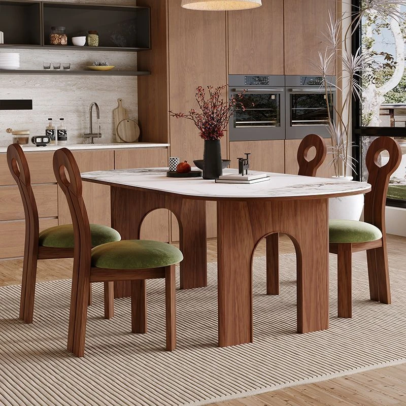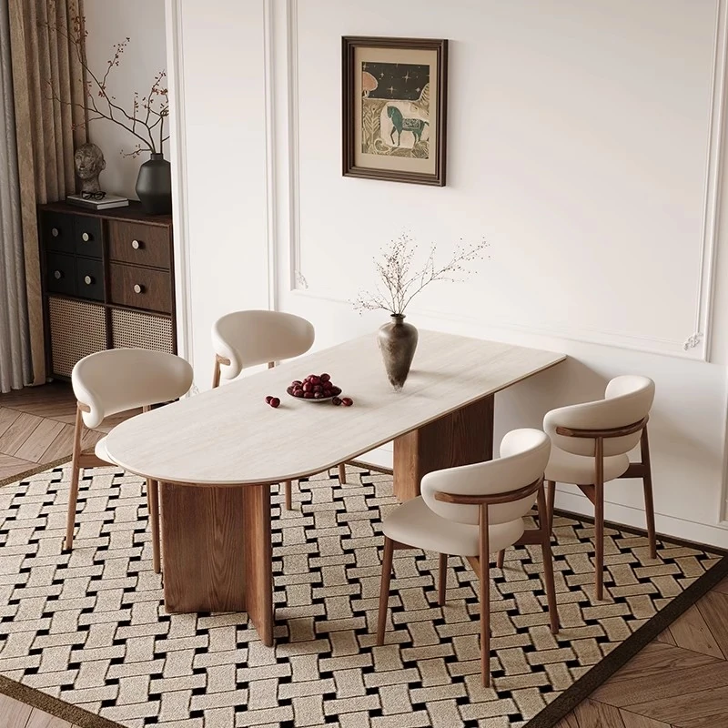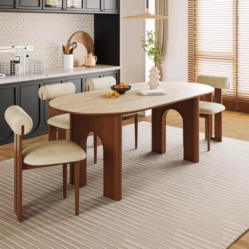 Elegant Oval Solid Wood Dining Table - Vintage Style Natural Stone Table for Small Spaces, Perfect for Living Room and Dining Area, High-End Retro Design