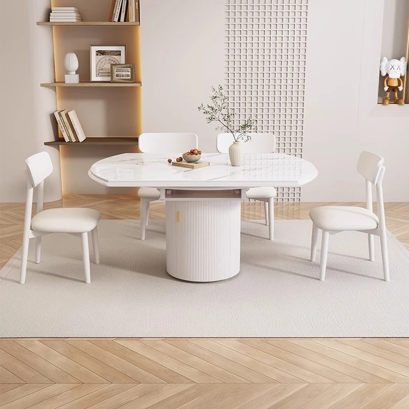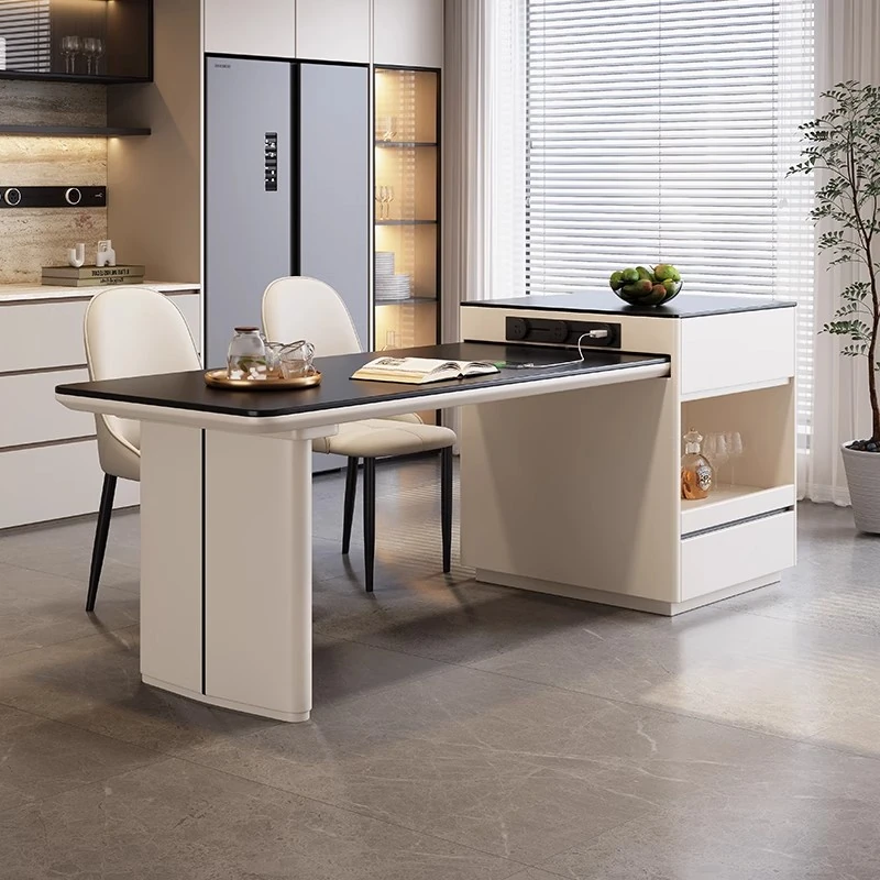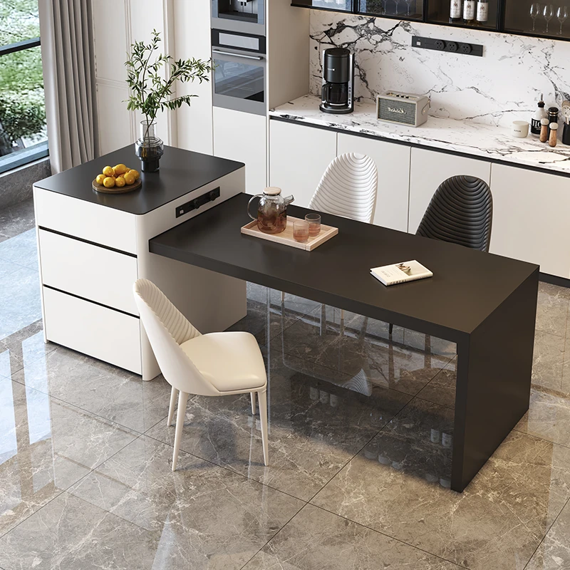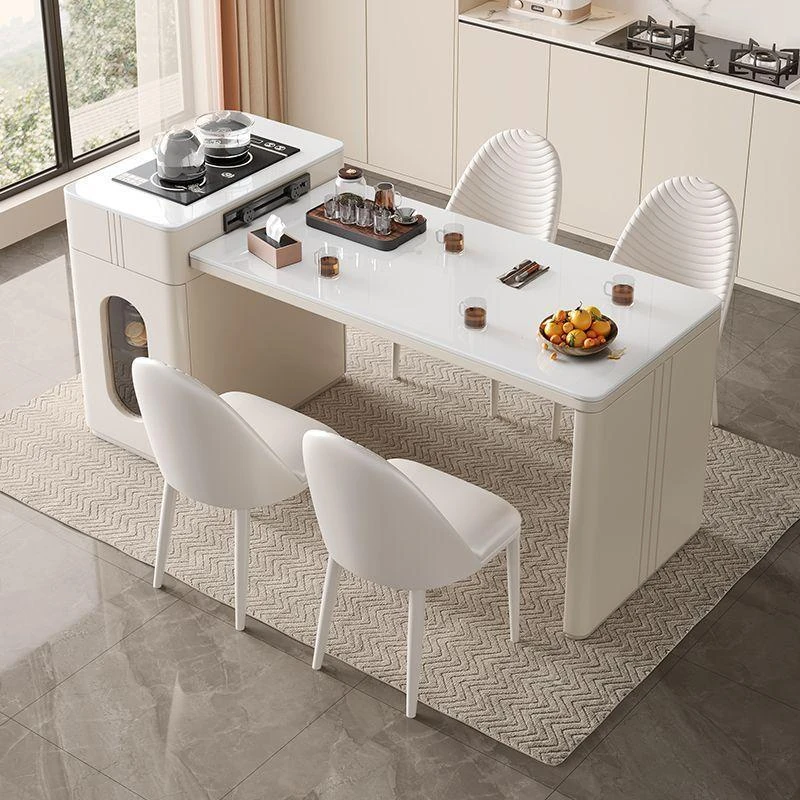 Modern Minimalist Expandable Dining Table with Integrated Storage - Premium Quality Rock Plate Island Table Set with Chairs for Home Use