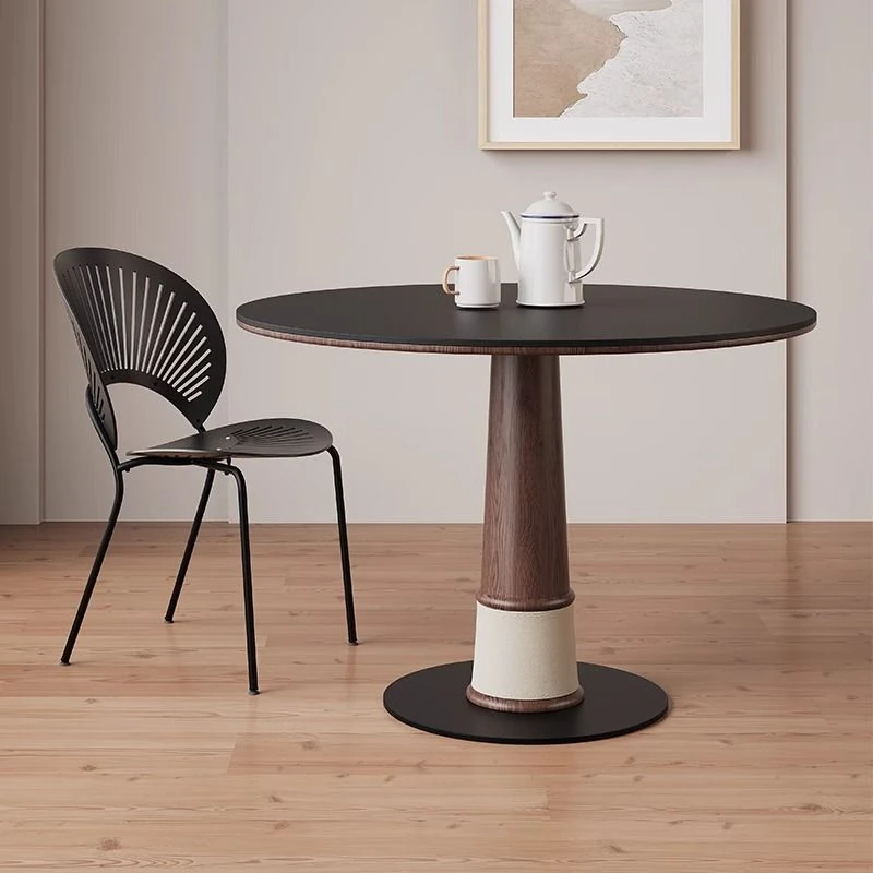 Elegant Round White Stone Dining Table with Walnut Finish - Scandinavian Style Compact Vintage Bamboo Dragonfly Minimalist Solid Wood Small Round Table for Cozy Homes