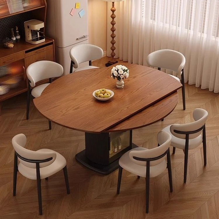 French Vintage Retractable Solid Wood Dining Table - Multi-Functional Storage Solution for Small Spaces, Foldable 2-in-1 Cabinet and Round Table