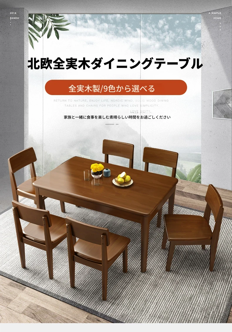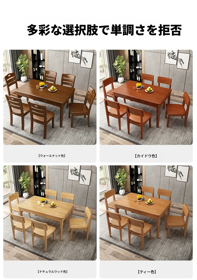 1.2メートル全実木1テーブル6椅子【自分で取り付け】