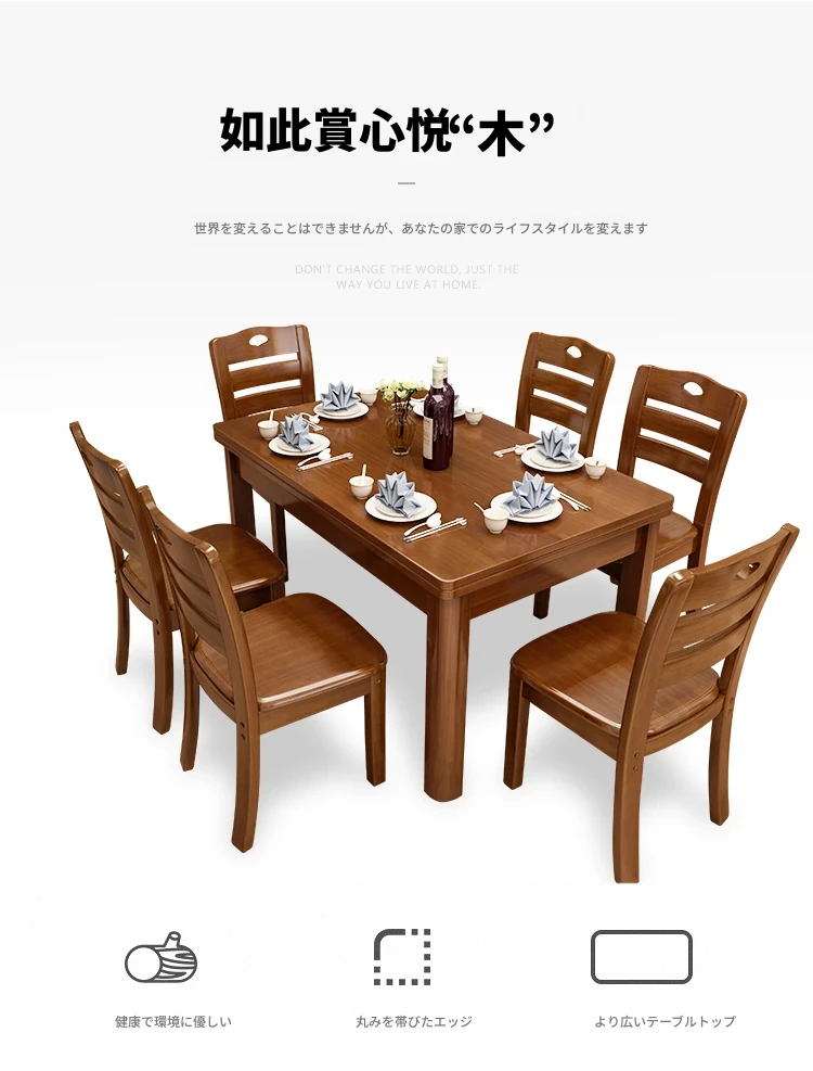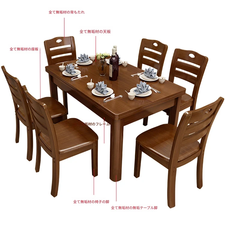 1.45メートル全無垢材1テーブル6椅子【自分で組み立て】