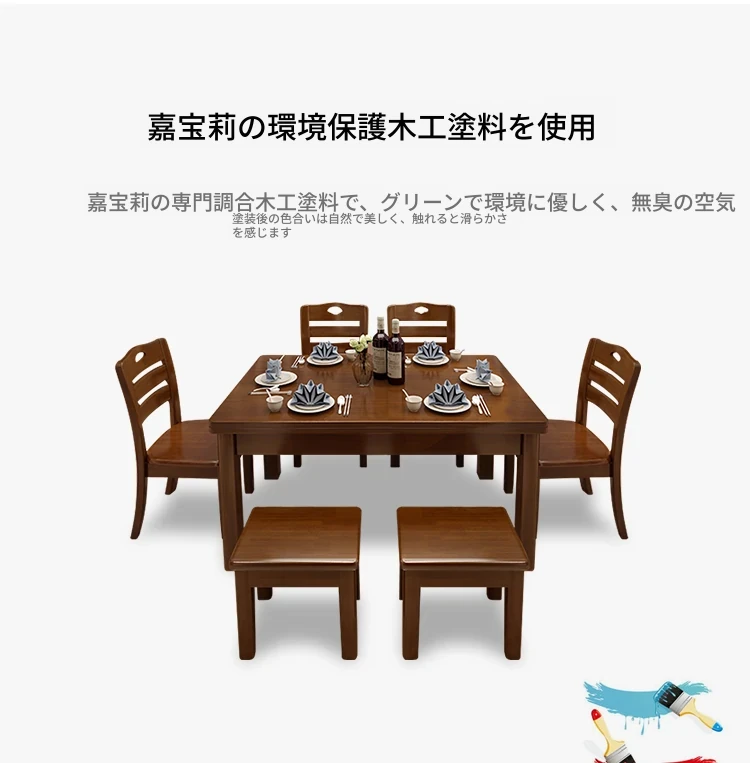 1.45メートル全無垢材1テーブル4椅子2スツール【自分で組み立て】