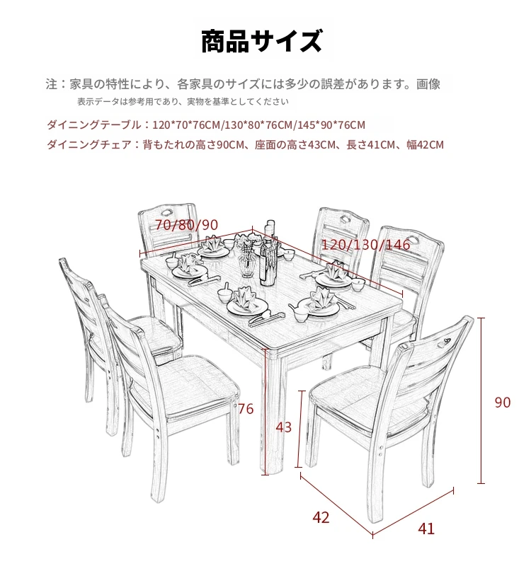1.2メートル全無垢材1テーブル6椅子【自分で組み立て】