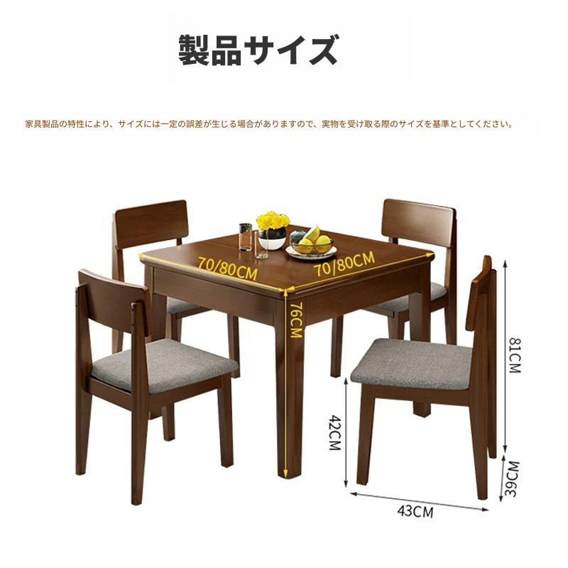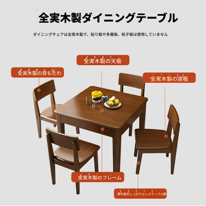 80cm小型全木製方テーブルセット - モダンでシンプルな西洋料理用ダイニングテーブル&チェア、70cmサイズでコンパクトなスペースにも最適な八仙テーブル!