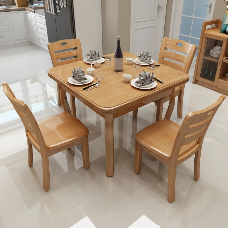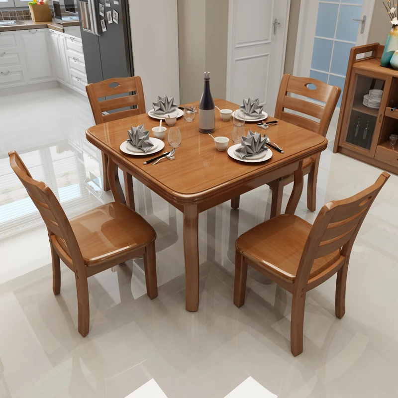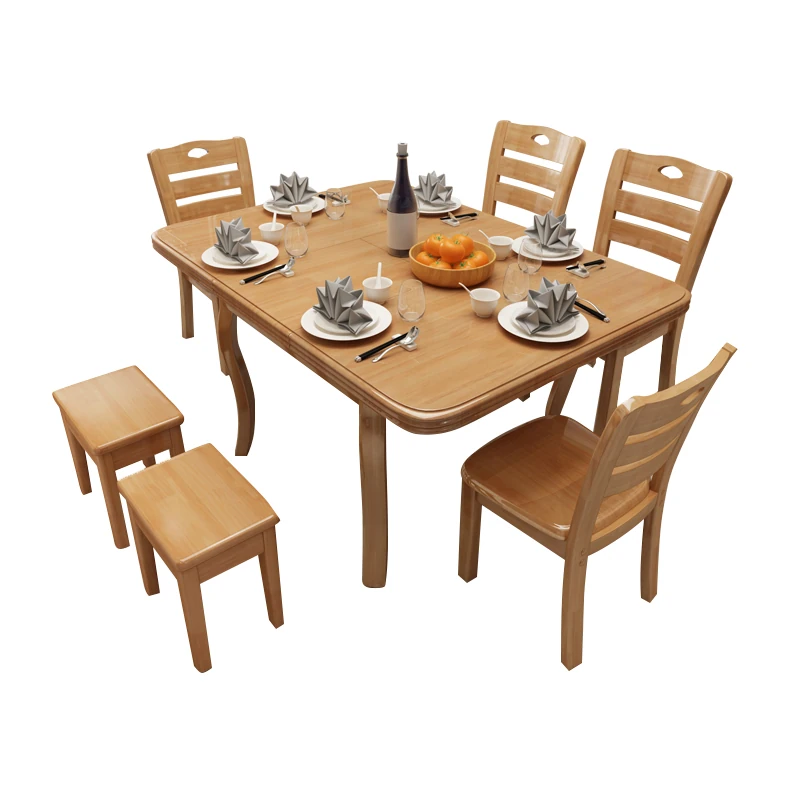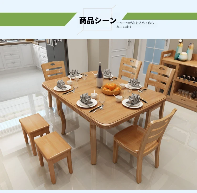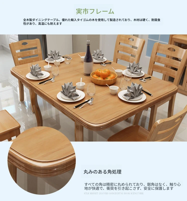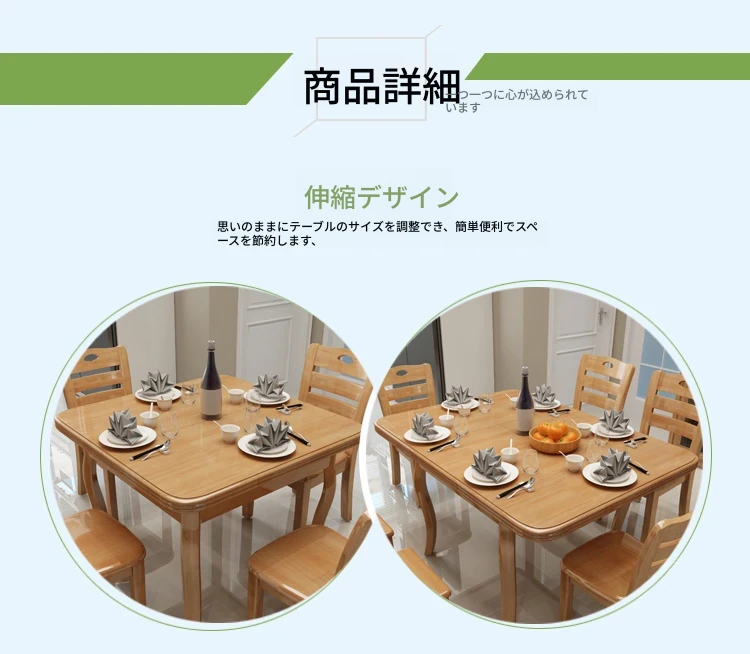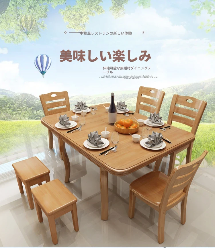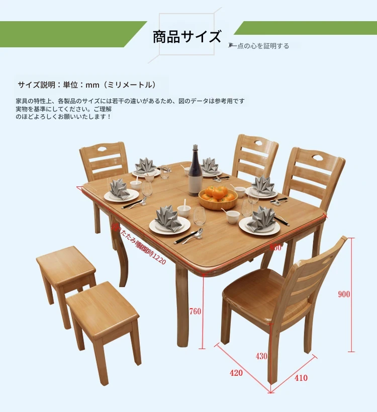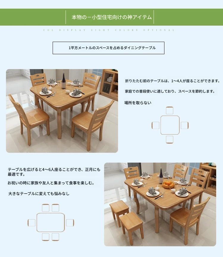 小スペースに最適!全木製4人用・6人用折りたたみ長方形ダイニングテーブルセット - シンプルでスタイリッシュ、伸縮可能なデザインで家族や友人との食事を楽しむ!