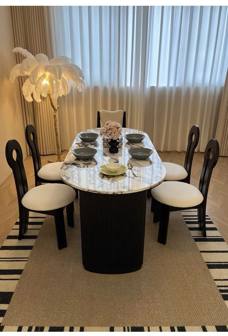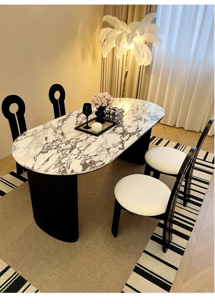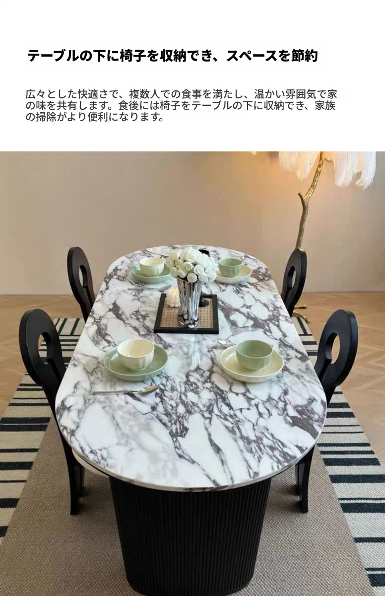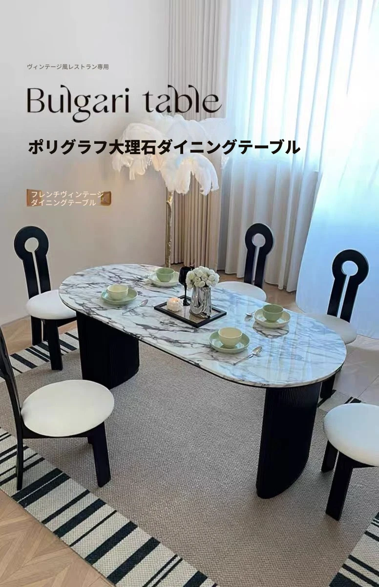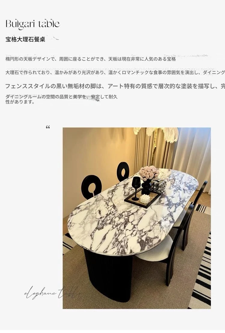 クリームボグリ風フレンチ大理石ダイニングテーブル - レトロな楕円形、小型住宅に最適なシンプルでモダンなラグジュアリー食卓