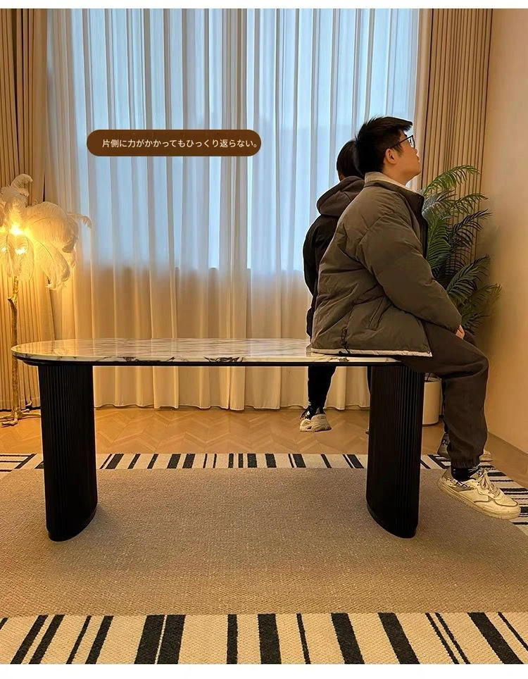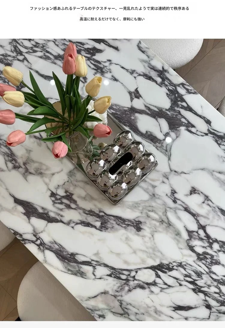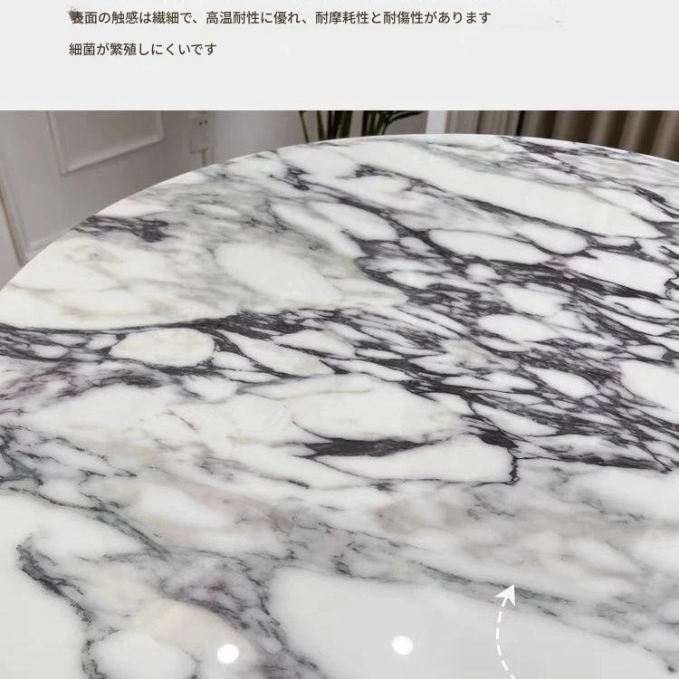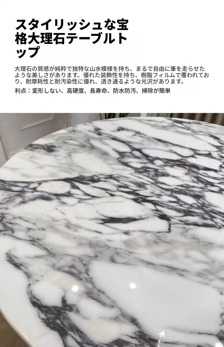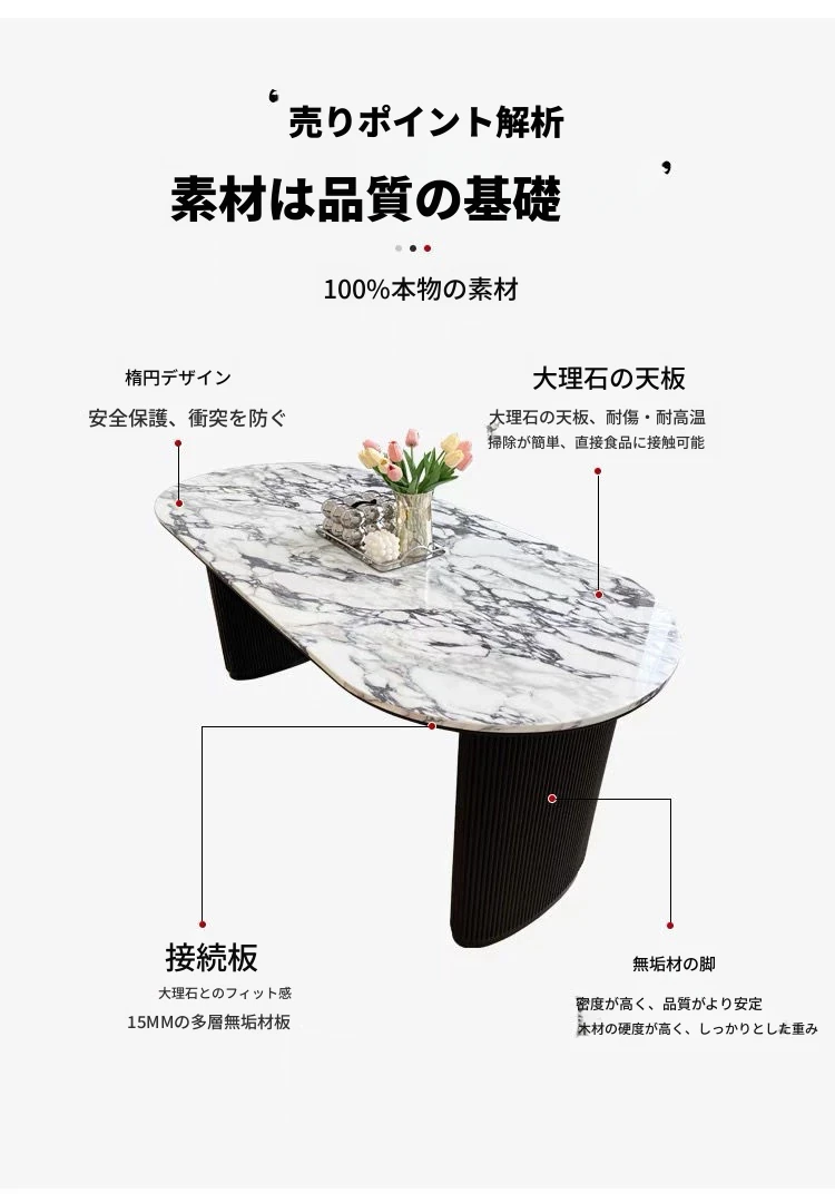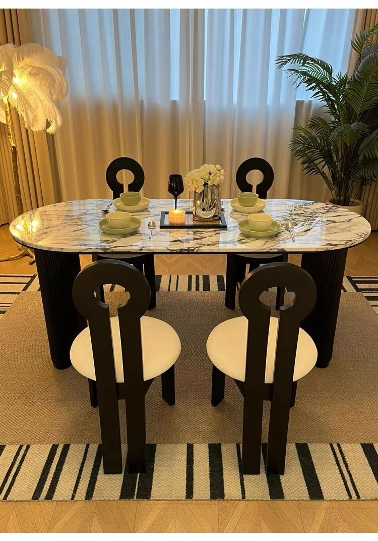 クリームボグリ風フレンチ大理石ダイニングテーブル - レトロな楕円形、小型住宅に最適なシンプルでモダンなラグジュアリー食卓