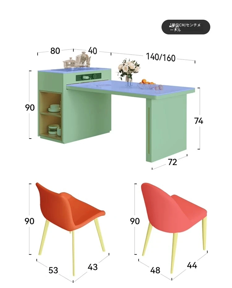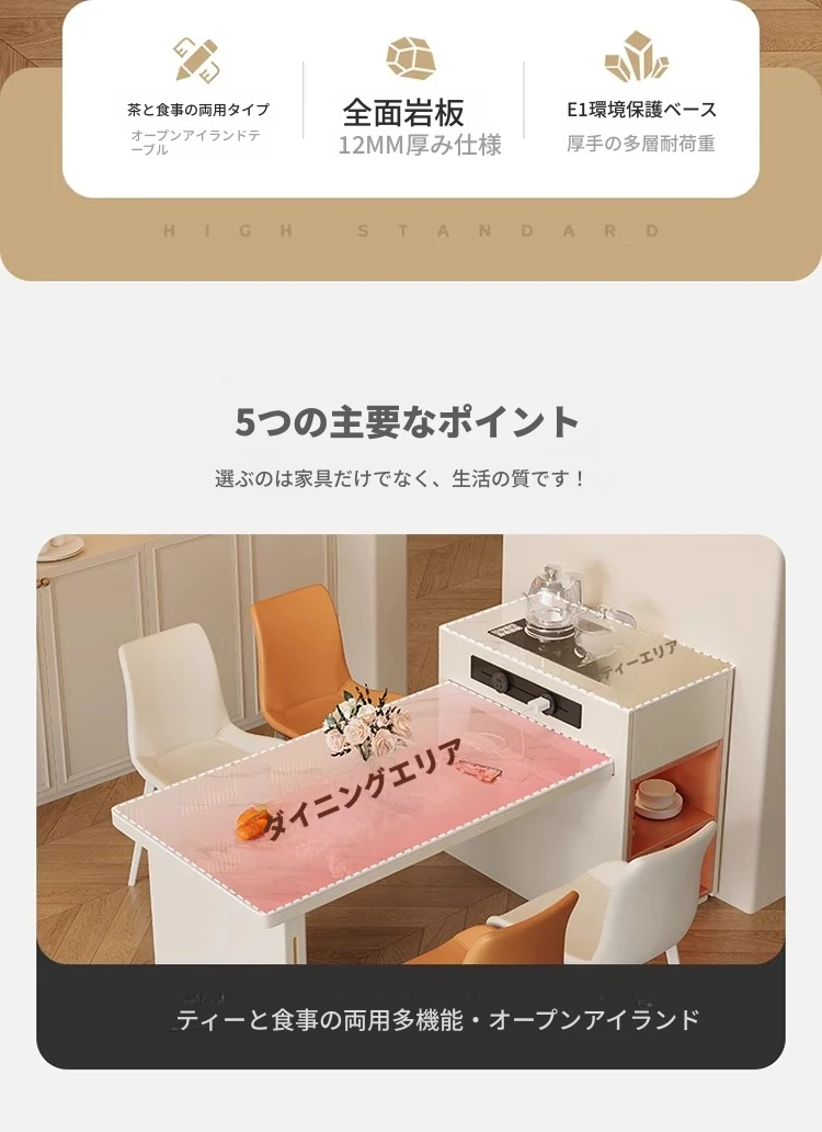 1.4-2.0mアイランドテーブル+電磁調理器+やかん+4脚の椅子