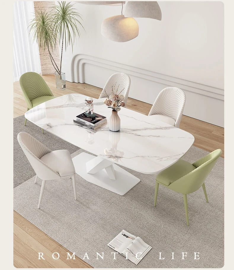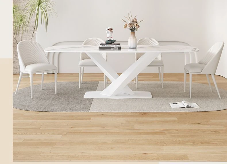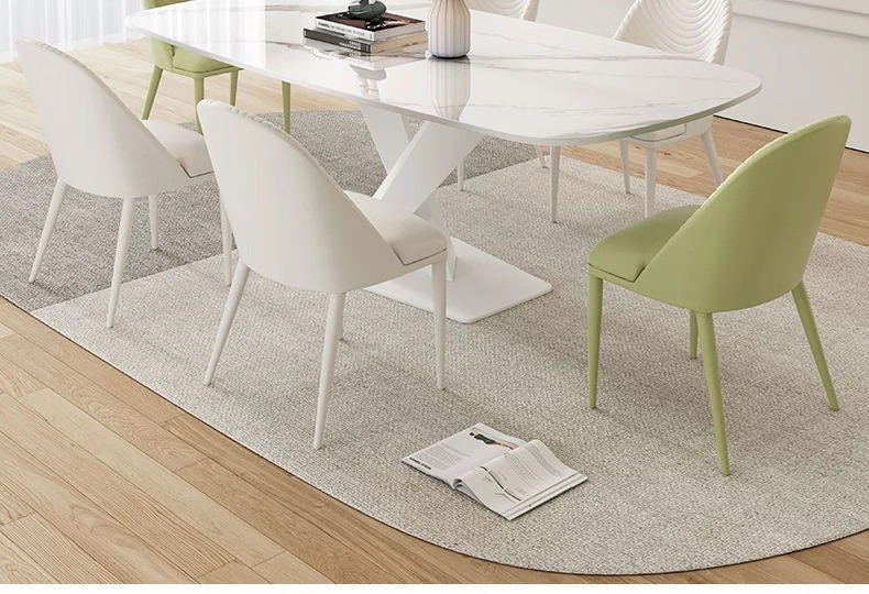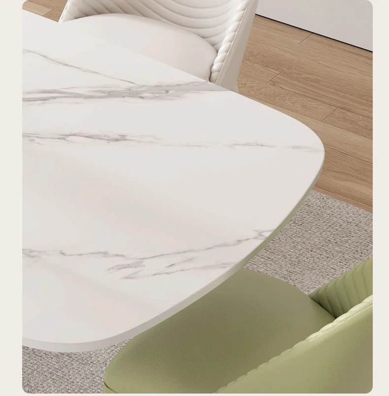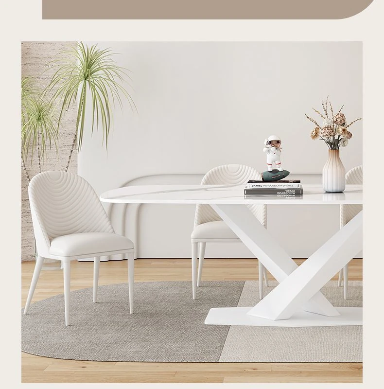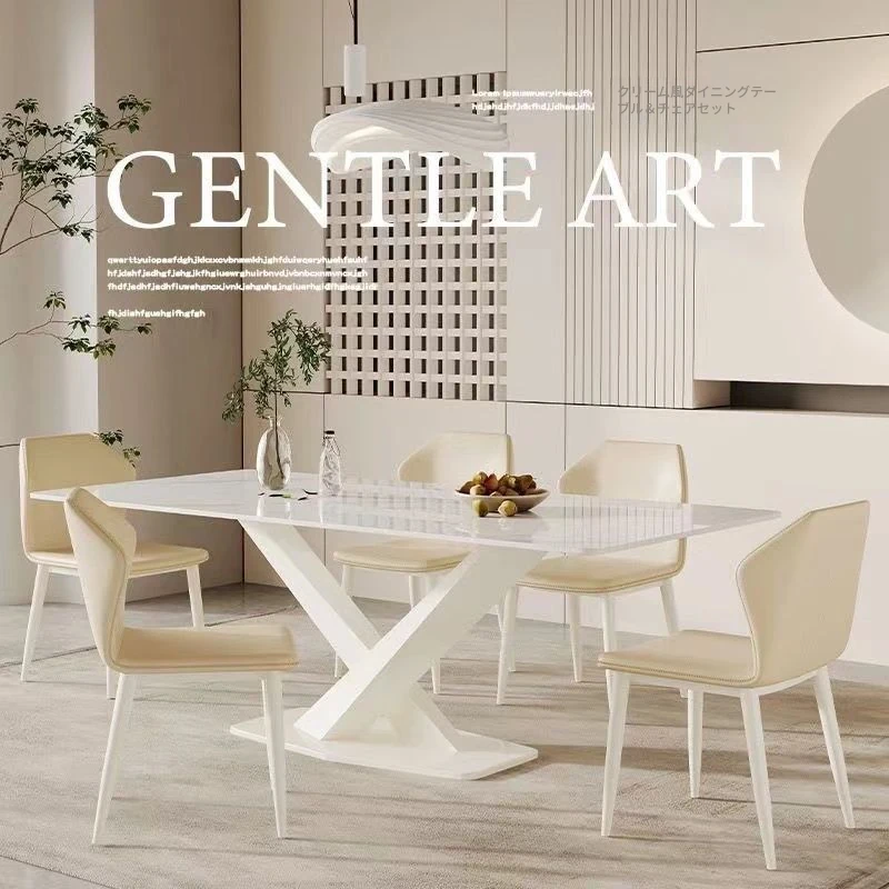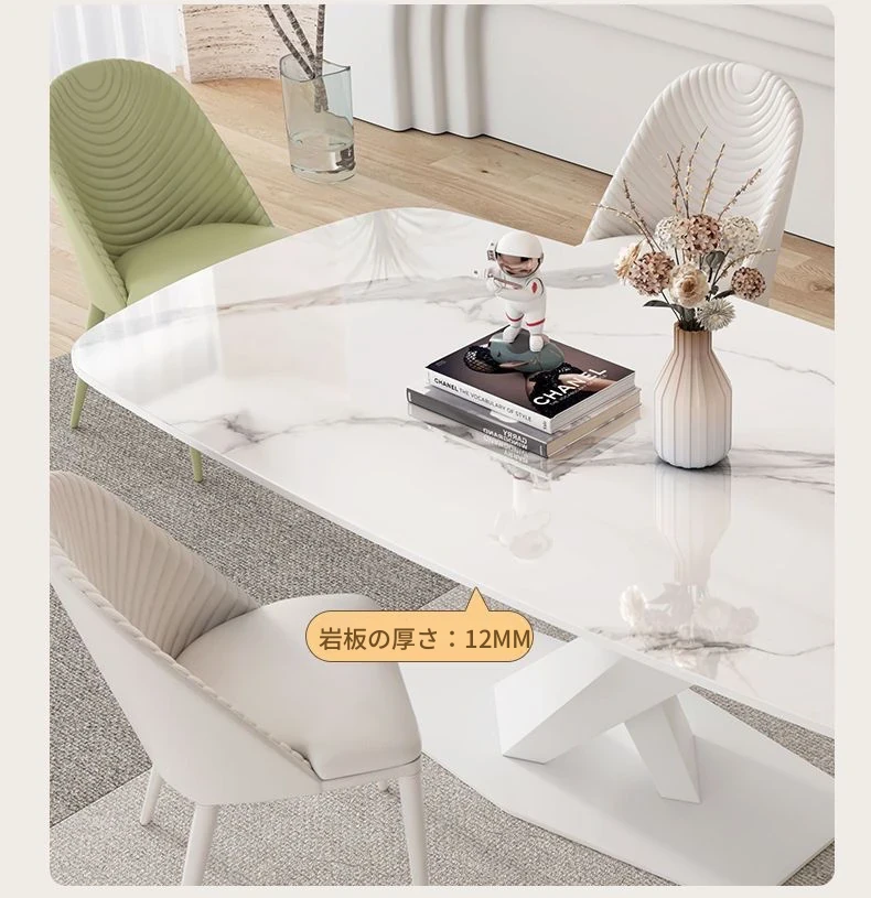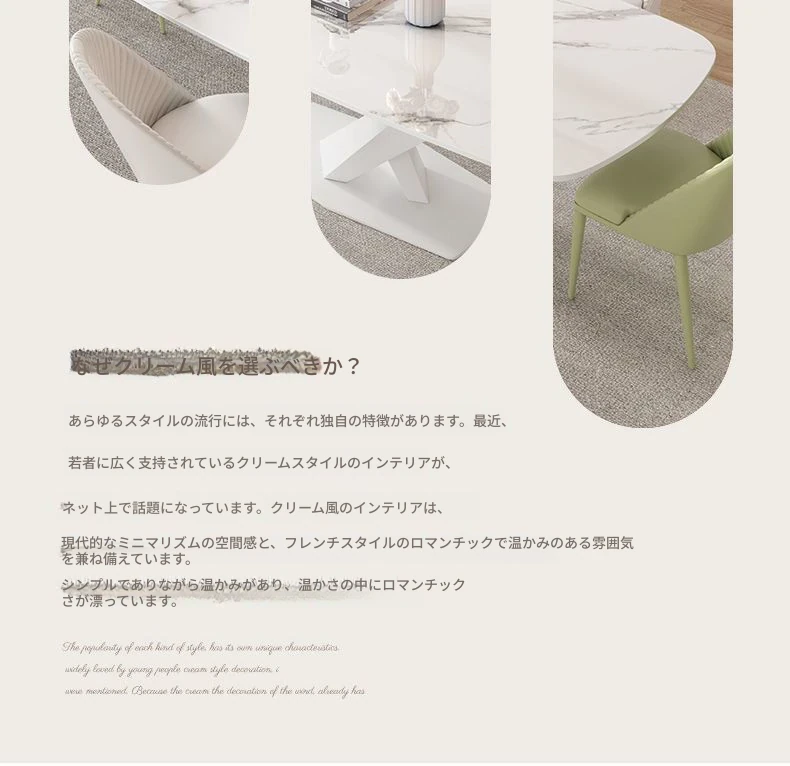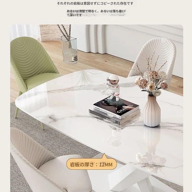 クリーミーな風合いのロックプレートダイニングテーブル&チェアセット!家庭用小型1.2m長方形、人気のホワイトデザイン、1.8mサイズでおしゃれな食卓を演出。快適な食事時間をお楽しみください!
