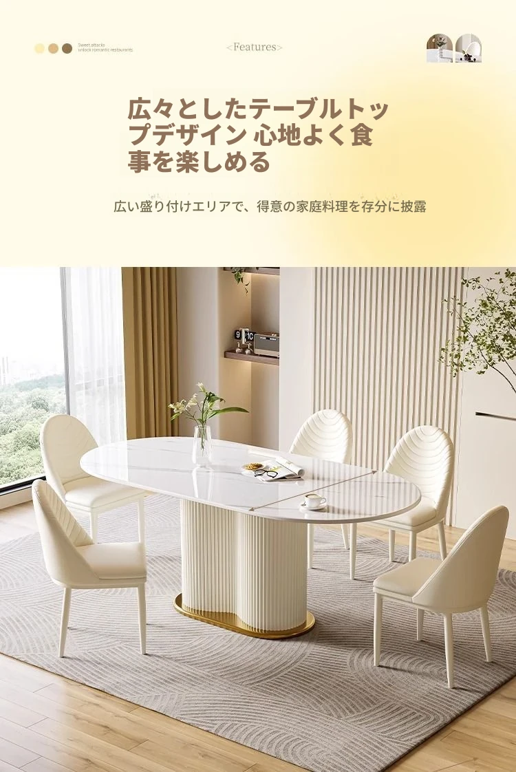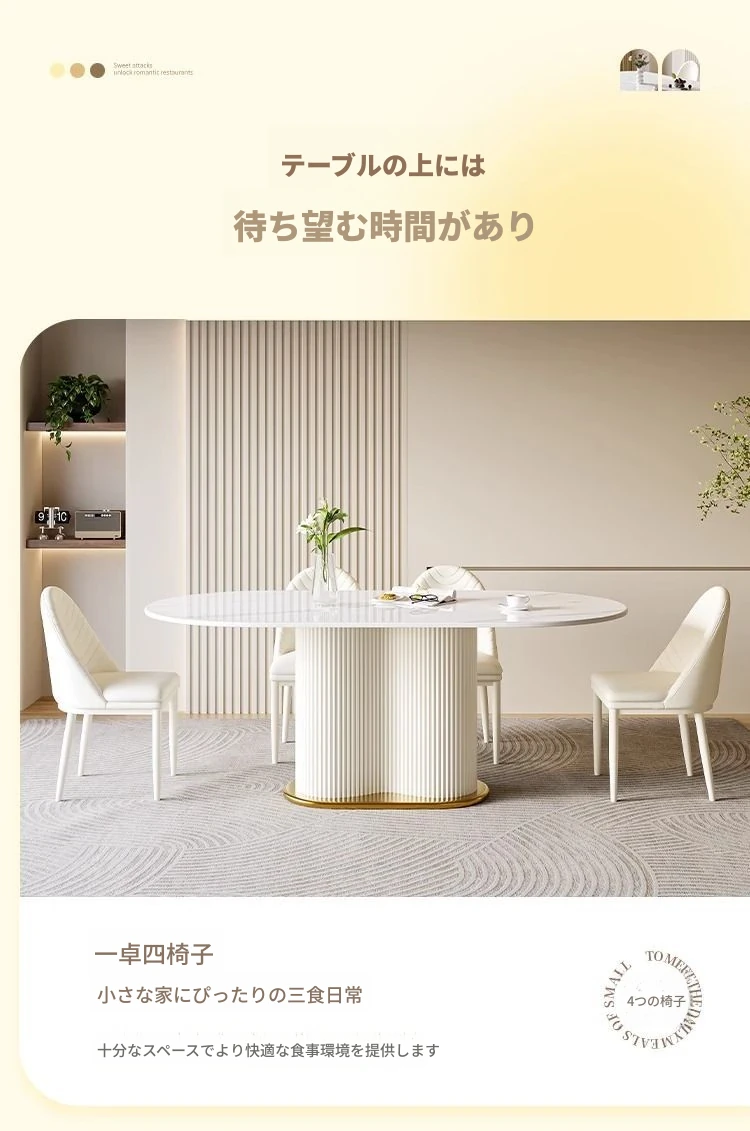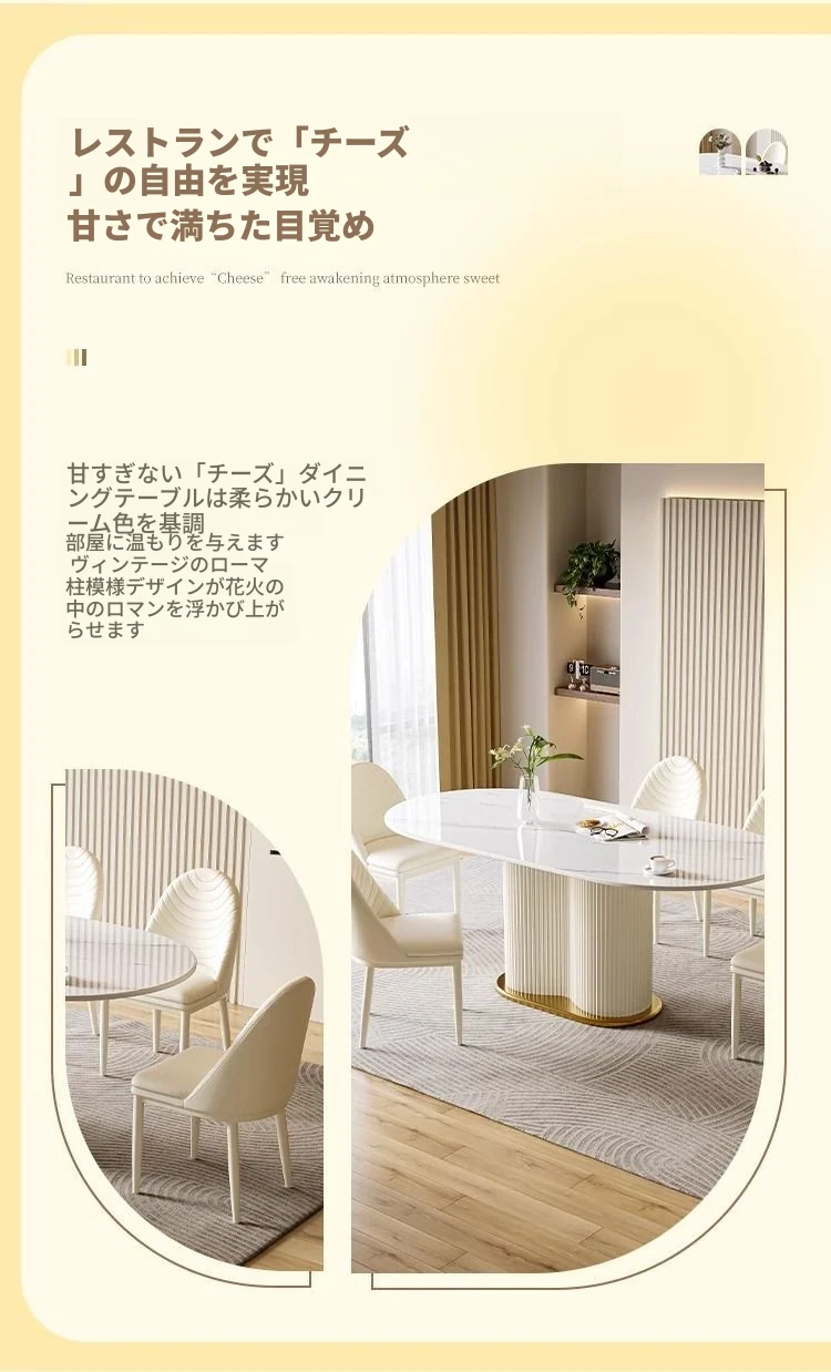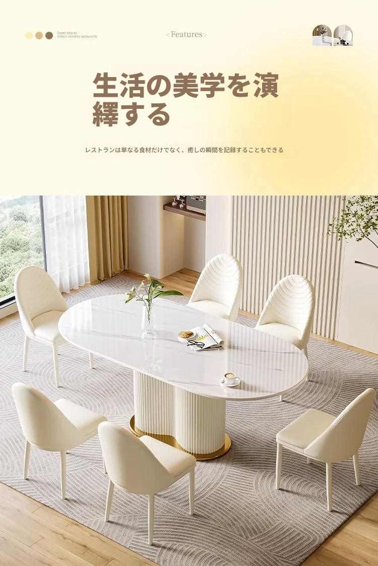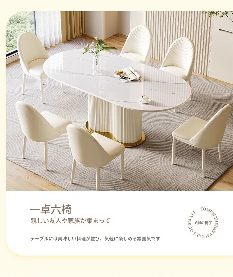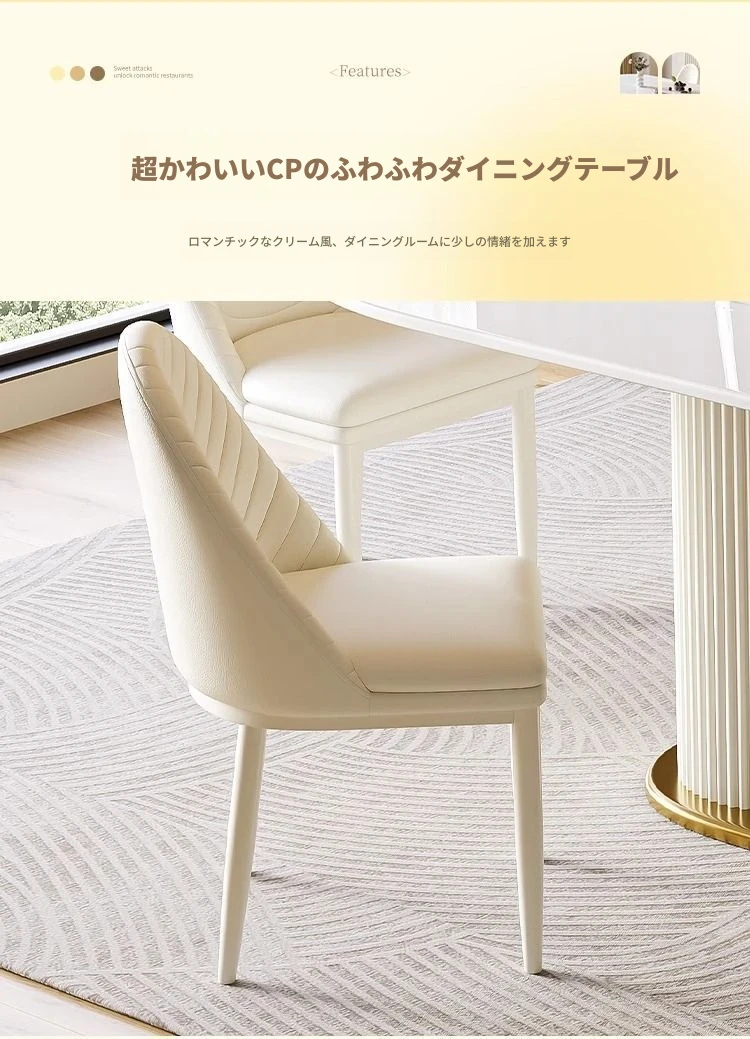 軽やかなラグジュアリー感のクリーム風岩板ダイニングテーブル&チェアセット|小さな家にも最適なホワイトモダンデザインの西洋風テーブル|美しい食卓を演出するシンプルで洗練されたスタイル!