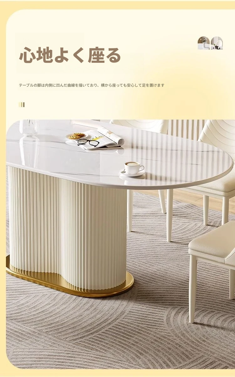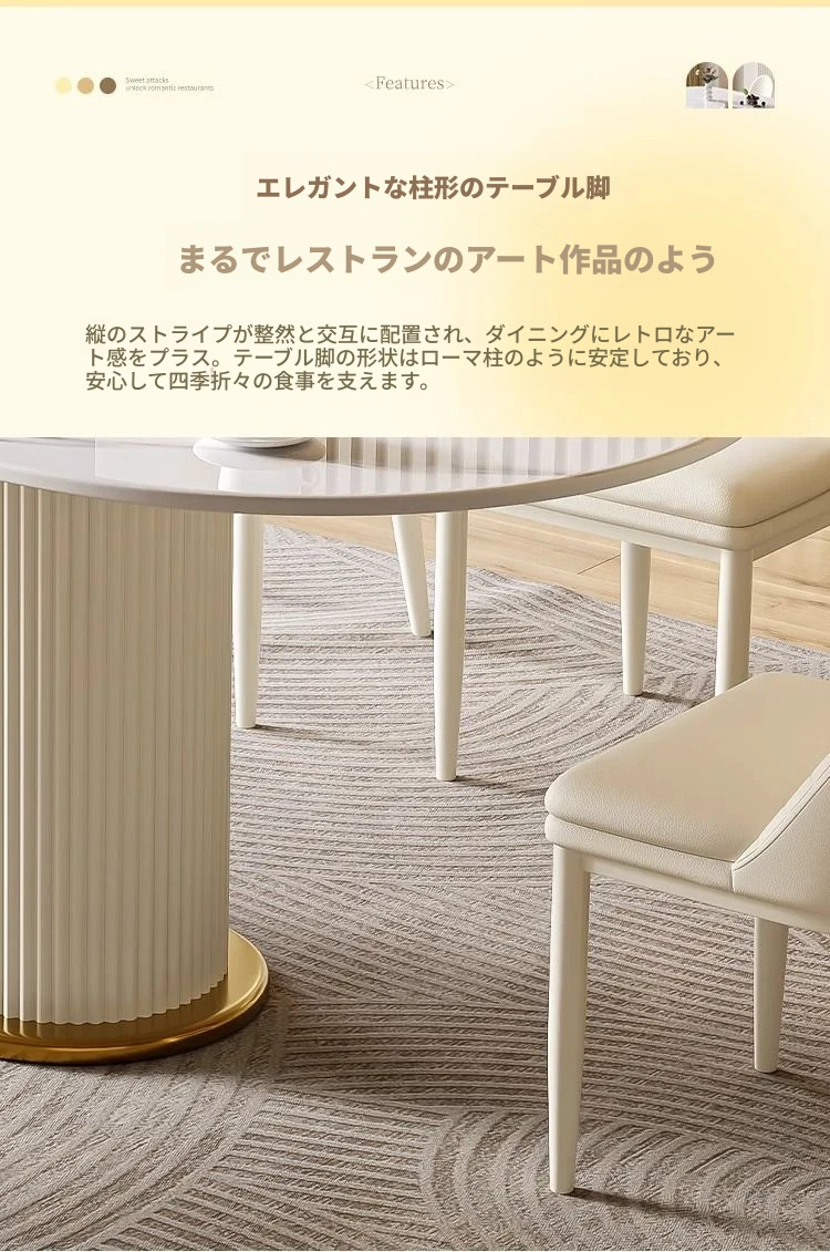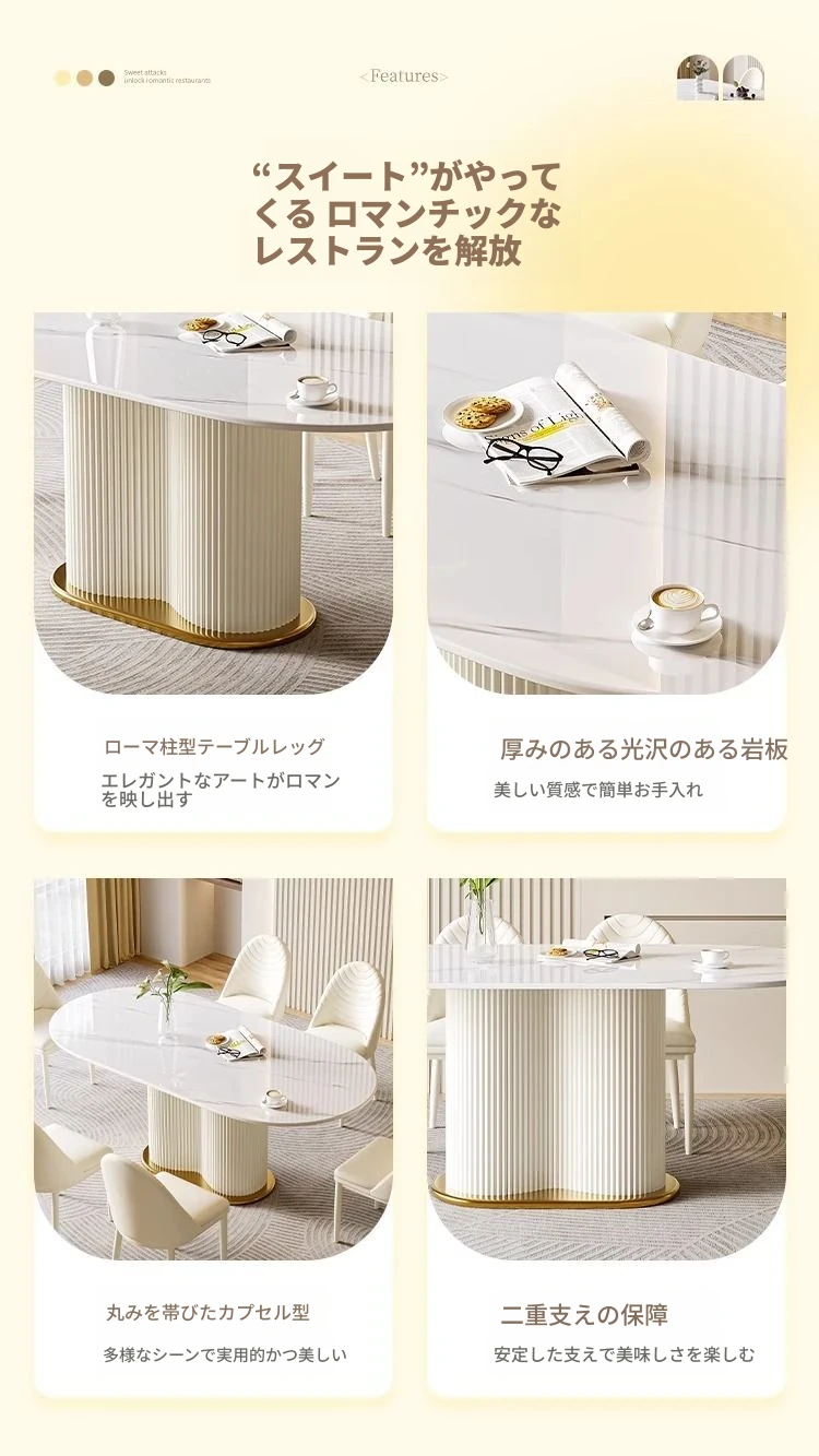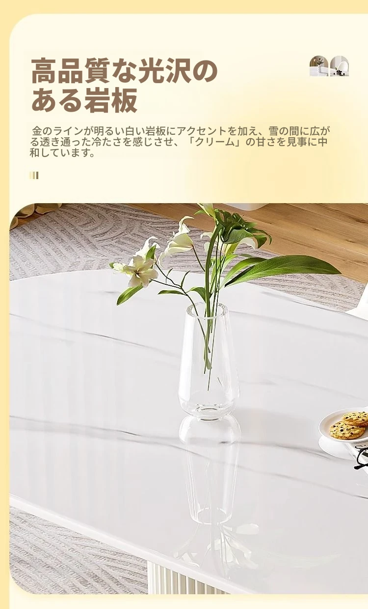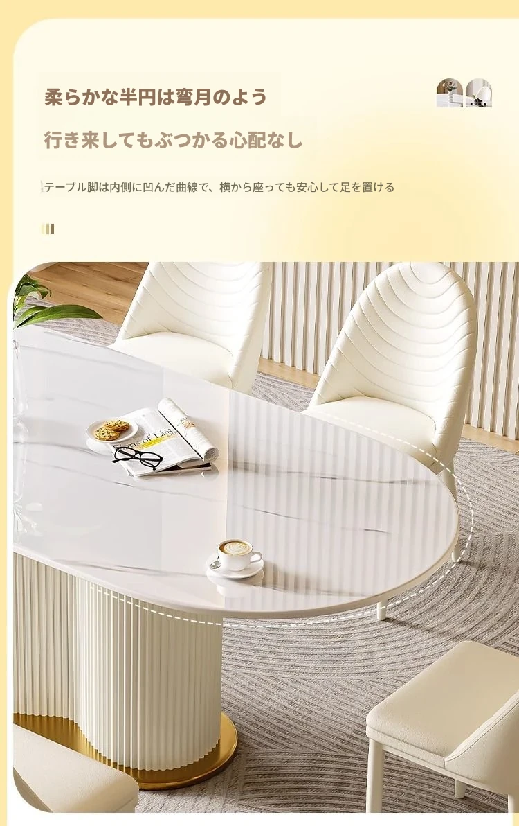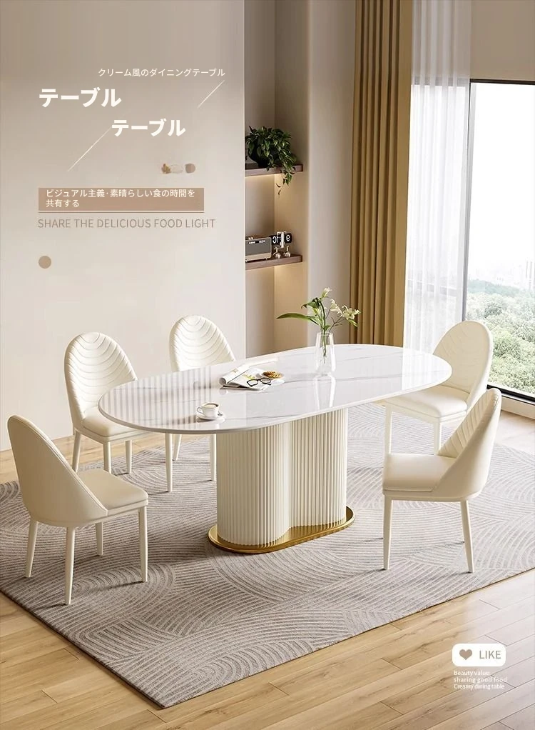 軽やかなラグジュアリー感のクリーム風岩板ダイニングテーブル&チェアセット|小さな家にも最適なホワイトモダンデザインの西洋風テーブル|美しい食卓を演出するシンプルで洗練されたスタイル!