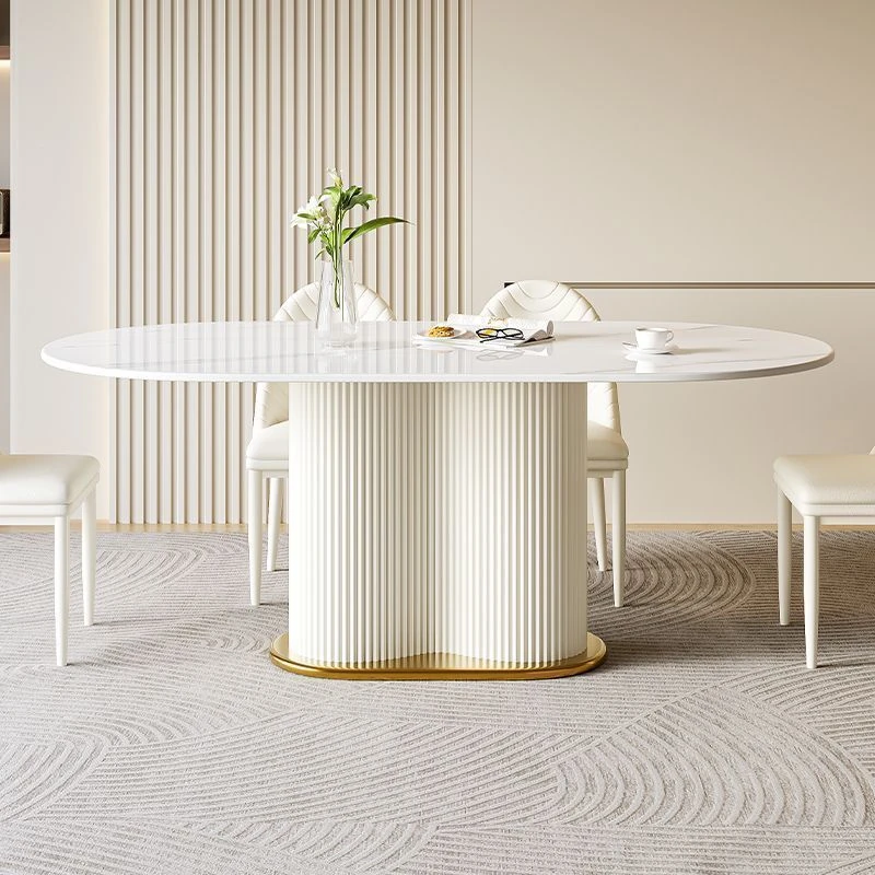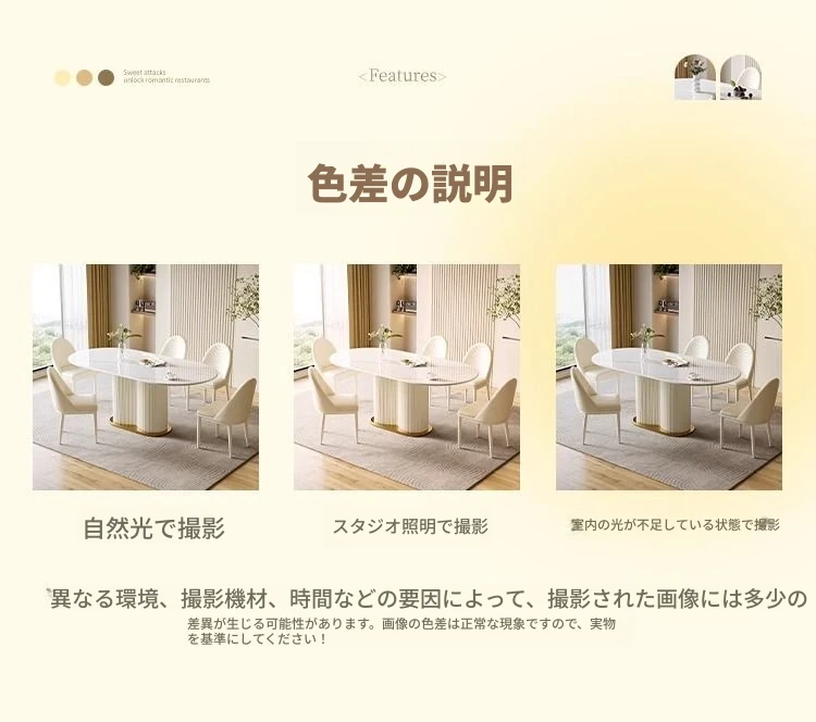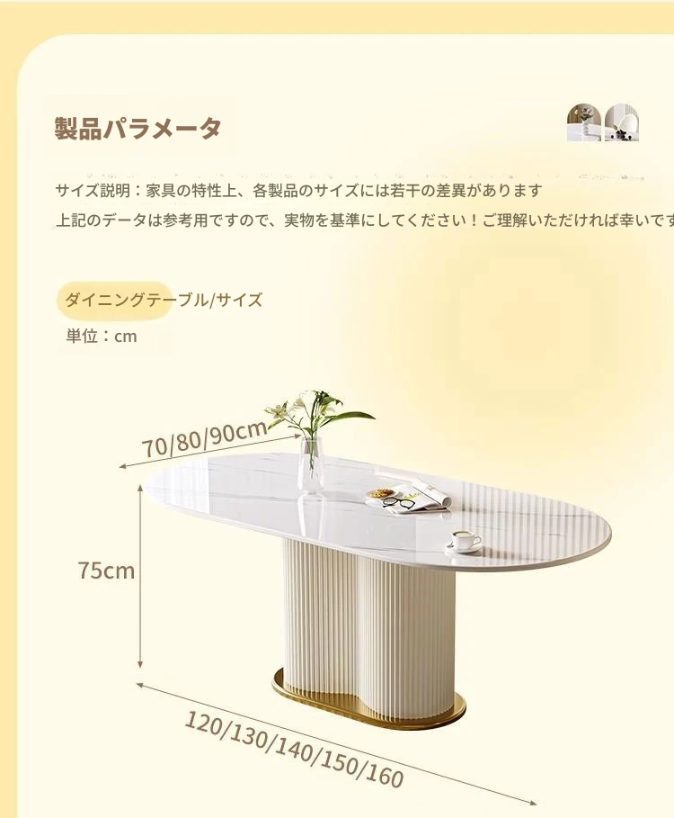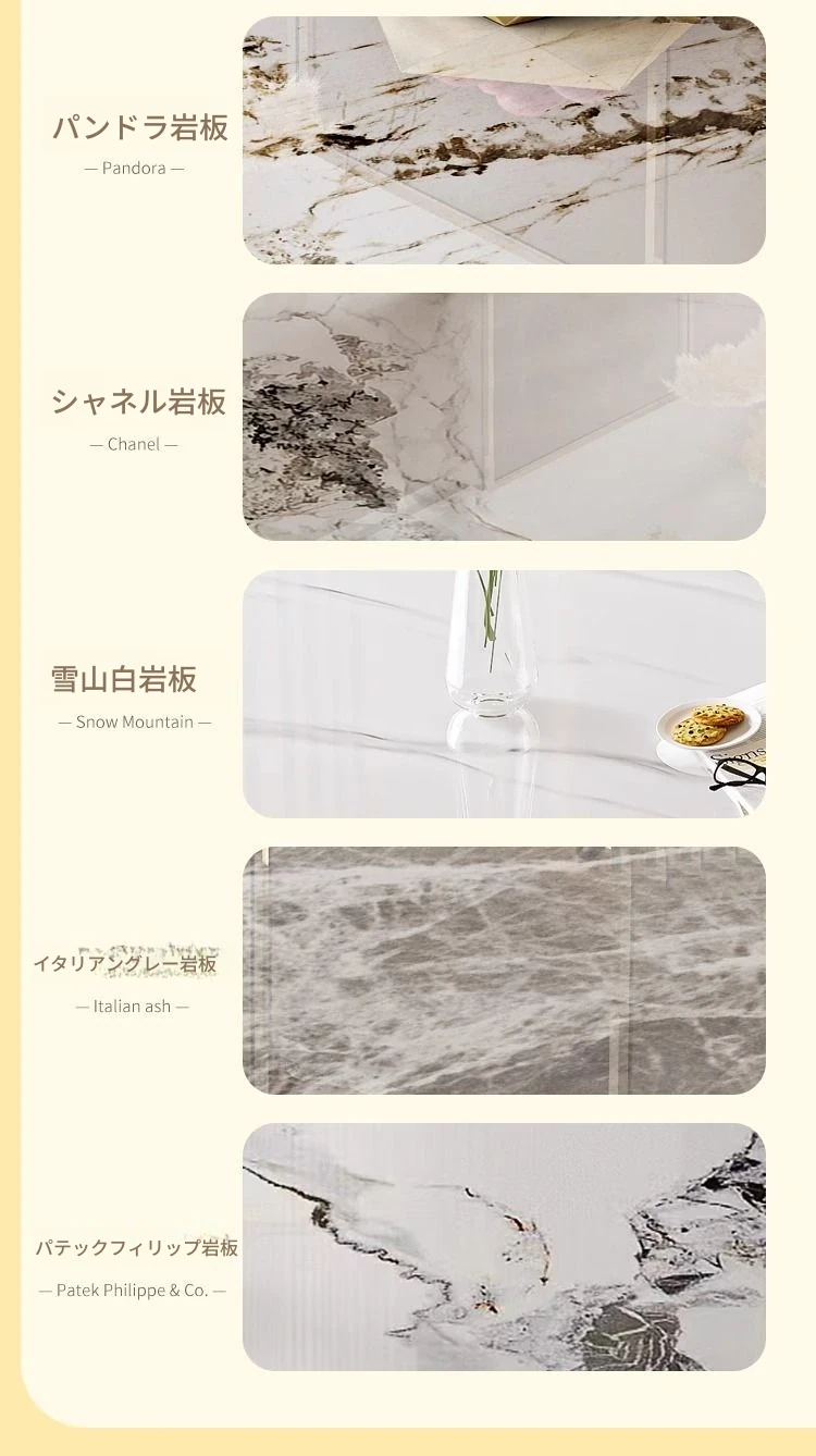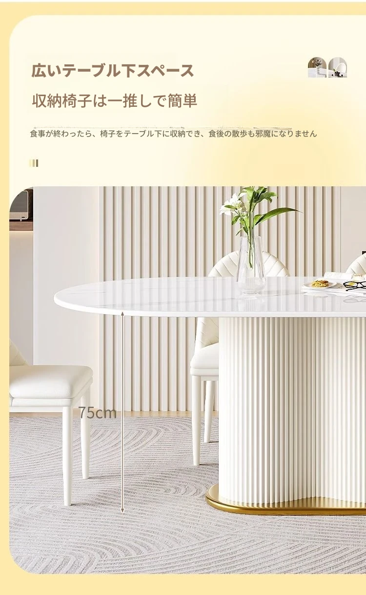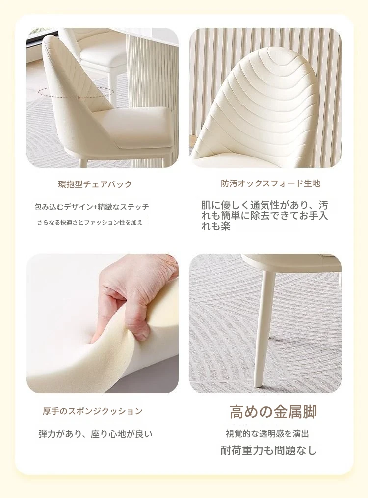 軽やかなラグジュアリー感のクリーム風岩板ダイニングテーブル&チェアセット|小さな家にも最適なホワイトモダンデザインの西洋風テーブル|美しい食卓を演出するシンプルで洗練されたスタイル!