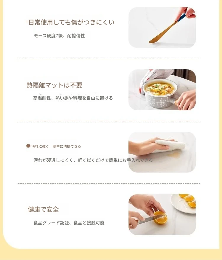 クリーム風岩板ダイニングテーブル【12mm岩板】