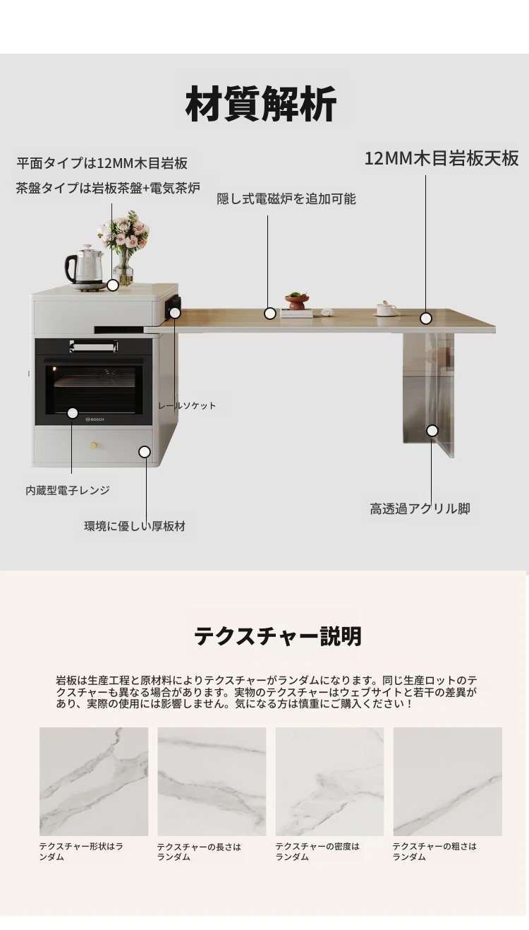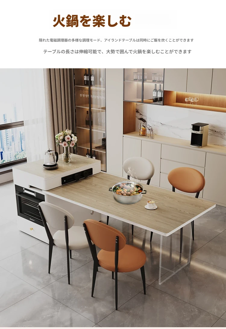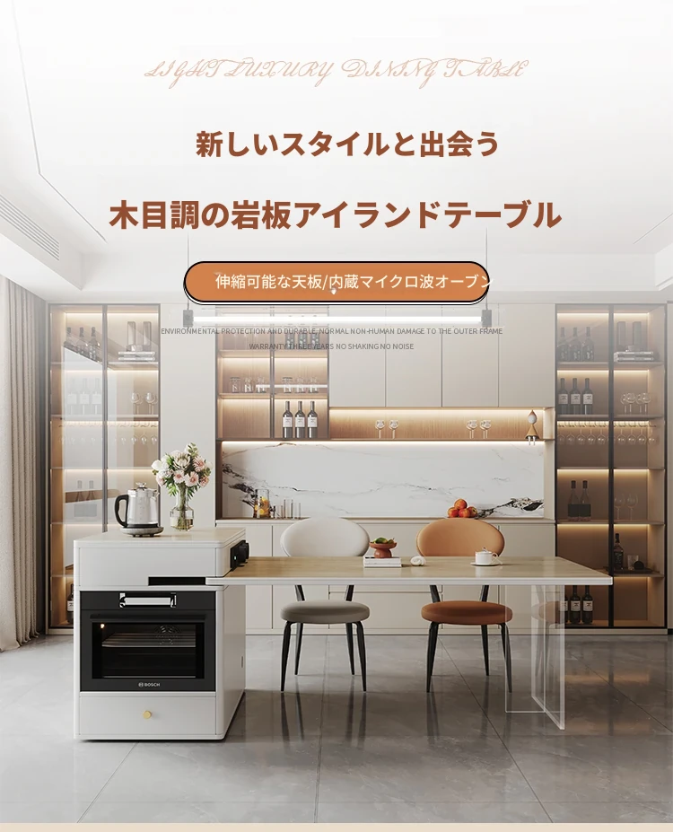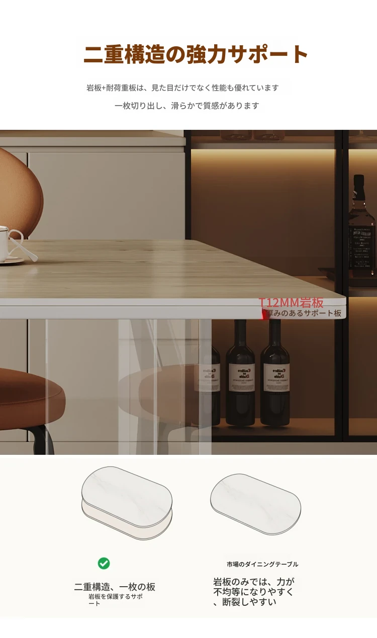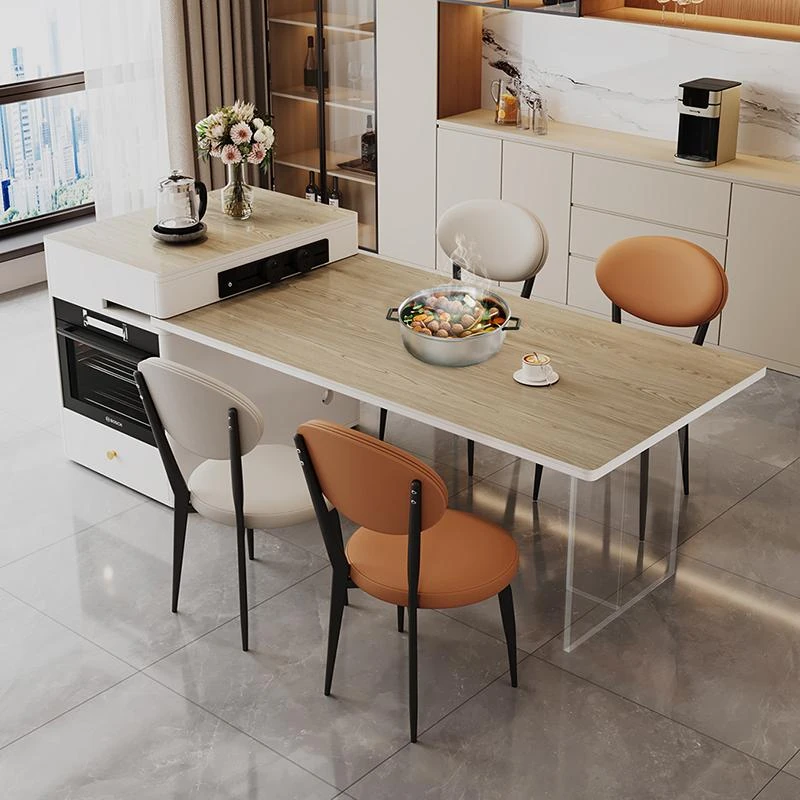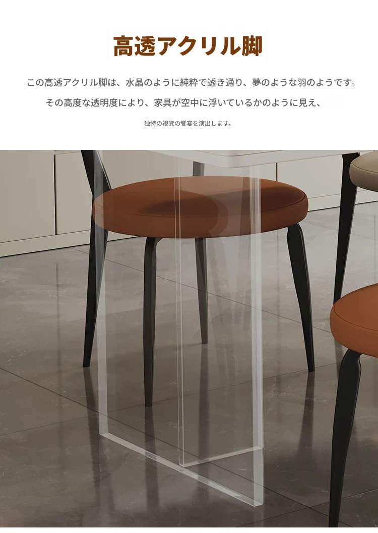 浮遊デザインの岩板ダイニングテーブル - スマートに伸縮可能、家庭やオフィスに最適!小型スペースにもぴったりな高級感あふれる天然木とアクリルの一体型。エレガントな食事空間を演出します!