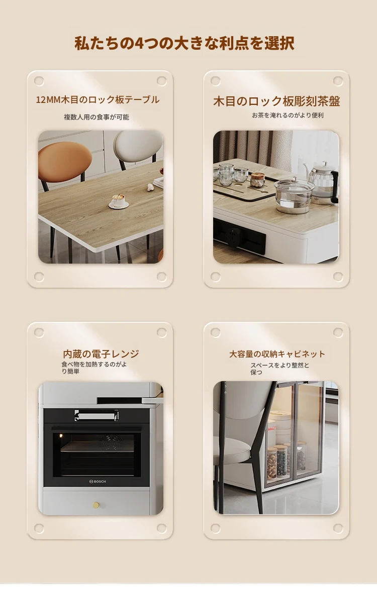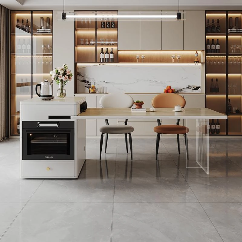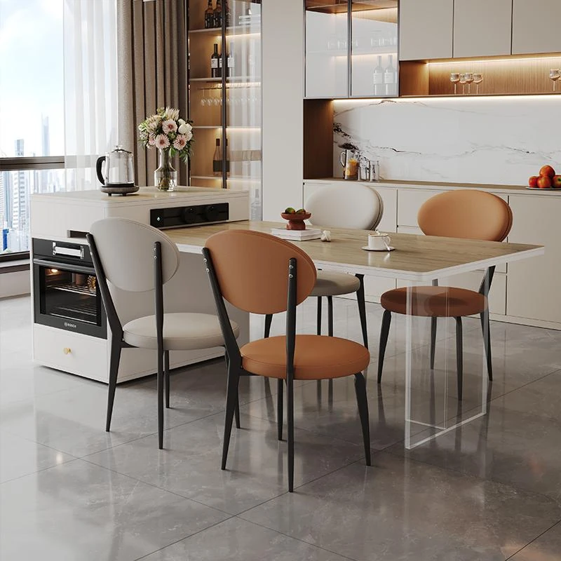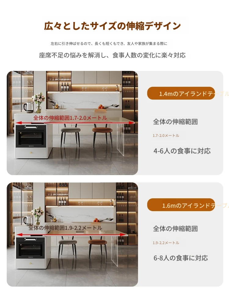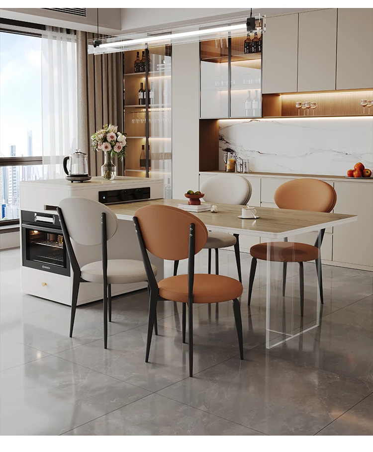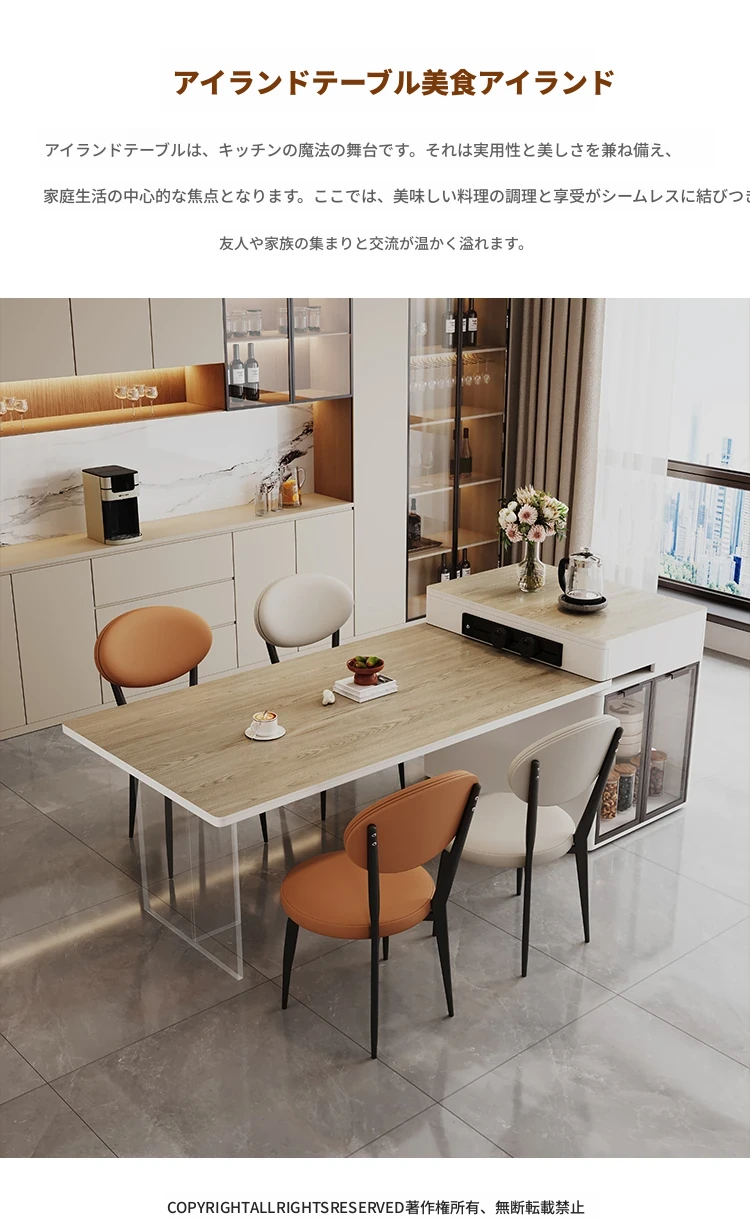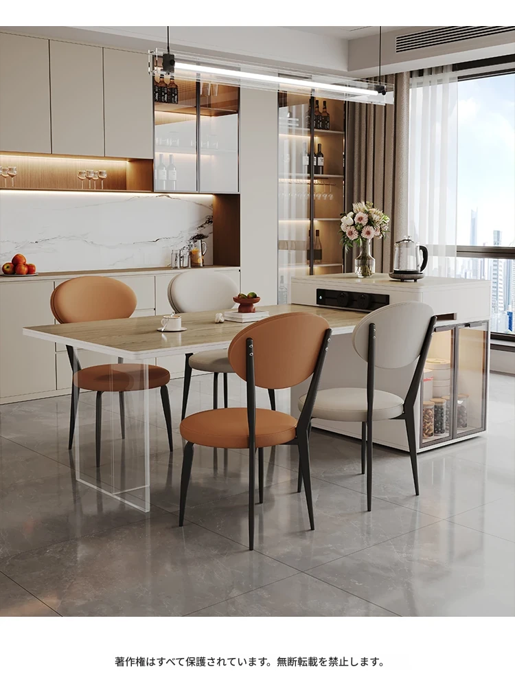 浮遊デザインの岩板ダイニングテーブル - スマートに伸縮可能、家庭やオフィスに最適!小型スペースにもぴったりな高級感あふれる天然木とアクリルの一体型。エレガントな食事空間を演出します!
