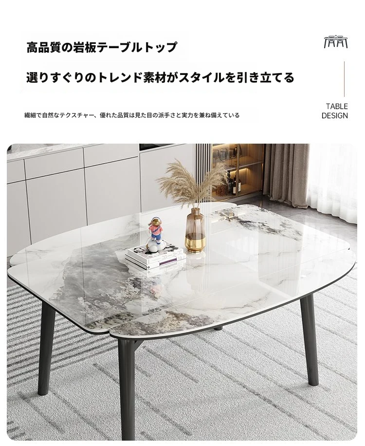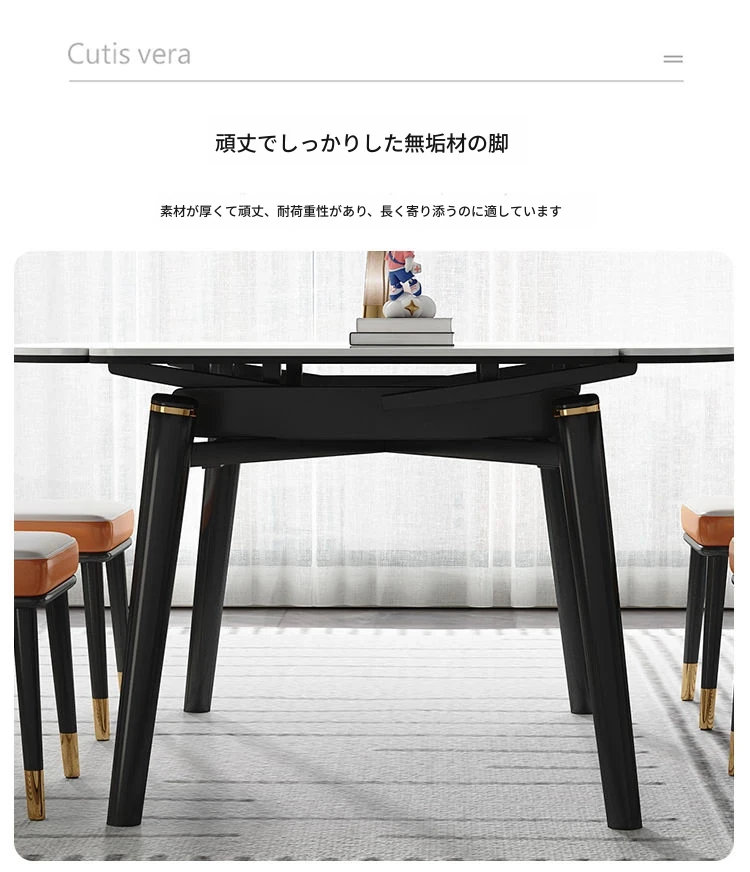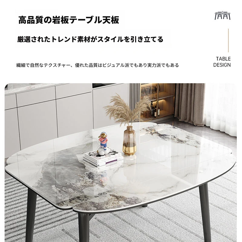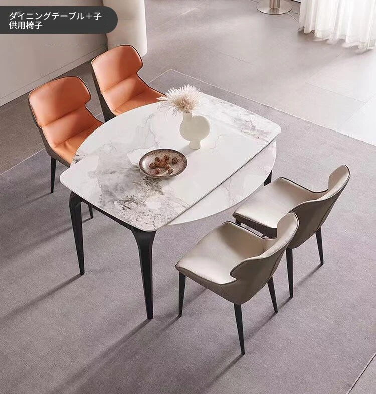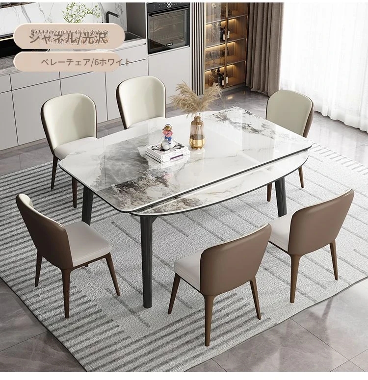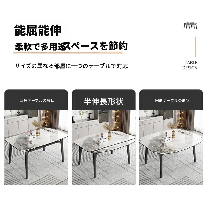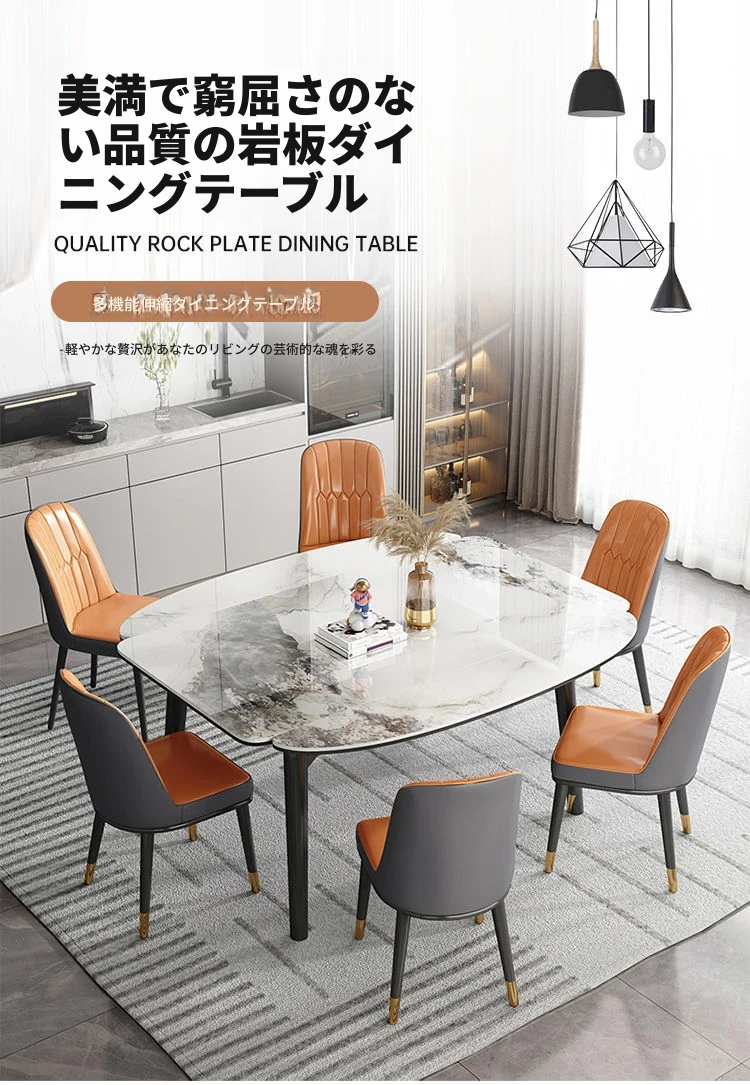 軽奢スタイルの折りたたみ式伸縮岩板ダイニングテーブル&チェアセット - 小型住宅に最適な丸型・角型両用デザイン、電磁調理器付きで便利!