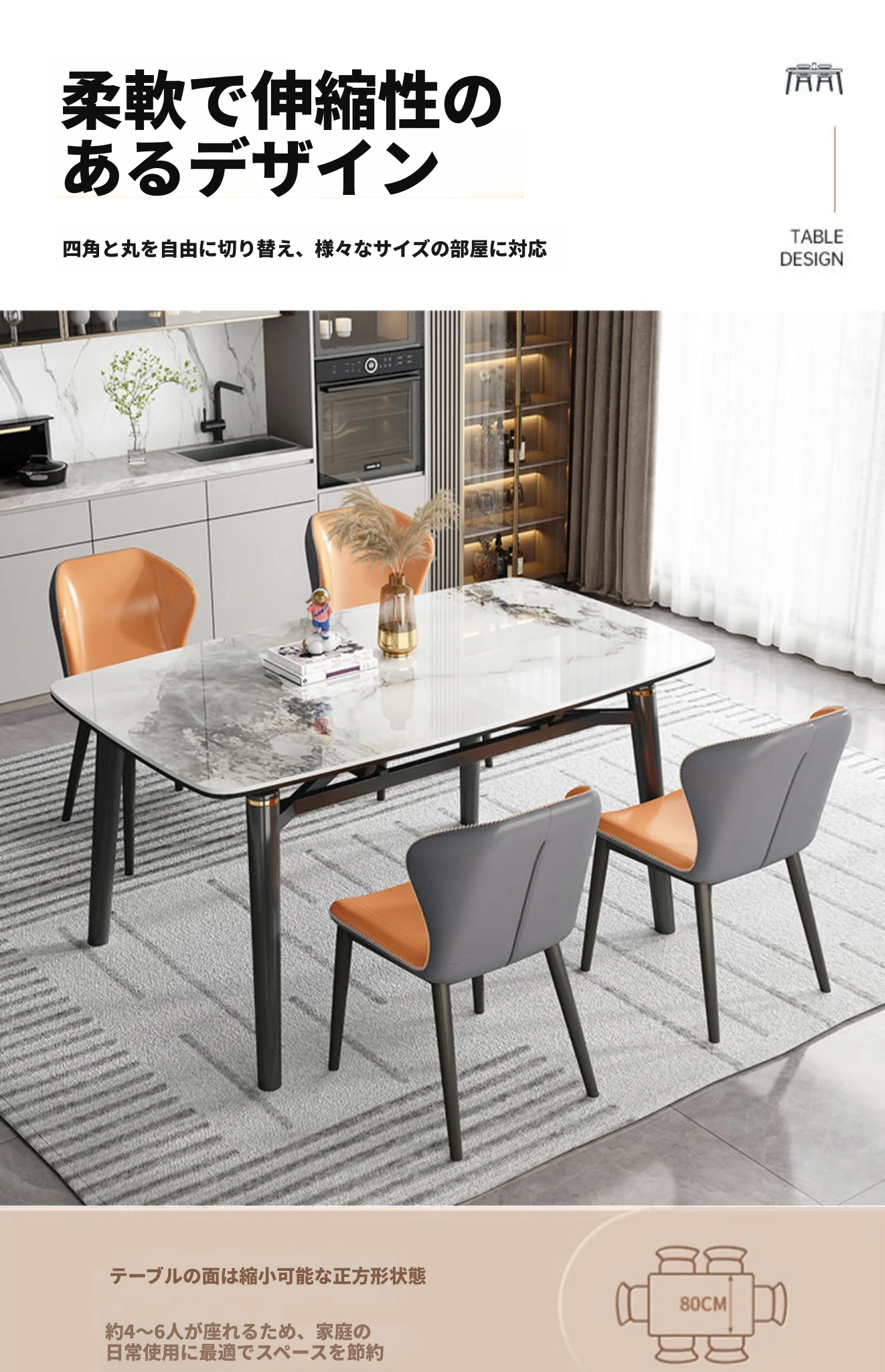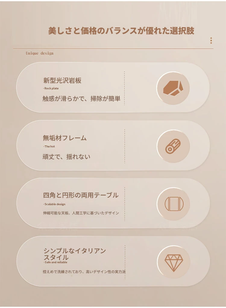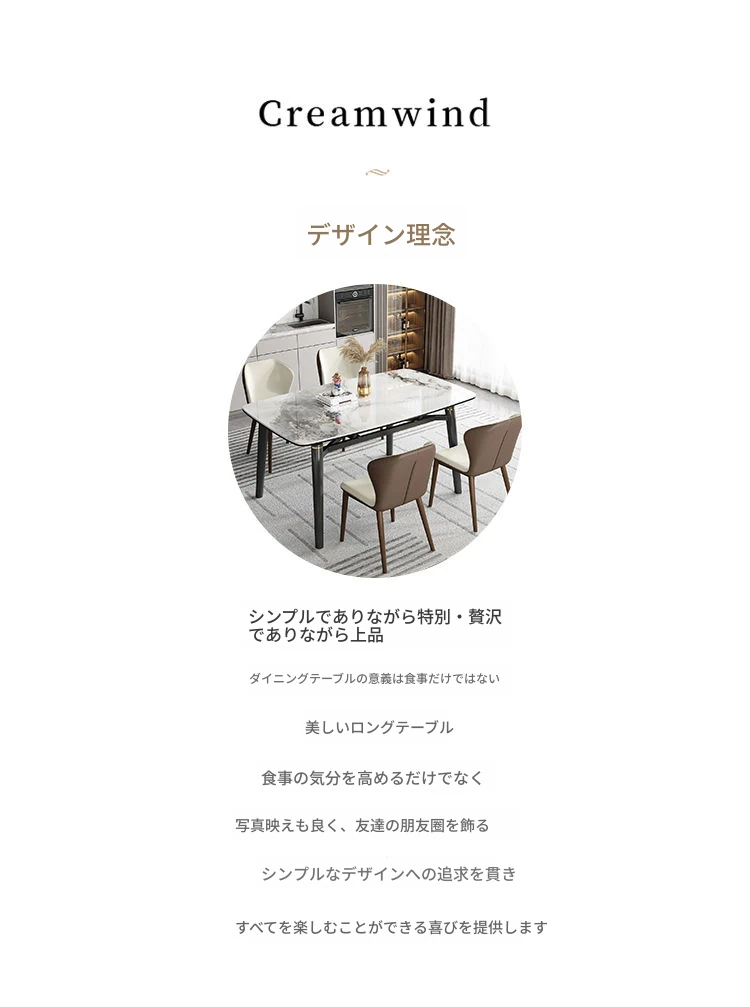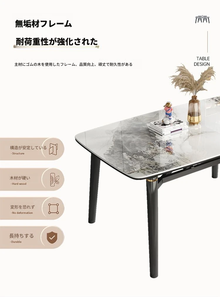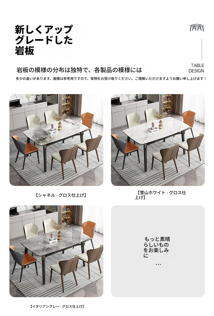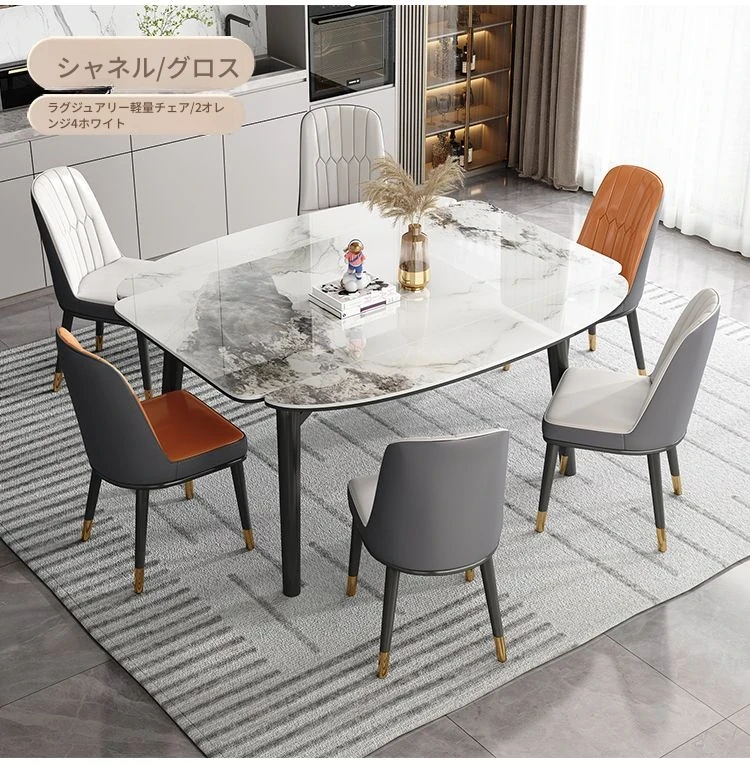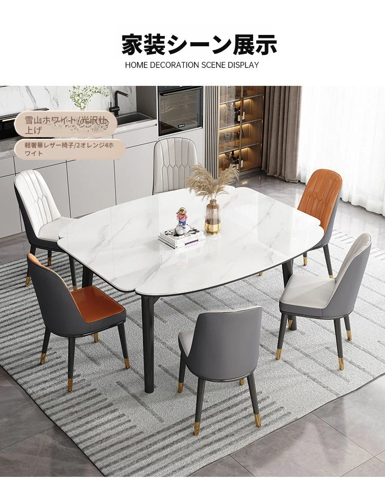 軽奢スタイルの折りたたみ式伸縮岩板ダイニングテーブル&チェアセット - 小型住宅に最適な丸型・角型両用デザイン、電磁調理器付きで便利!