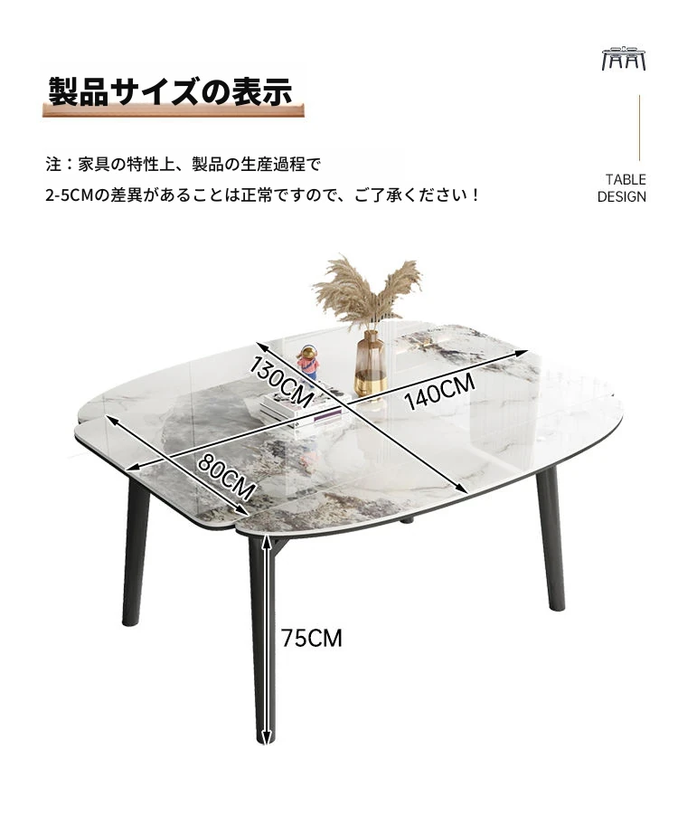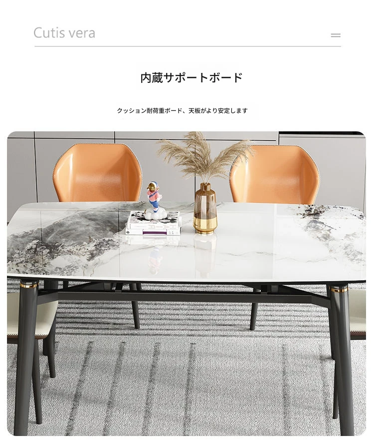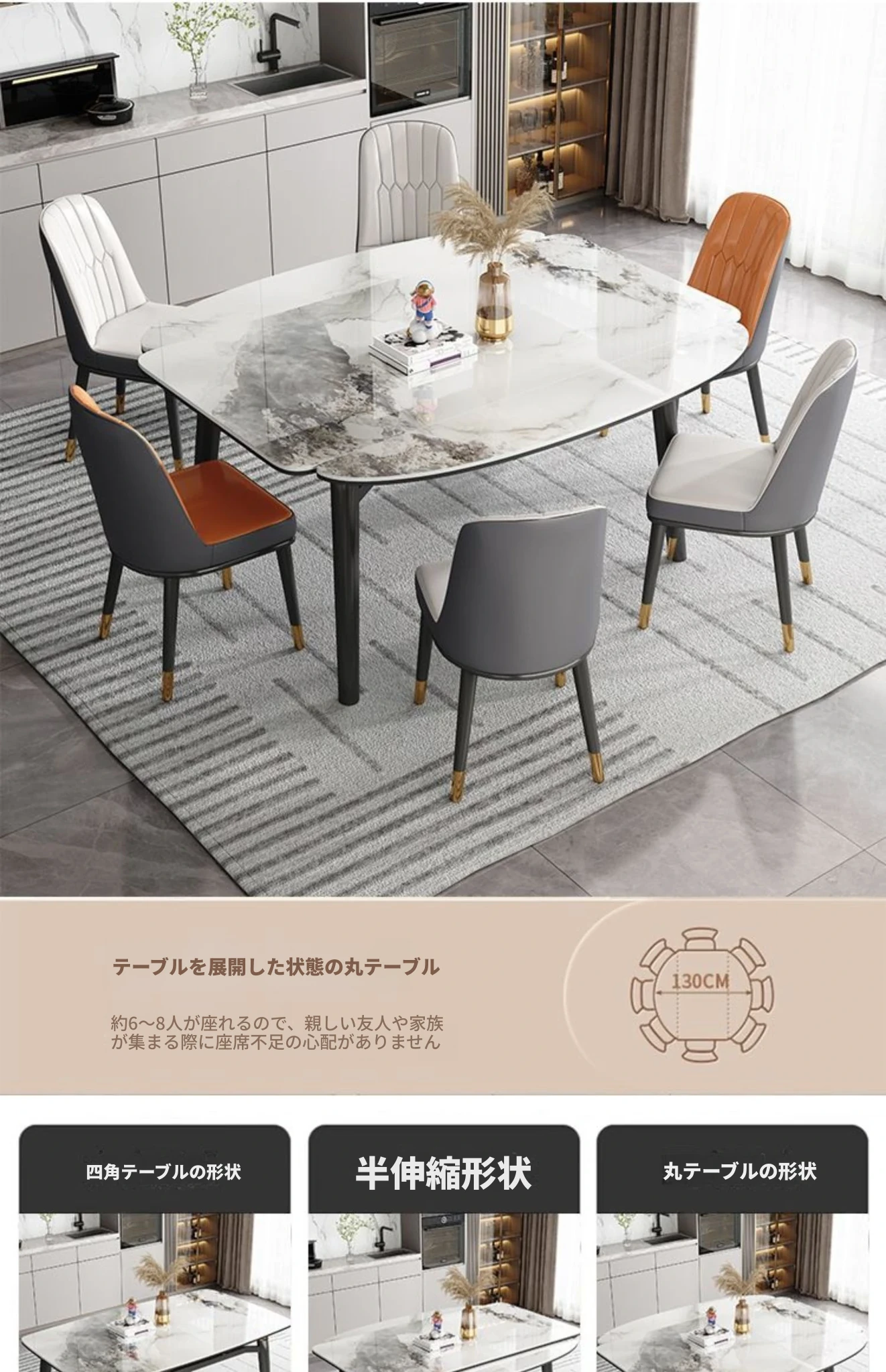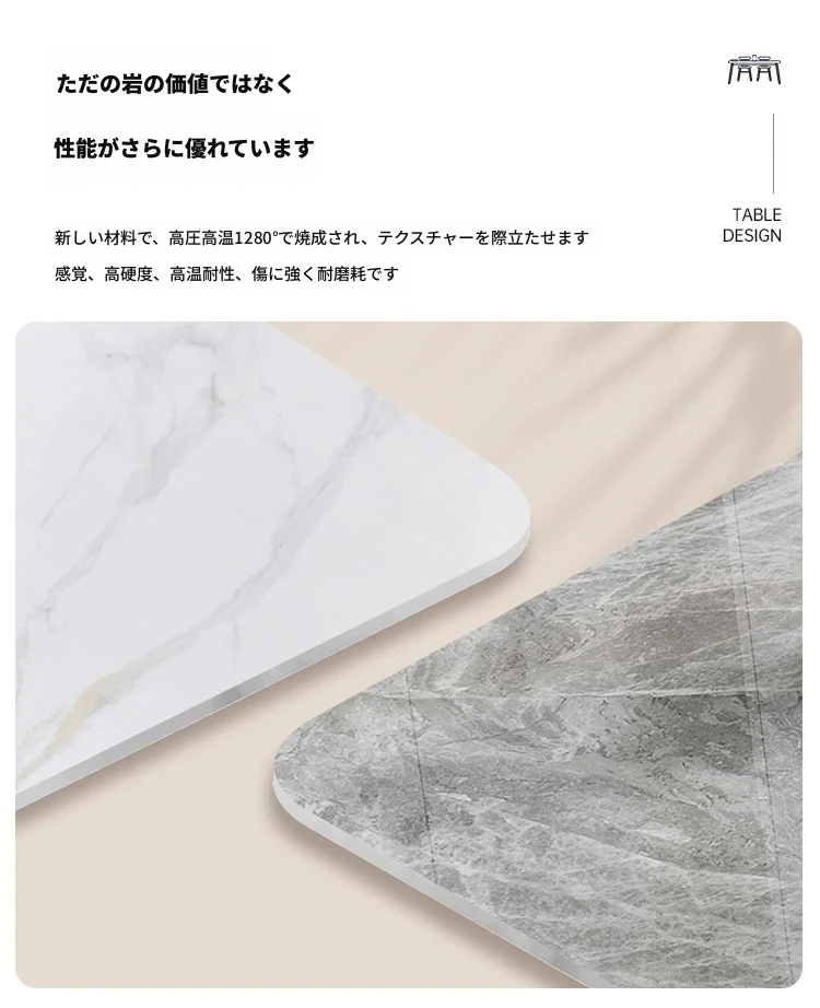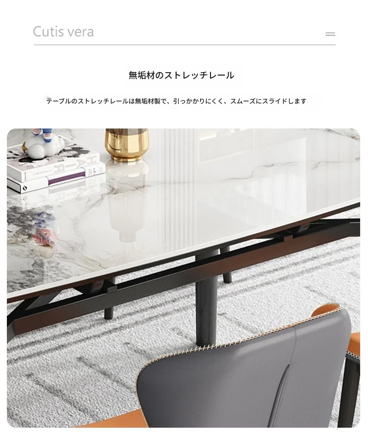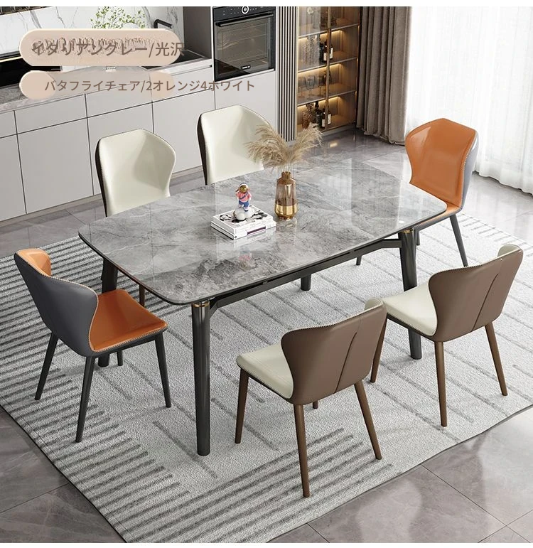 軽奢スタイルの折りたたみ式伸縮岩板ダイニングテーブル&チェアセット - 小型住宅に最適な丸型・角型両用デザイン、電磁調理器付きで便利!