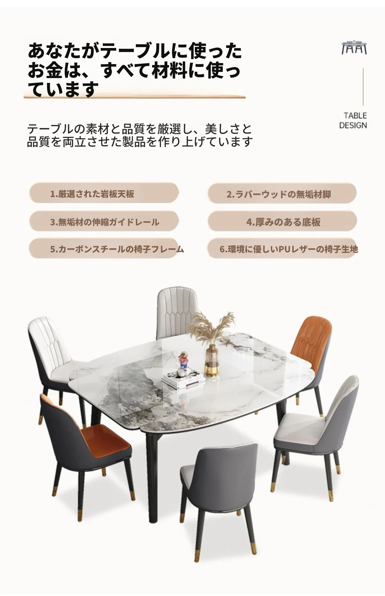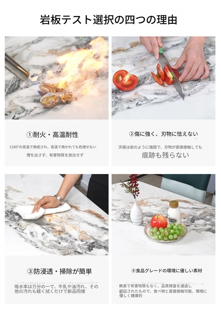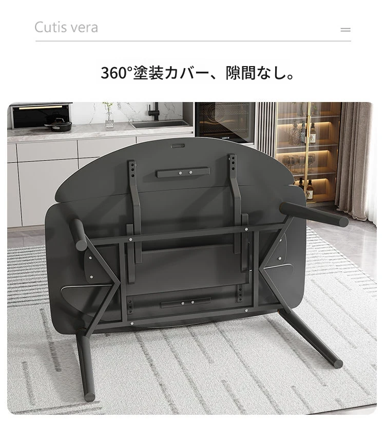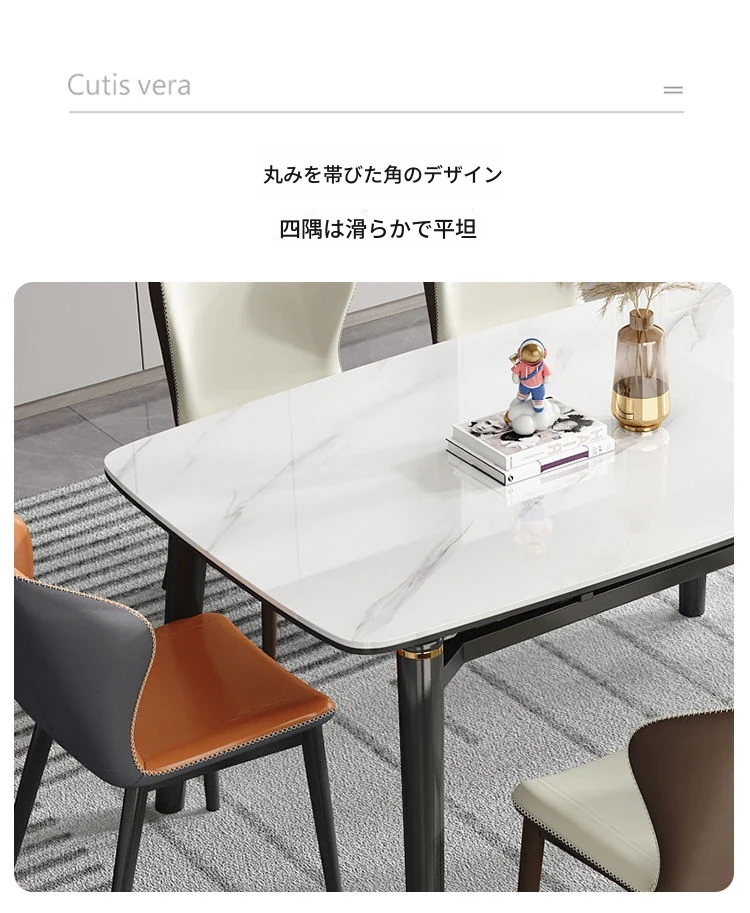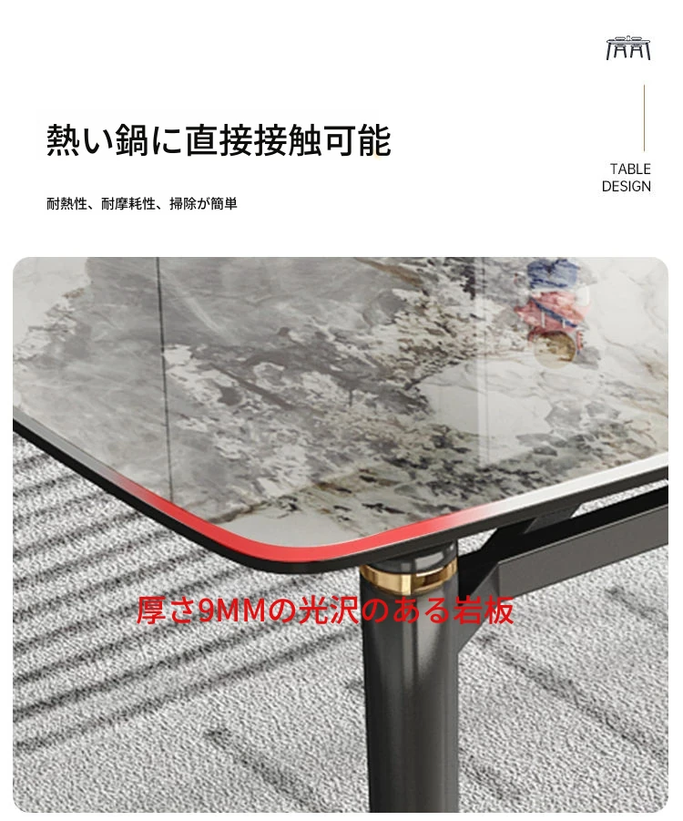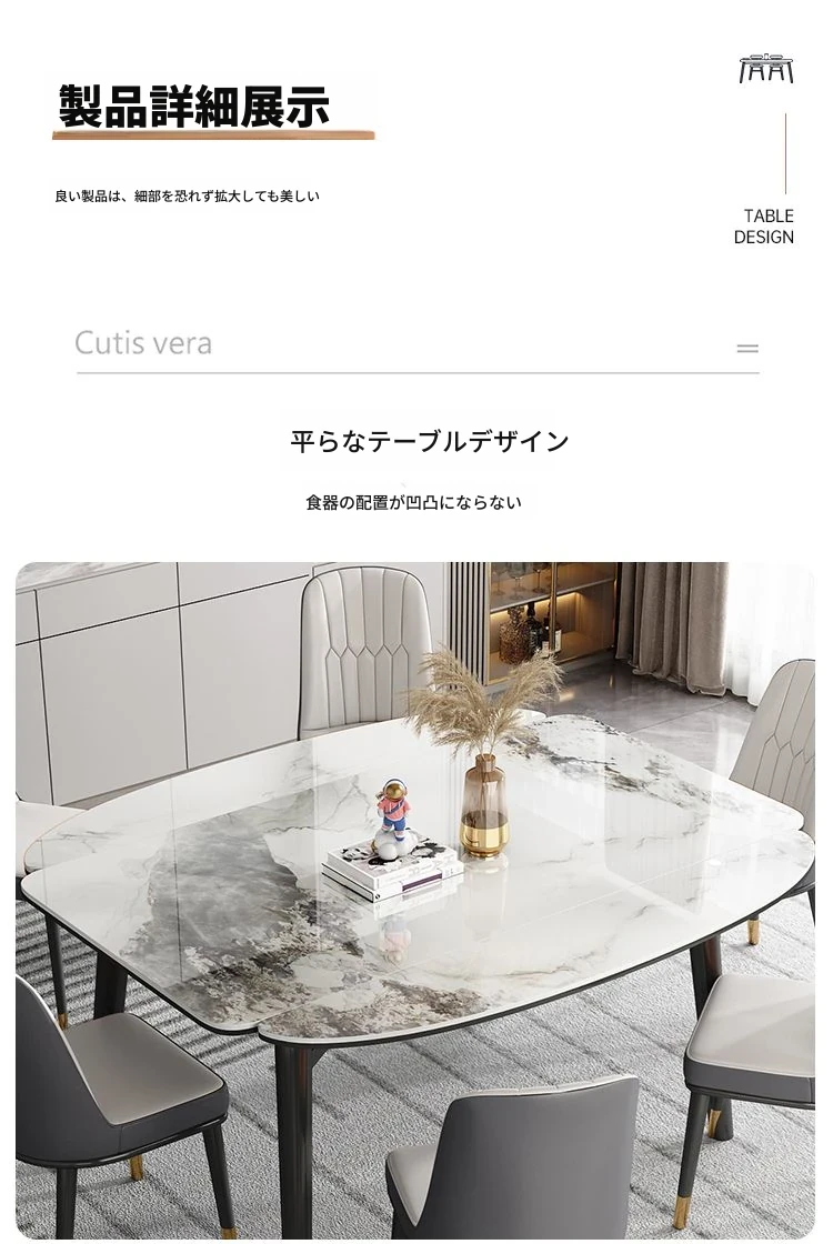 軽奢スタイルの折りたたみ式伸縮岩板ダイニングテーブル&チェアセット - 小型住宅に最適な丸型・角型両用デザイン、電磁調理器付きで便利!