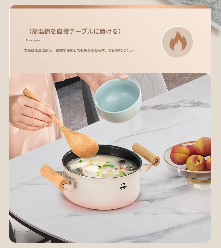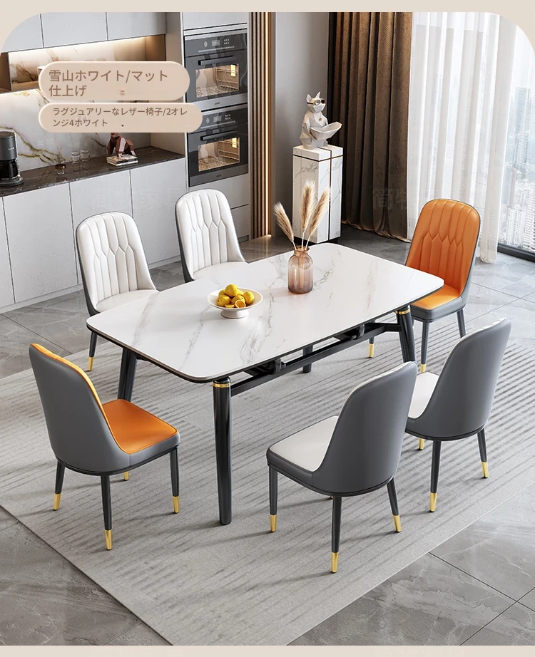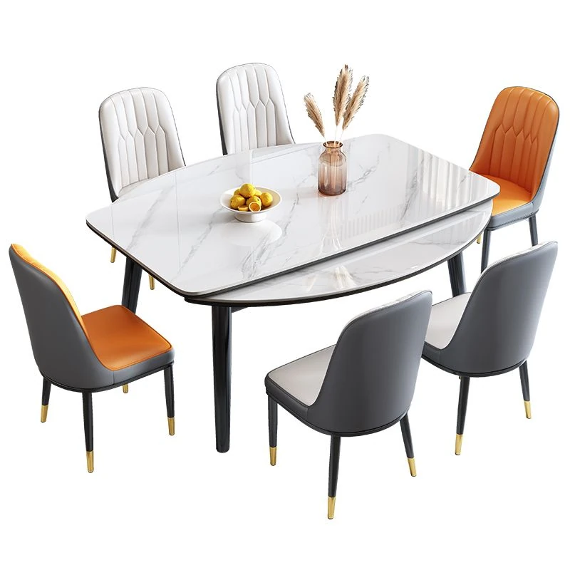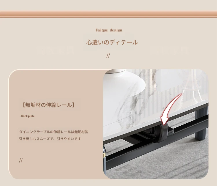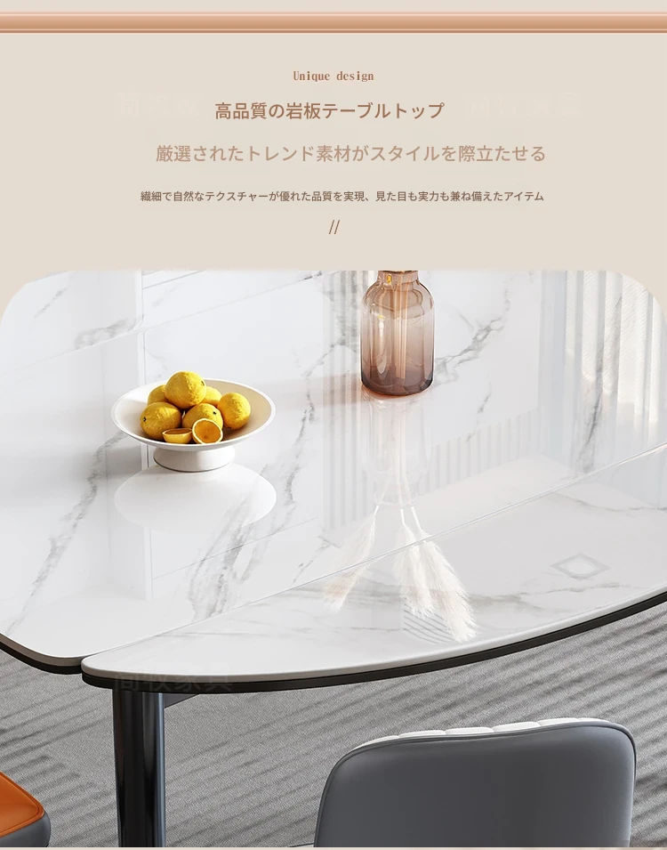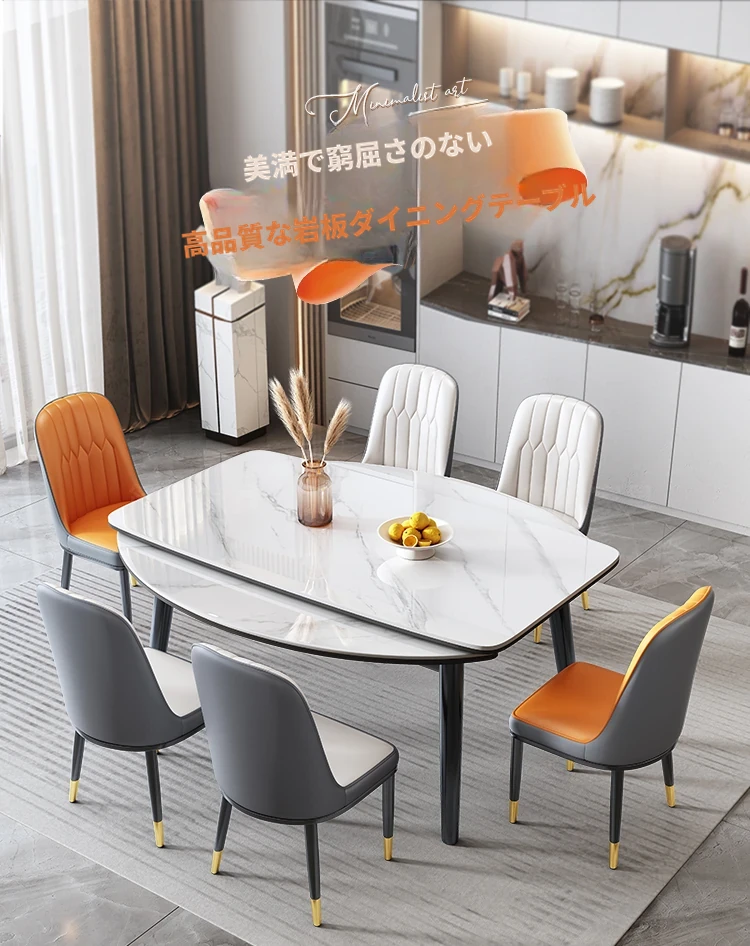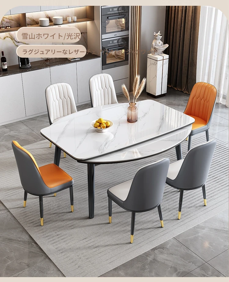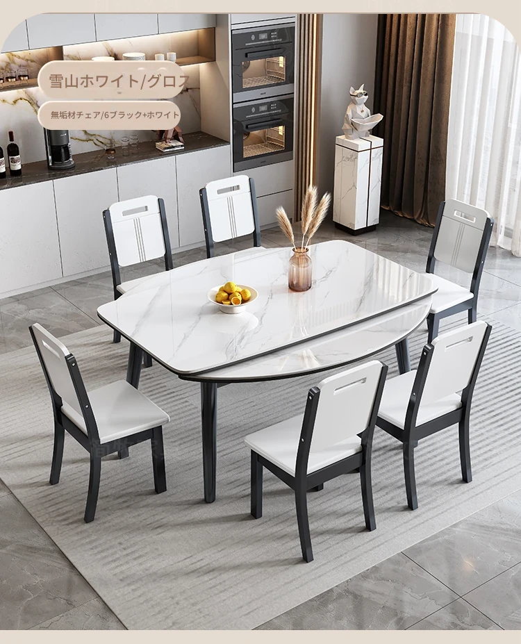光沢のある天然石製ダイニングテーブル - イタリアンスタイルのラグジュアリー、折りたたみ&伸縮可能なデザイン。小さなスペースにも最適で、IHクッキングヒーター付きの丸型テーブル。家族や友人との楽しい食事を演出します!