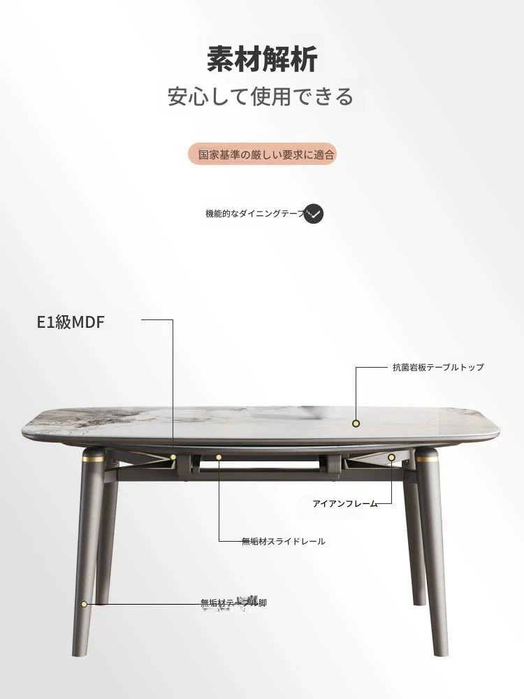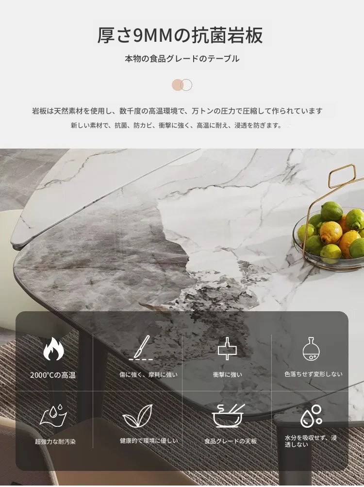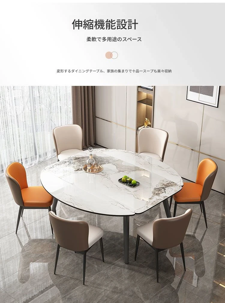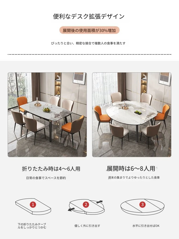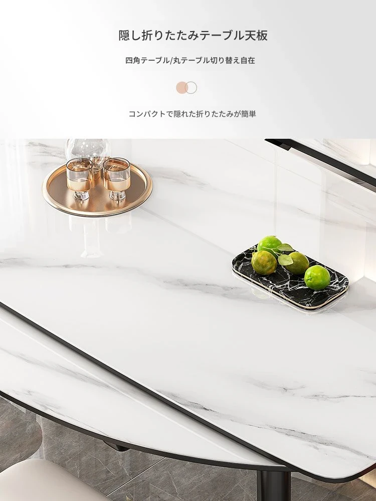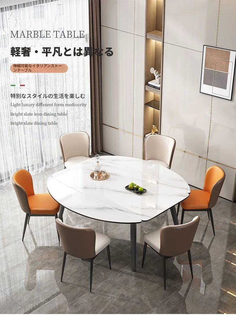 贅沢なイタリアンスタイルの天然木製ロックボードダイニングテーブルセット - 小スペースに最適!折りたたみ式で使い勝手抜群、円形と四角形の2WAYデザイン、電磁調理器にも対応!あなたの食卓をおしゃれに彩ります。