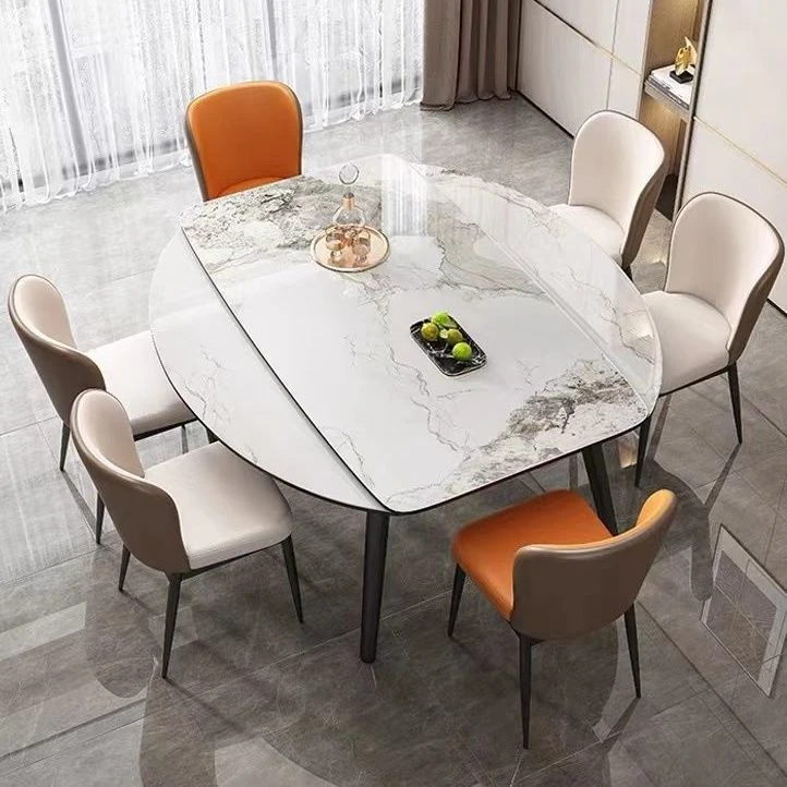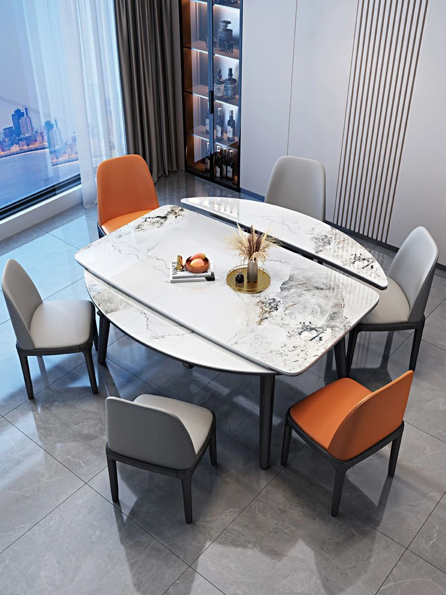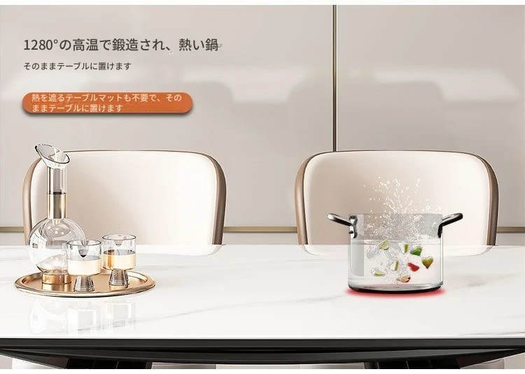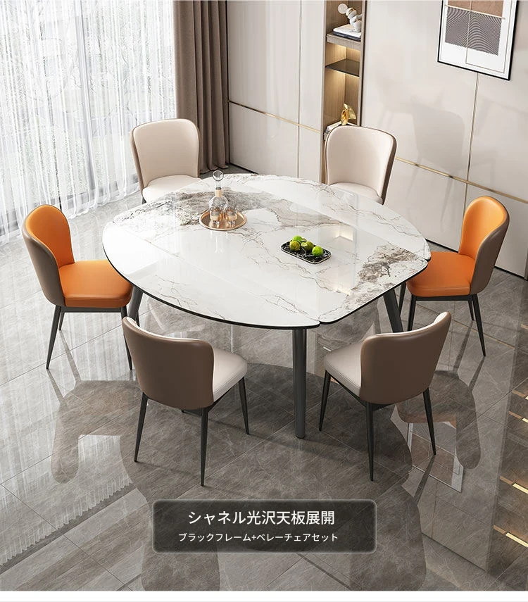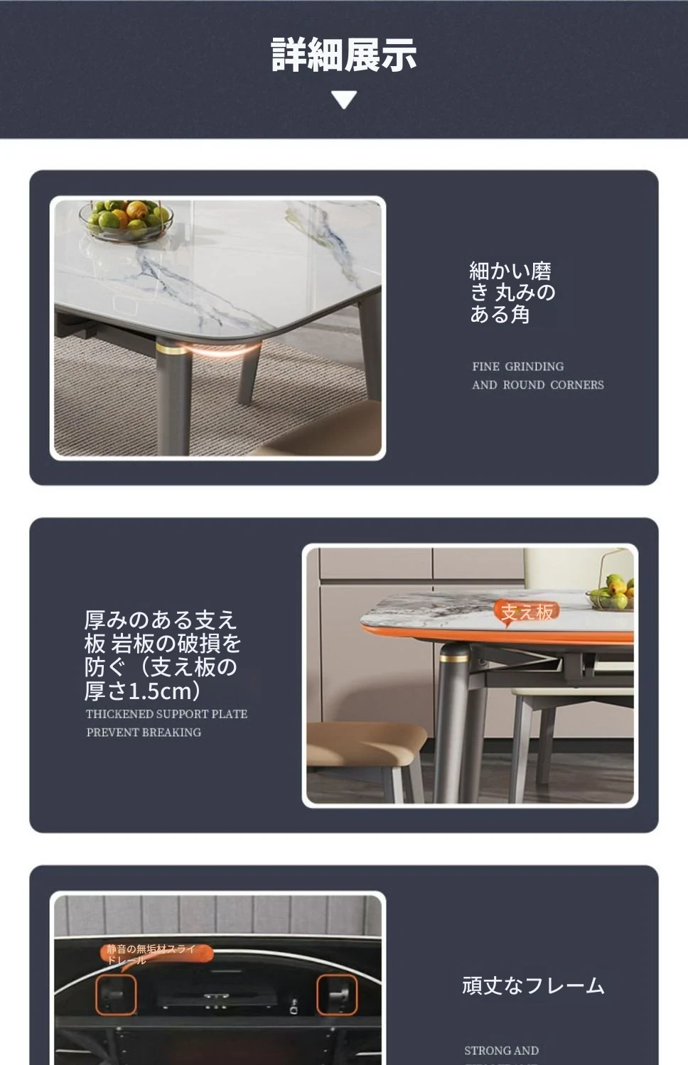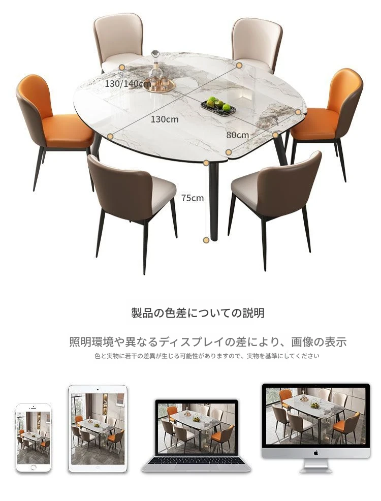 贅沢なイタリアンスタイルの天然木製ロックボードダイニングテーブルセット - 小スペースに最適!折りたたみ式で使い勝手抜群、円形と四角形の2WAYデザイン、電磁調理器にも対応!あなたの食卓をおしゃれに彩ります。