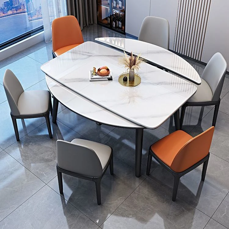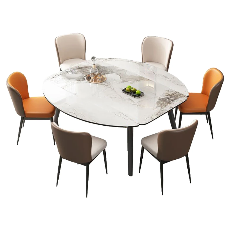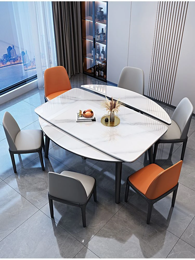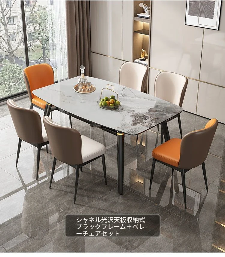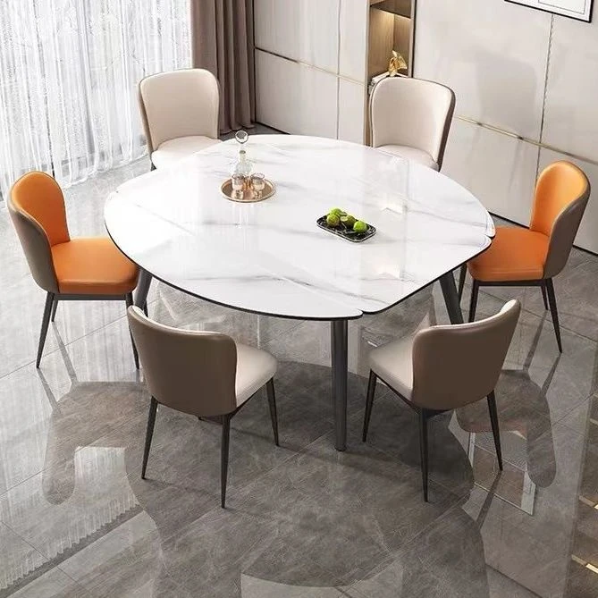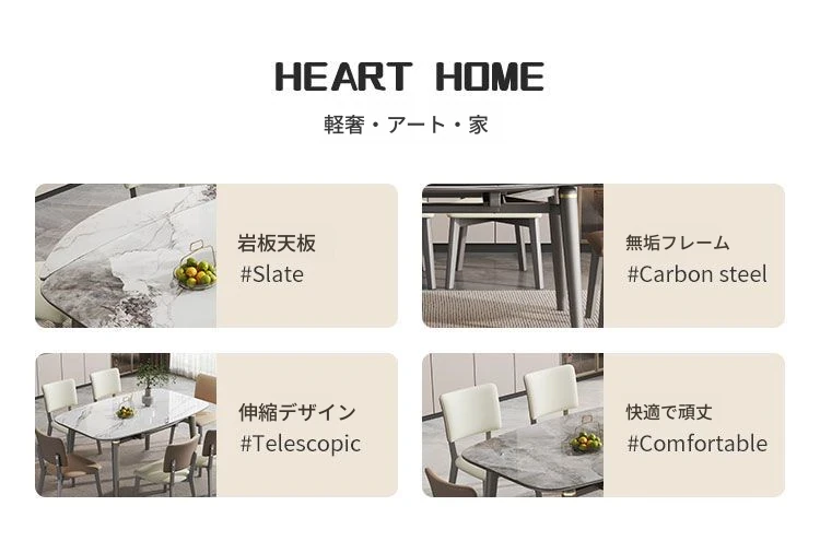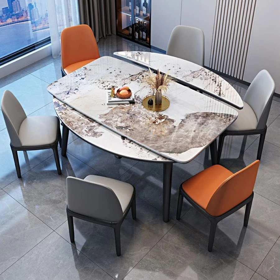 贅沢なイタリアンスタイルの天然木製ロックボードダイニングテーブルセット - 小スペースに最適!折りたたみ式で使い勝手抜群、円形と四角形の2WAYデザイン、電磁調理器にも対応!あなたの食卓をおしゃれに彩ります。