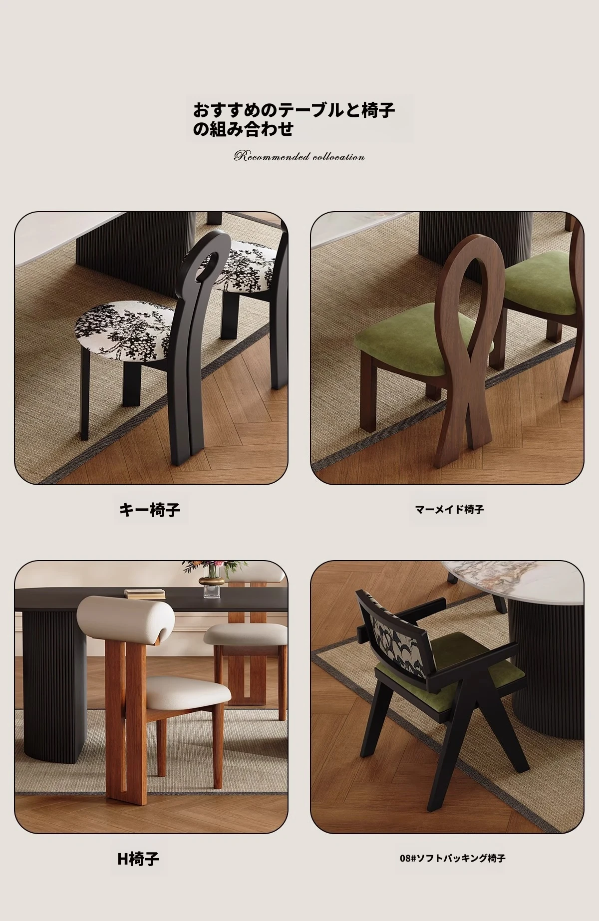 楕円岩板ダイニングテーブル+6ソフトパック【08】椅子