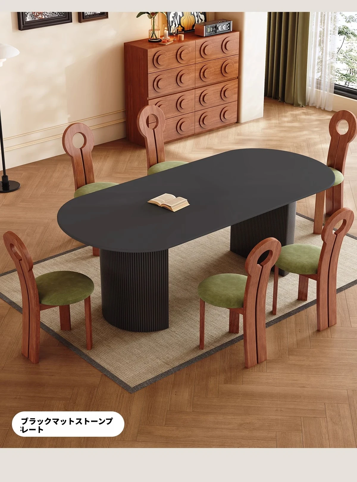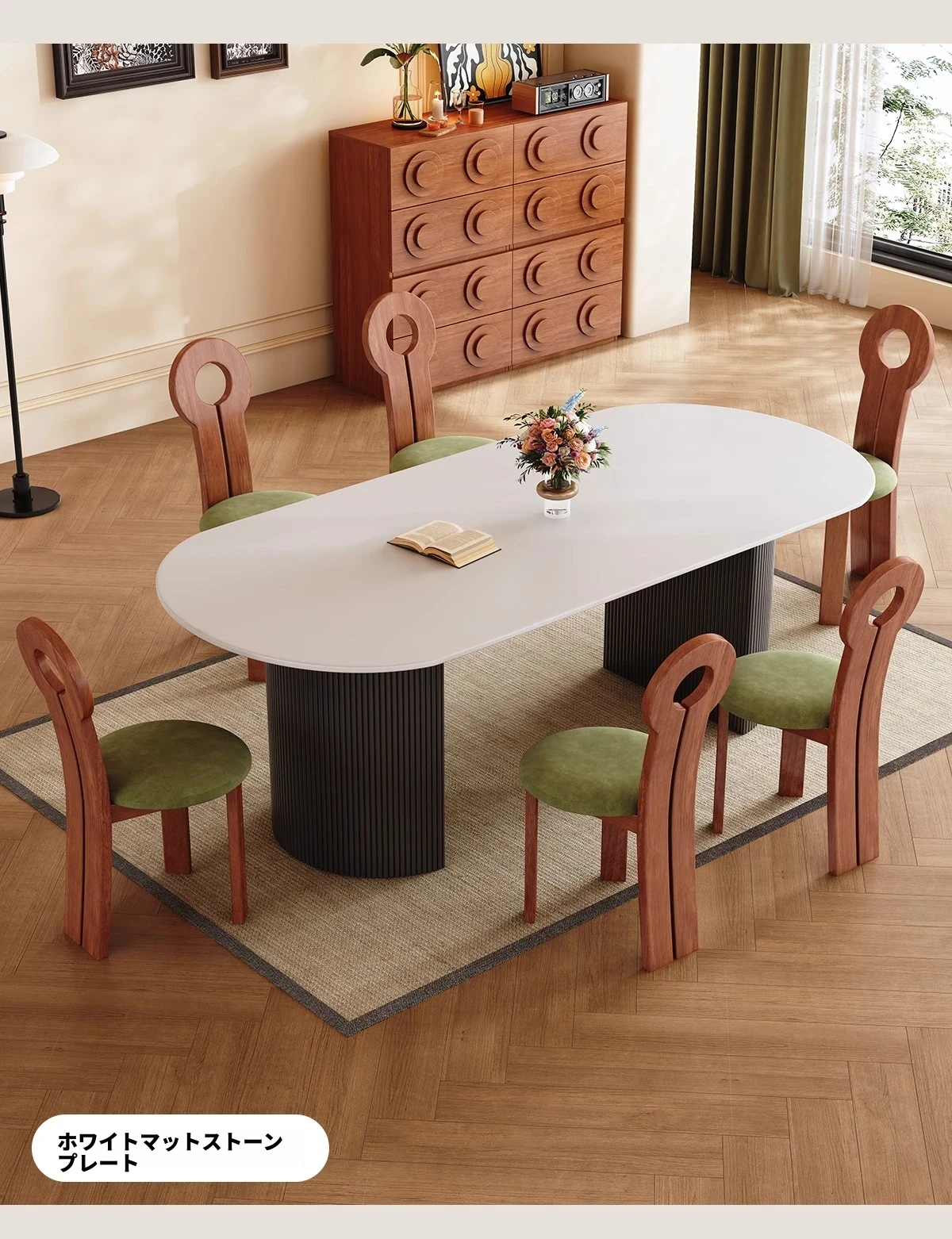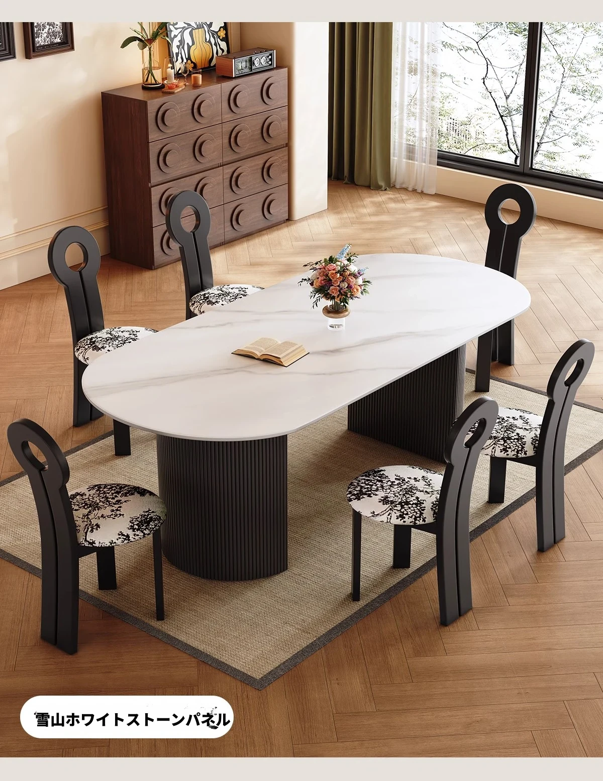 楕円岩板ダイニングテーブル+6人用フィッシュチェア
