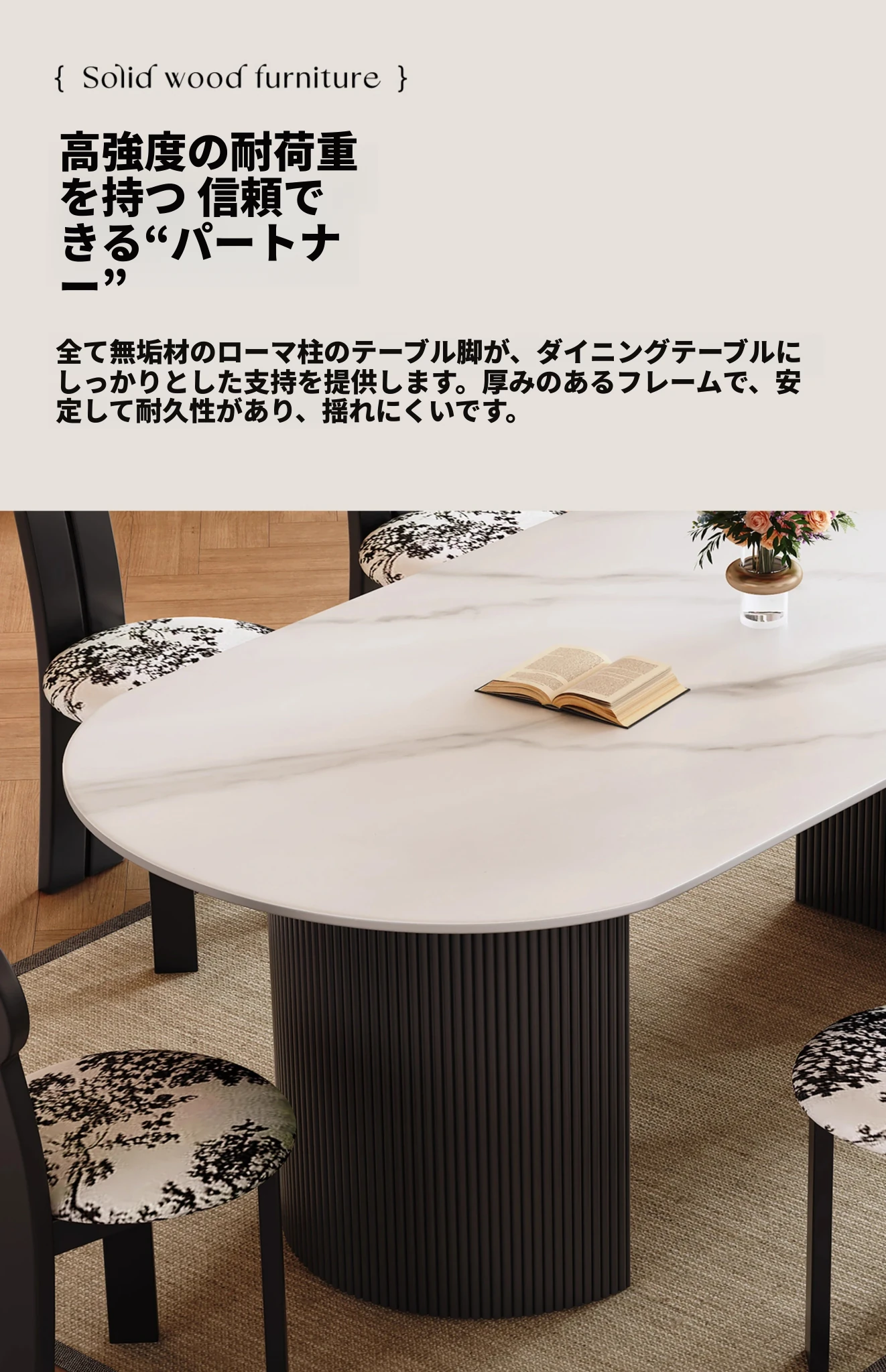 楕円岩板ダイニングテーブル+8ソフトパック【08】椅子