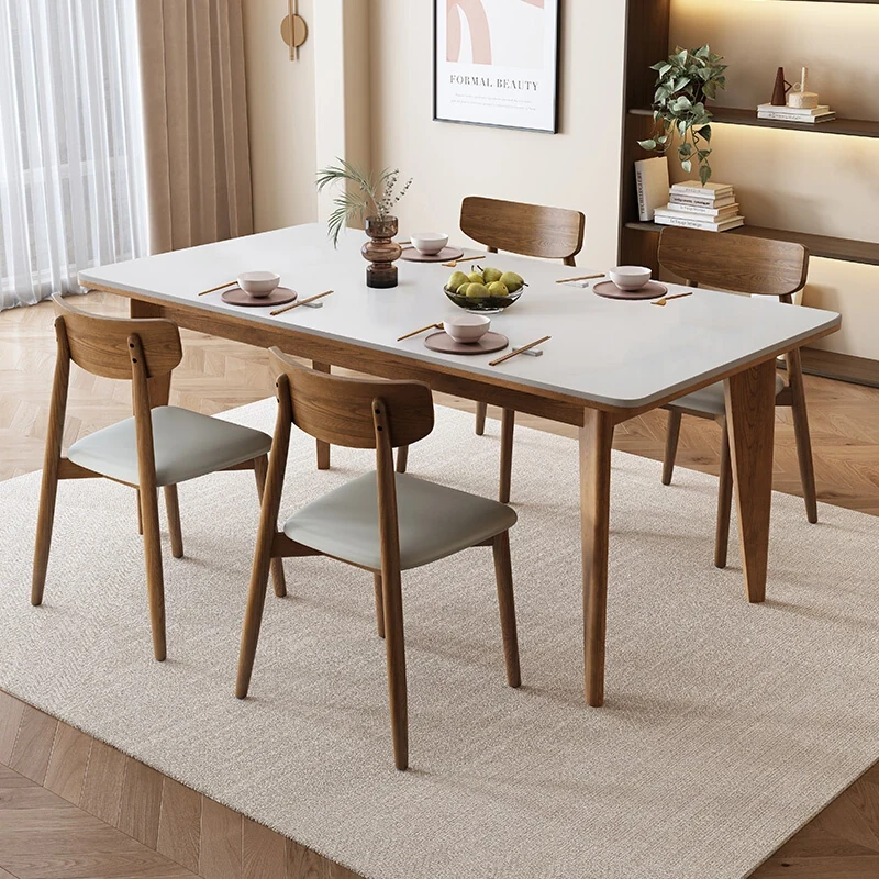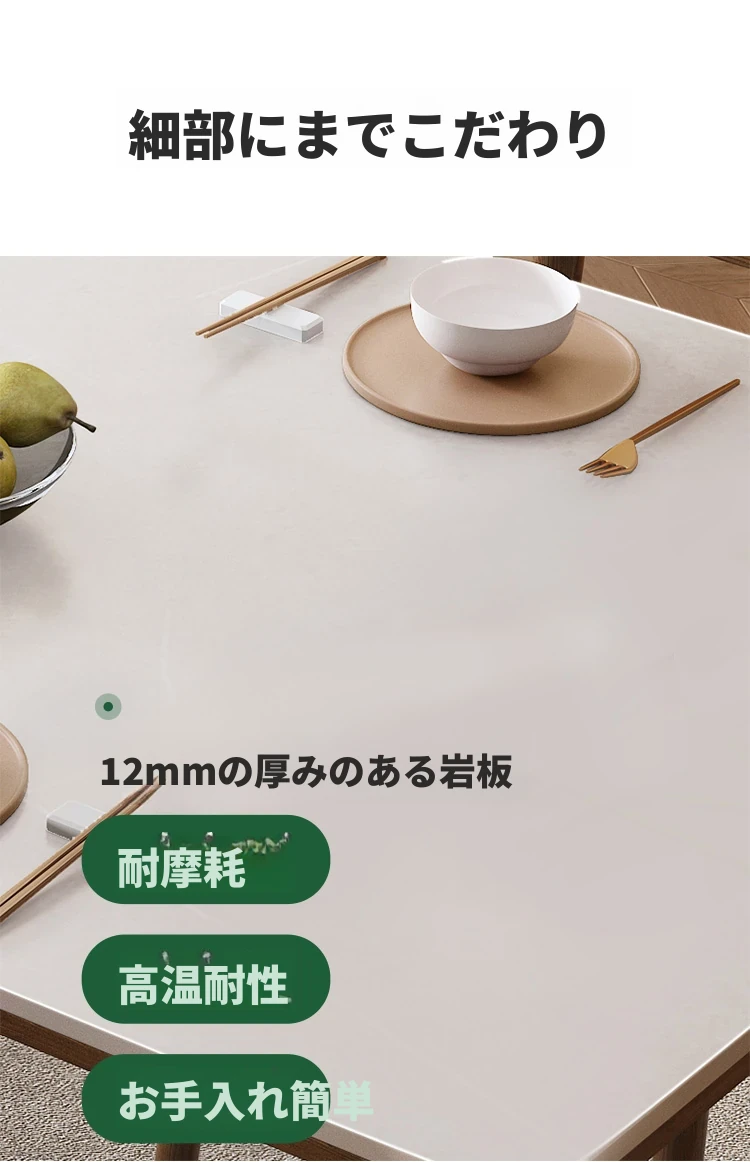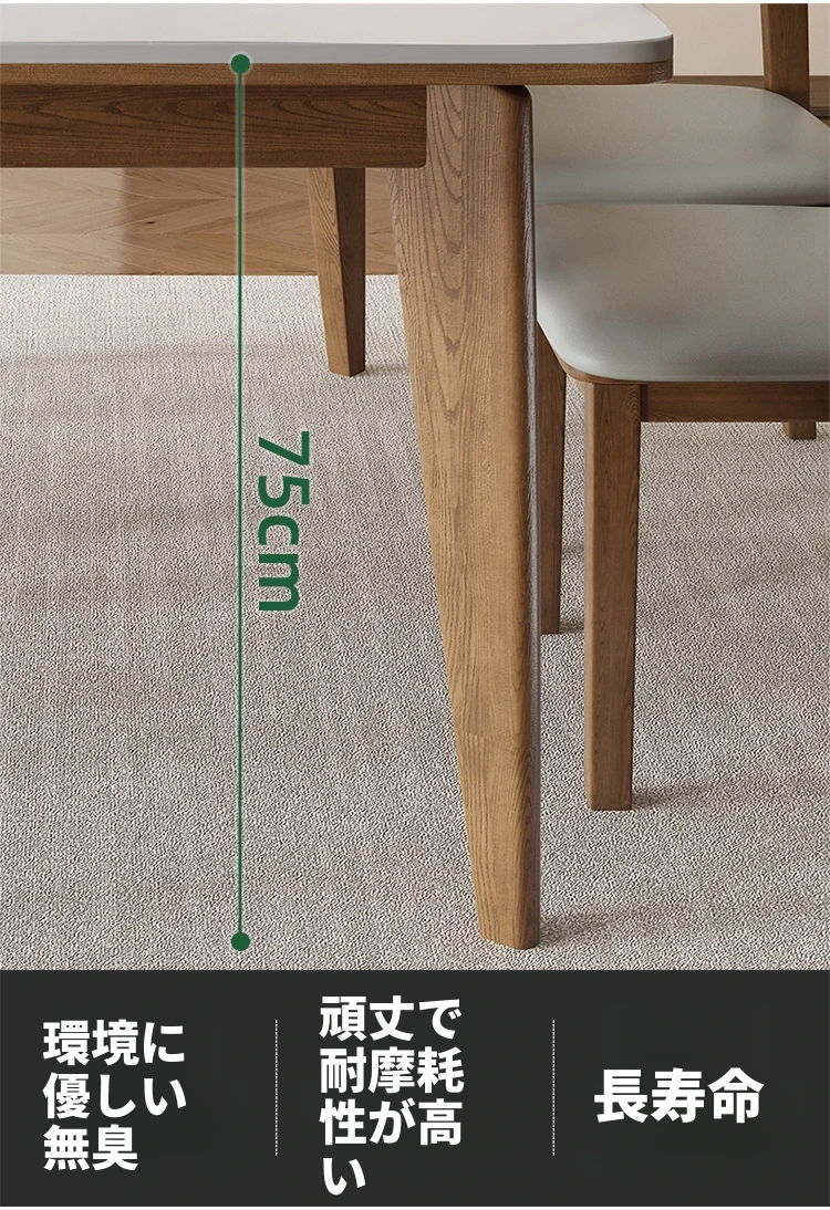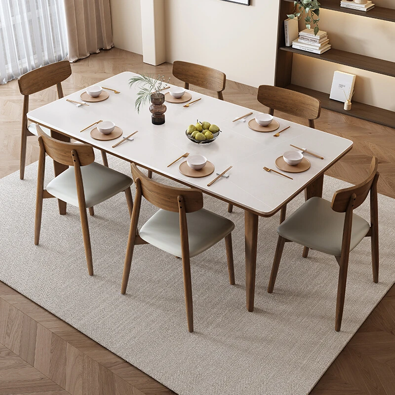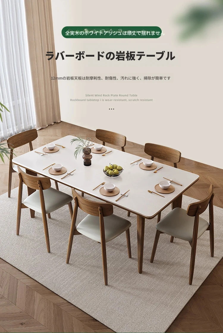 北欧スタイルの石板テーブル+6脚の椅子(12mm石板)