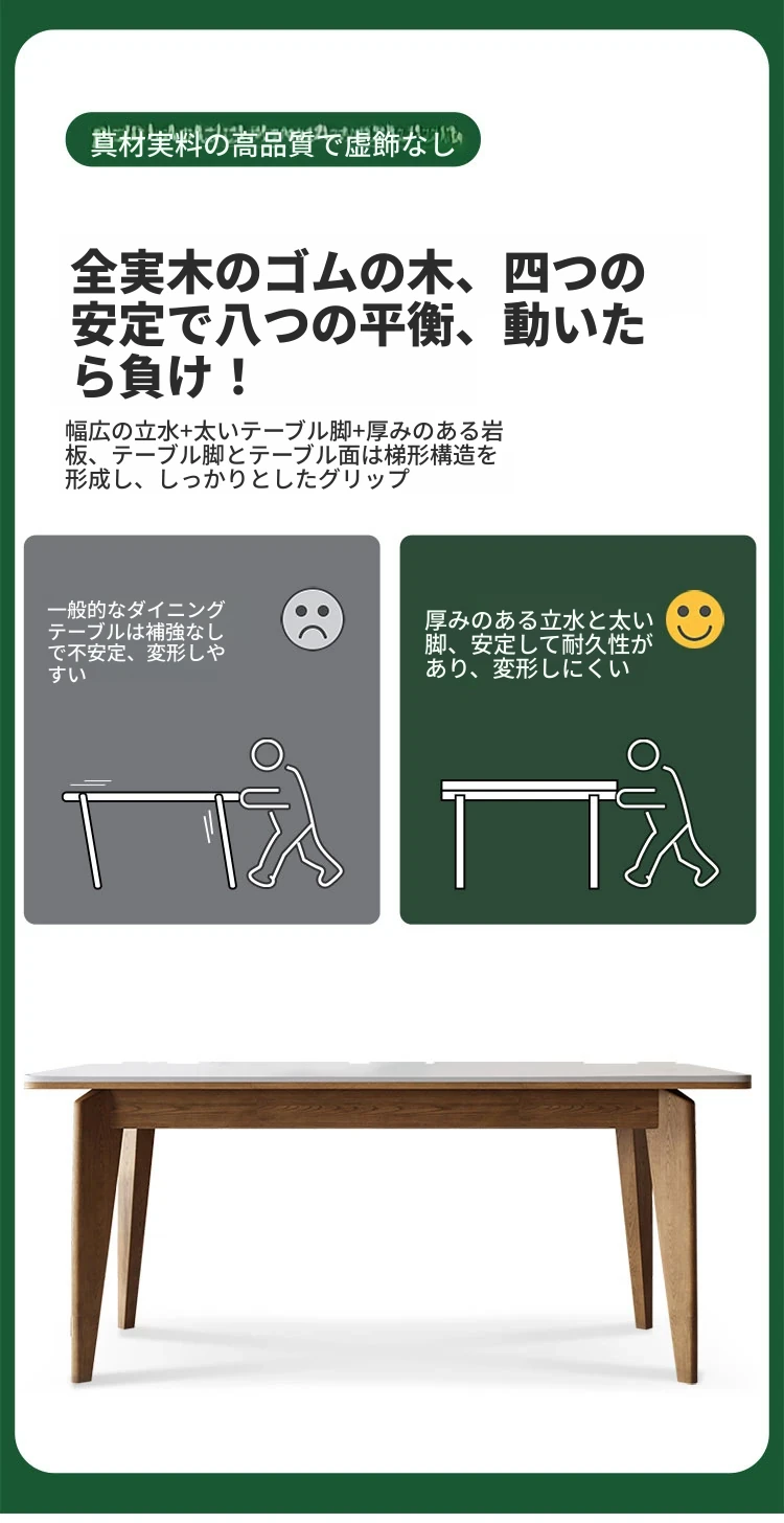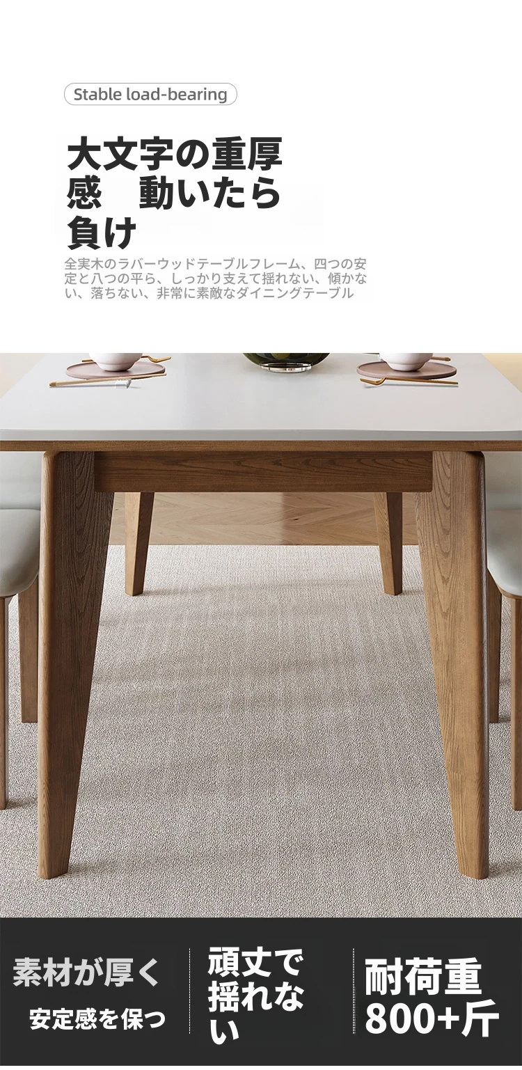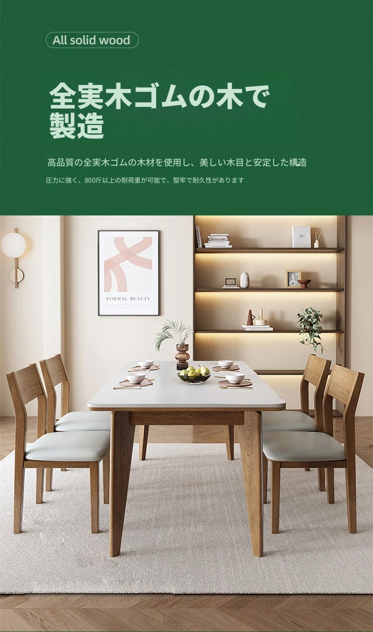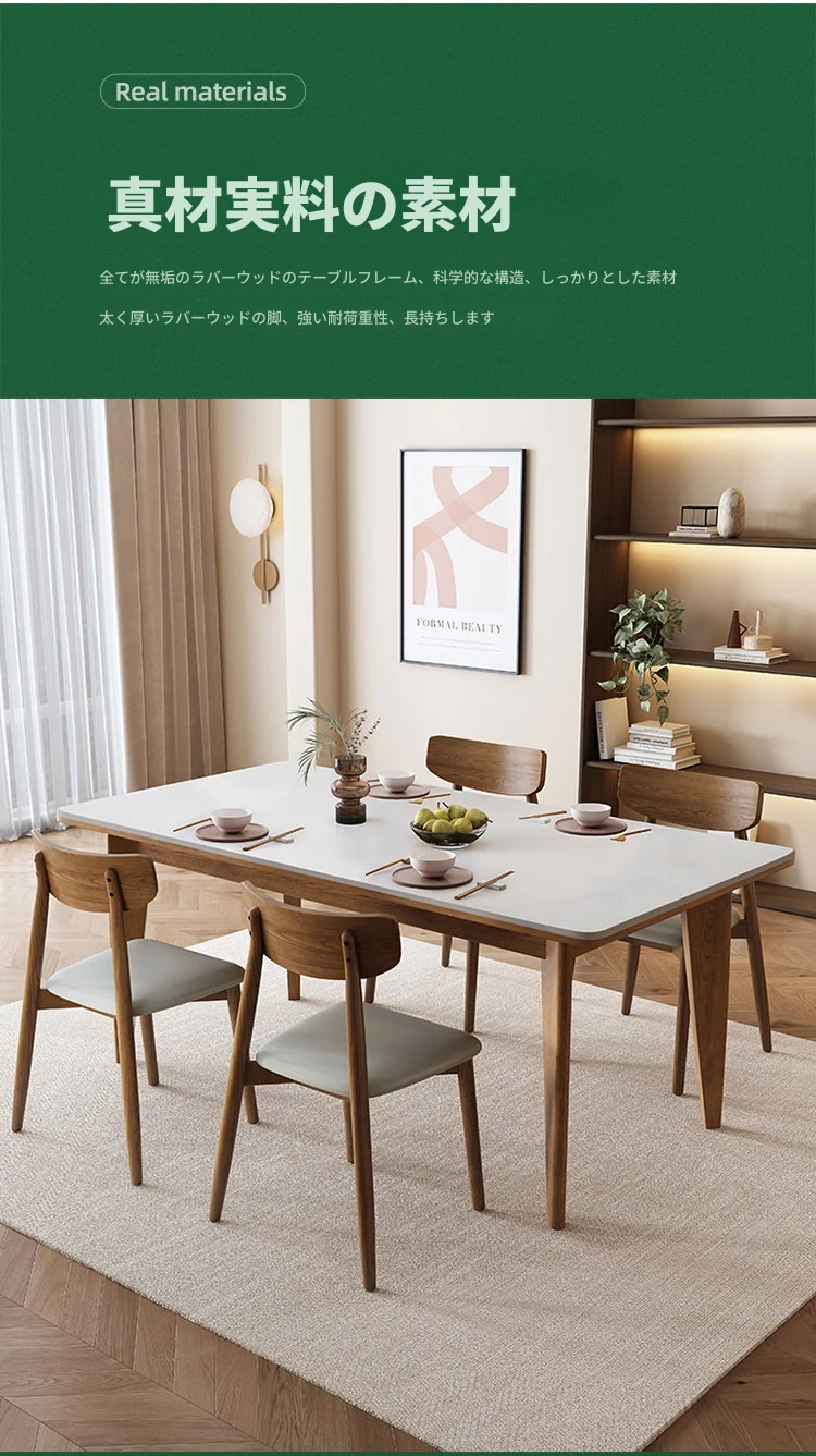 北欧スタイルの長方形ラバーウッドダイニングテーブルセット - シンプルで上質な全木製、軽やかなラグジュアリー感を演出。底板付きで安心の安定感!あなたの食卓を素敵に彩ります。