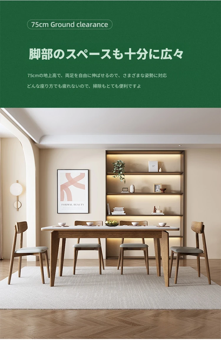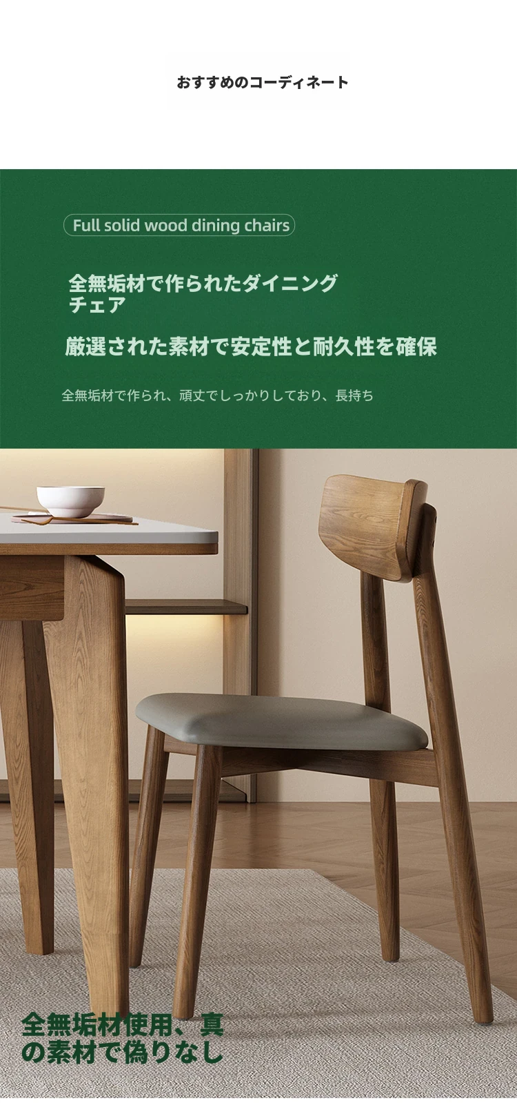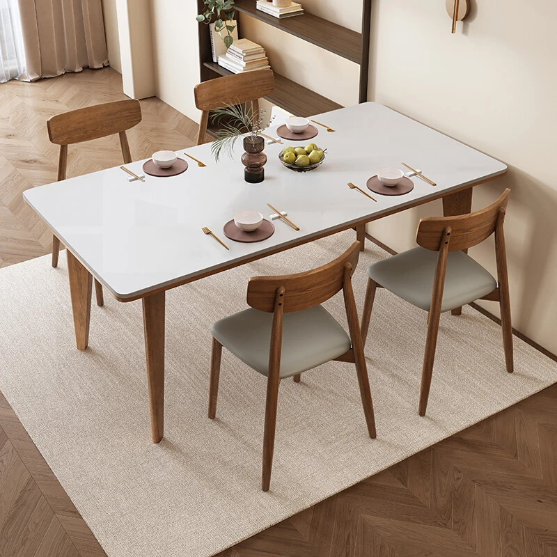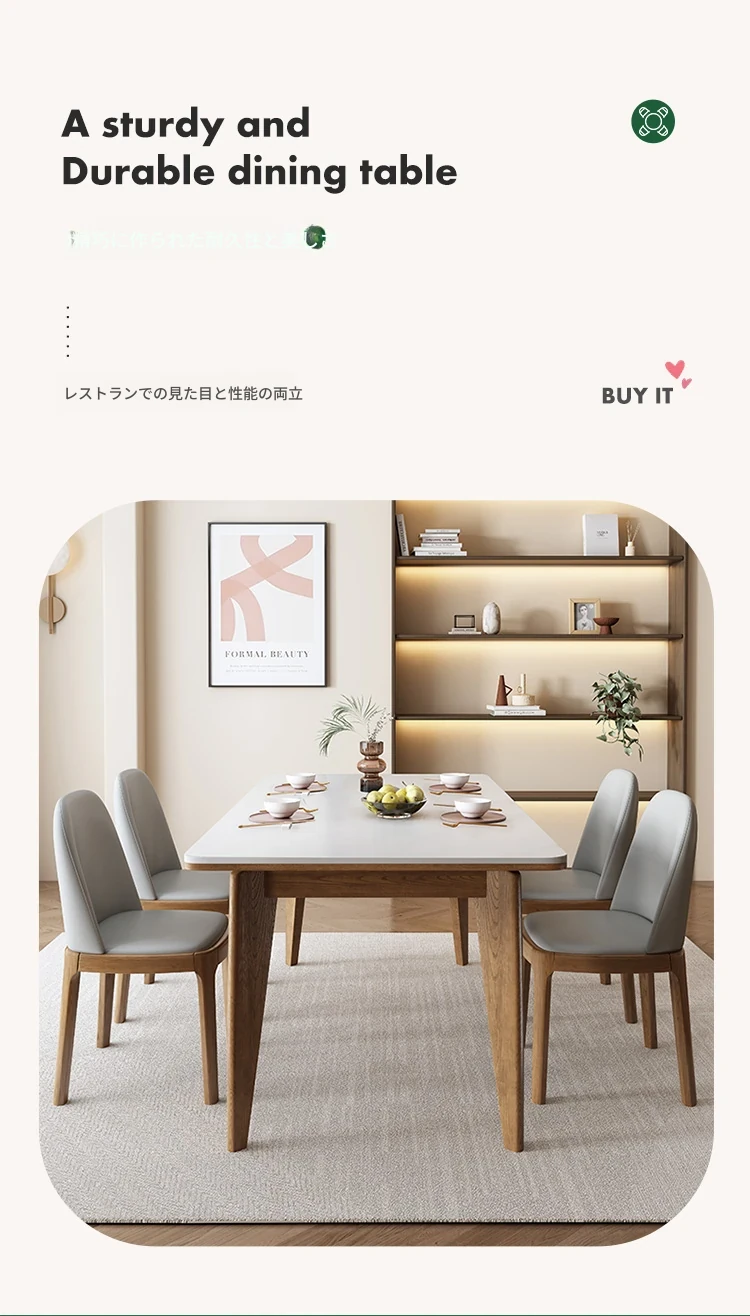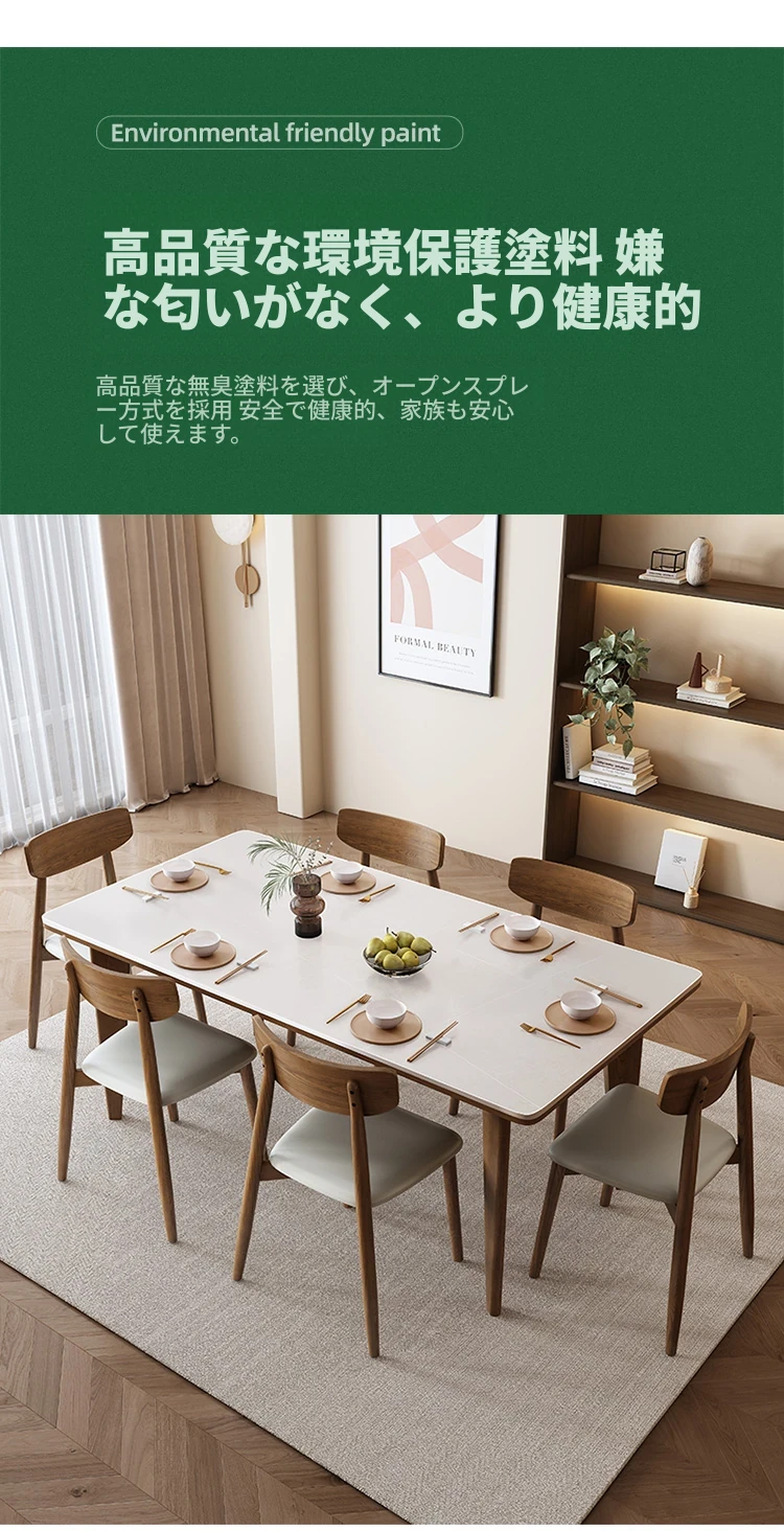 北欧スタイルの長方形ラバーウッドダイニングテーブルセット - シンプルで上質な全木製、軽やかなラグジュアリー感を演出。底板付きで安心の安定感!あなたの食卓を素敵に彩ります。