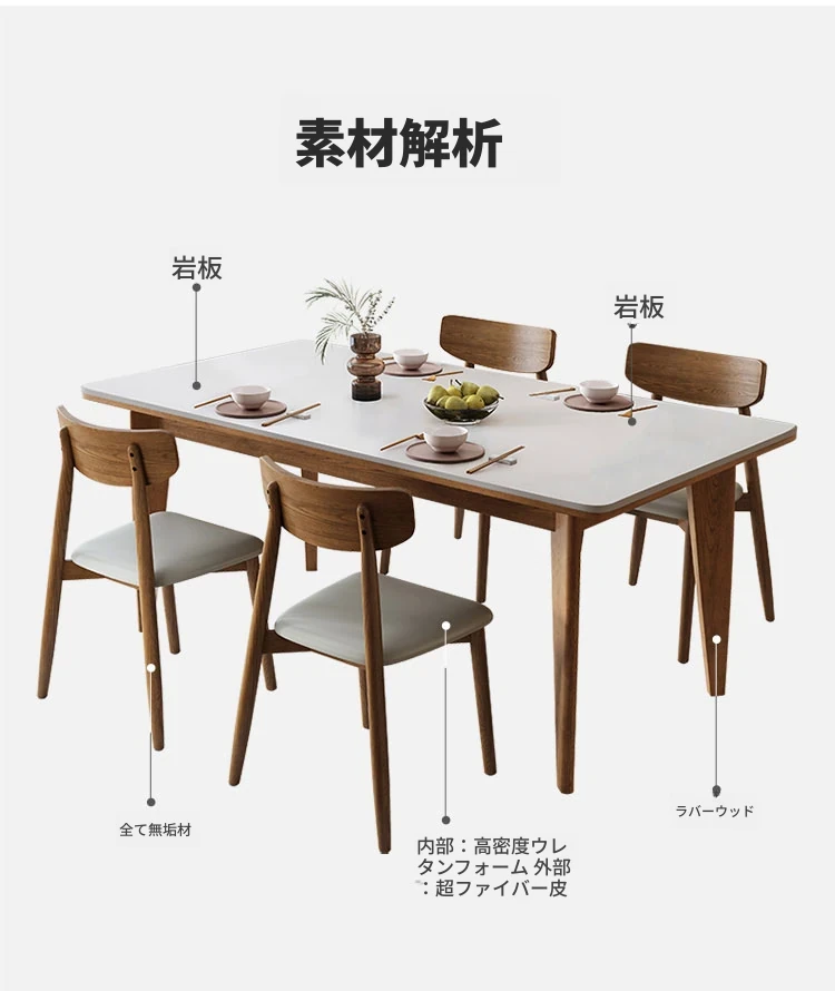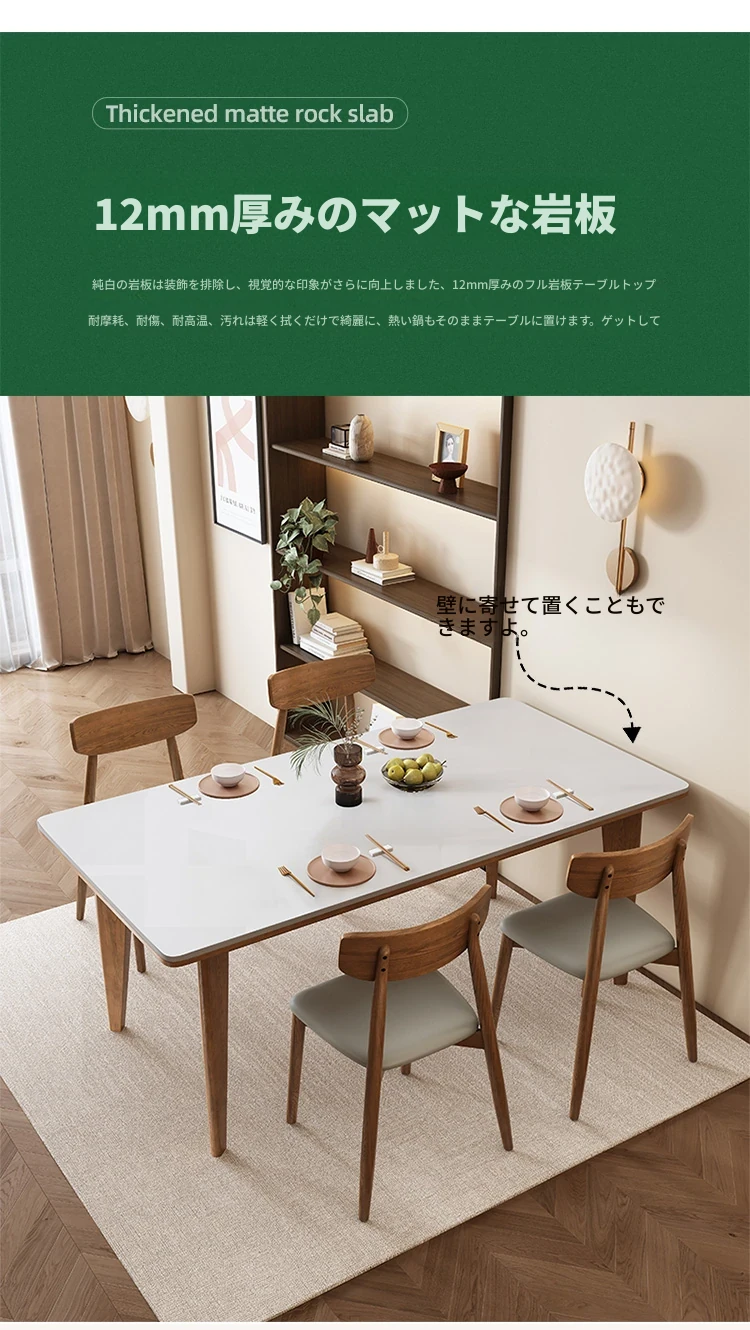 北欧スタイルの石板テーブル+4脚の椅子(12mm石板)