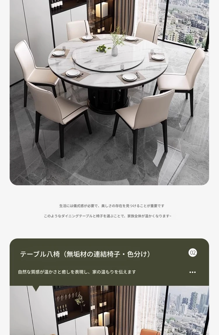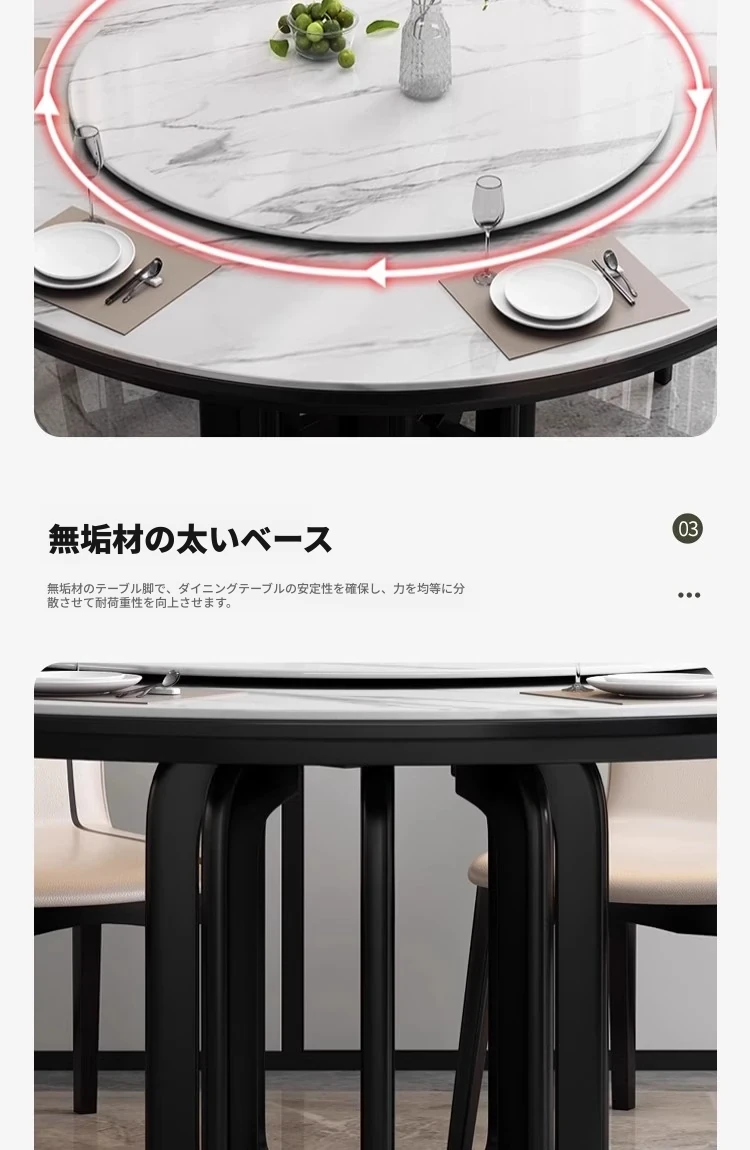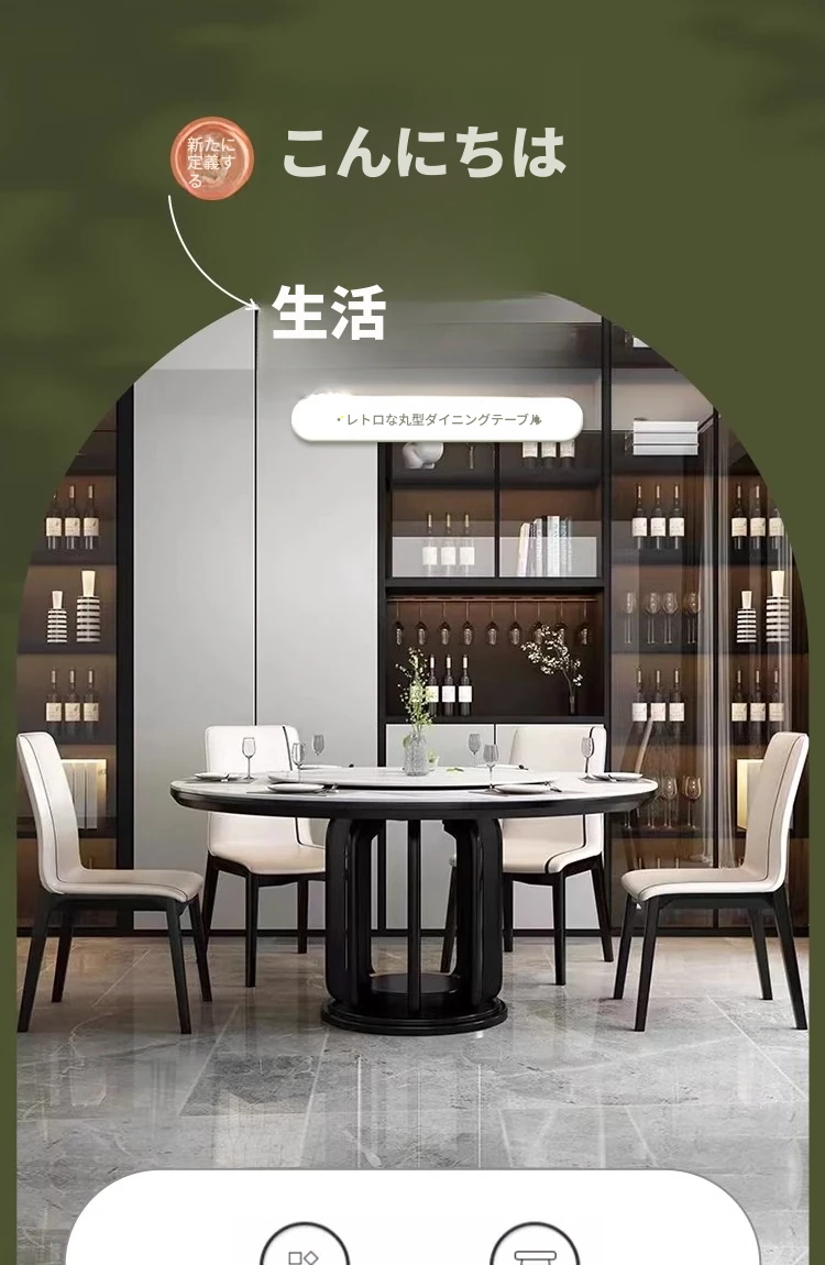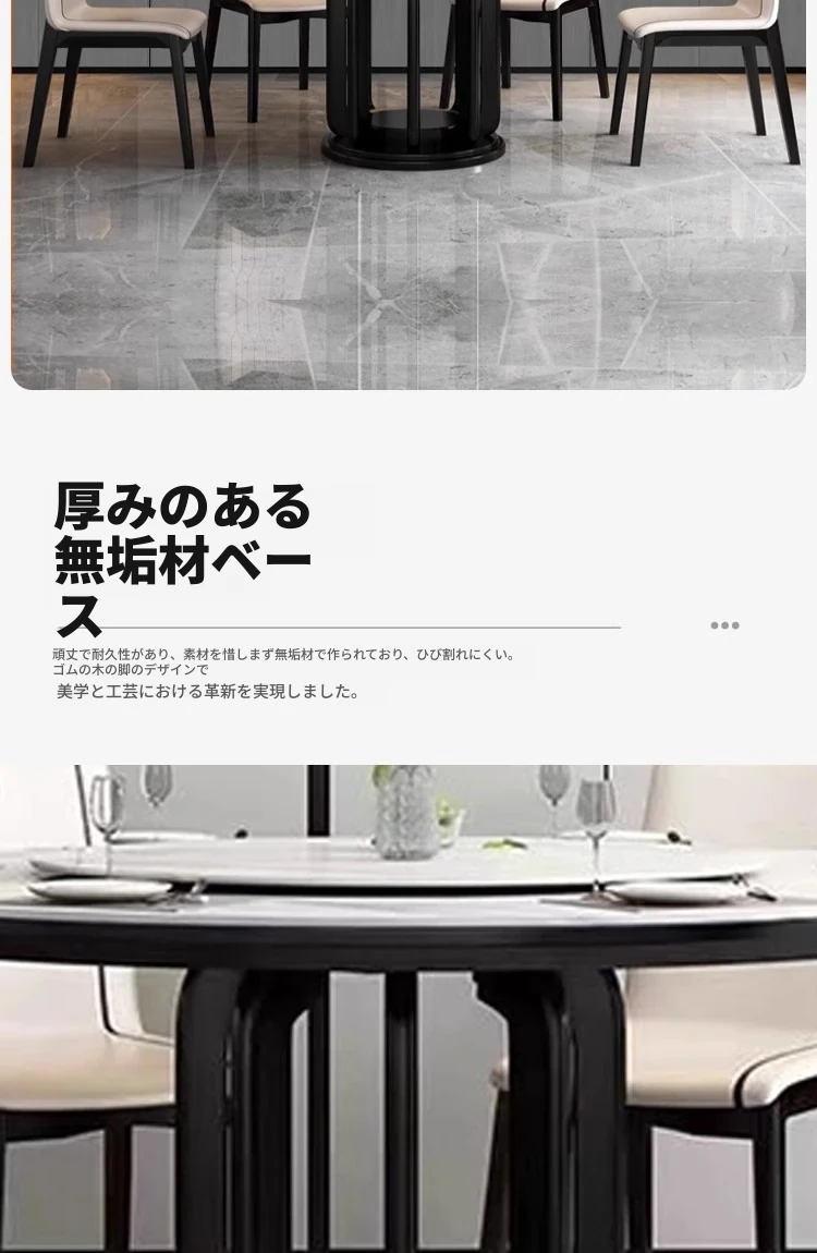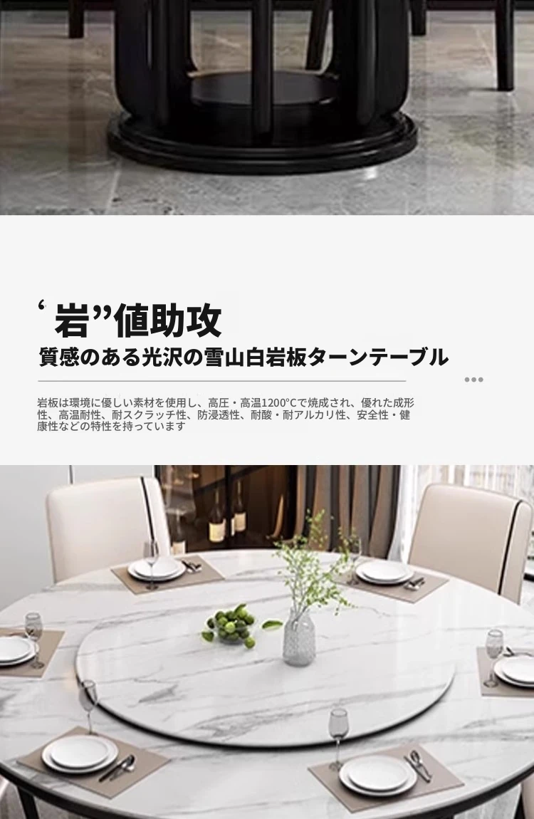 高級岩板のモダンシンプル軽奢華ダイニングテーブル - 回転式プレート付き、電磁調理器対応の実木製円形テーブル。ホテルや家庭に最適!洗練されたデザインで、食事の時間を特別なひとときに。