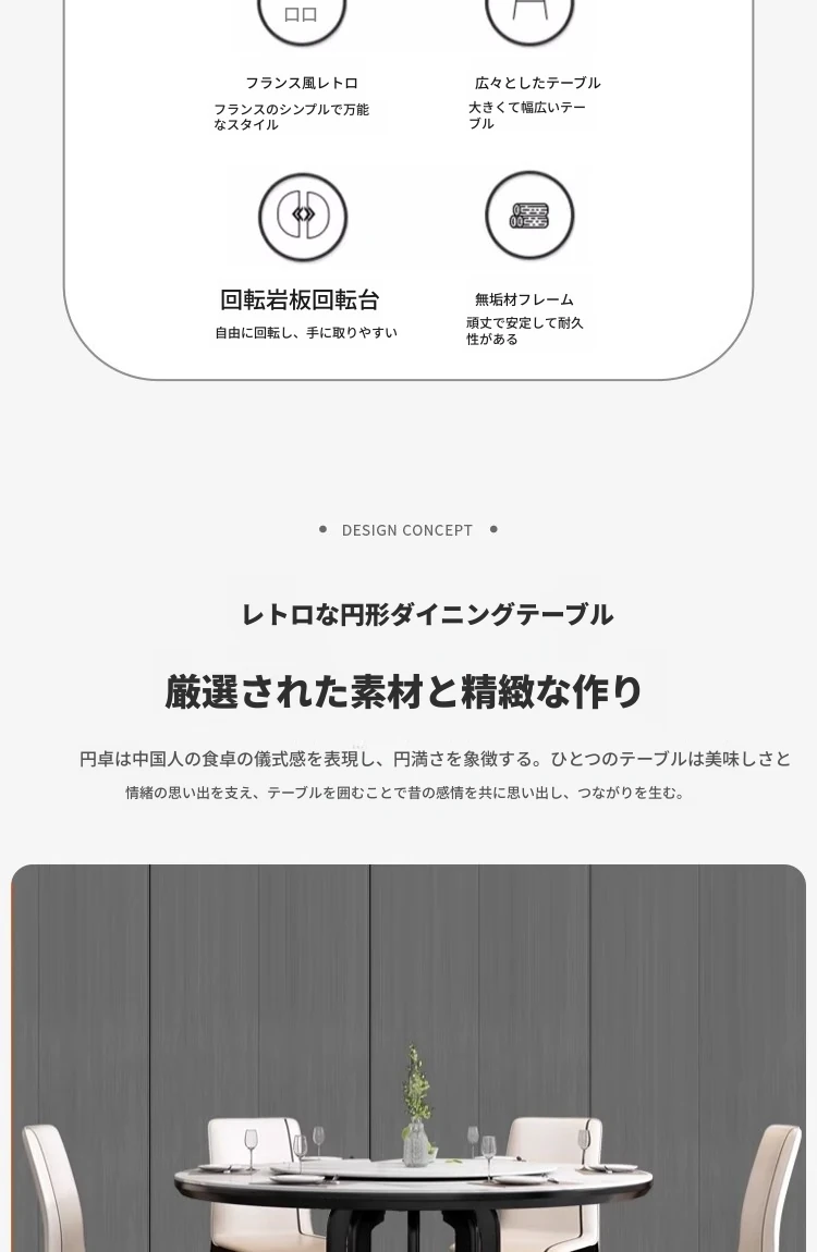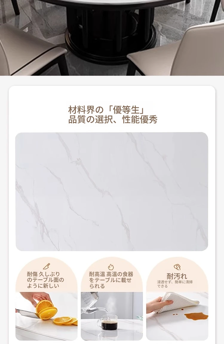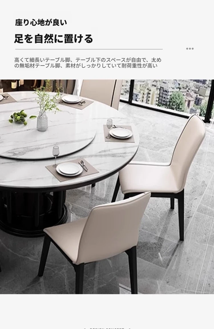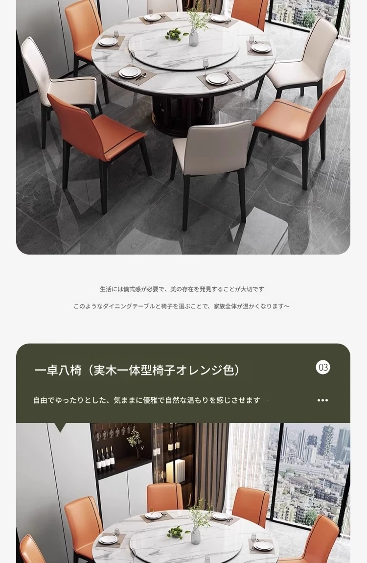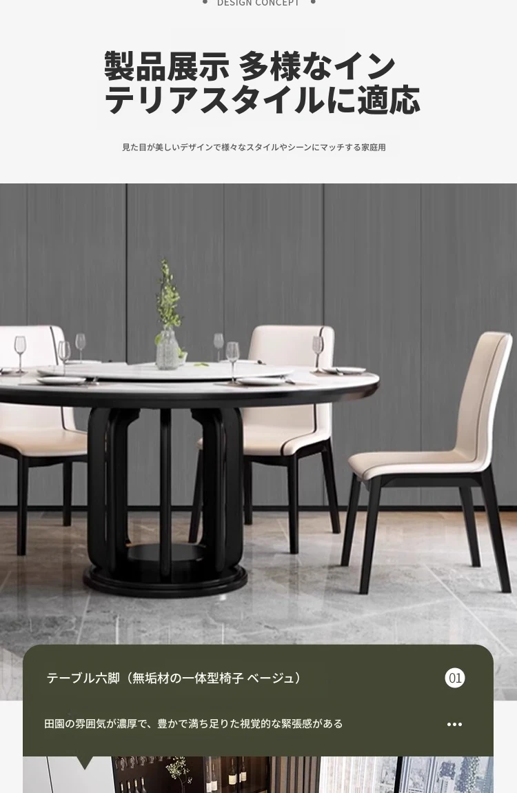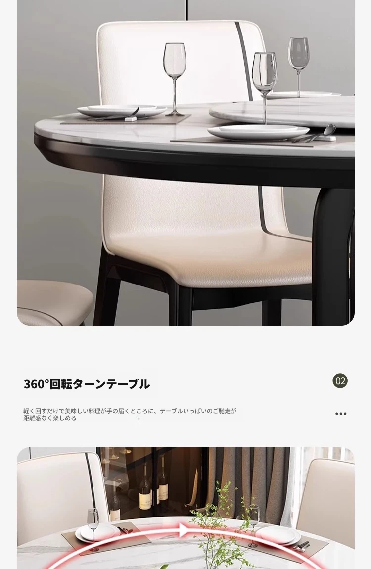 高級岩板のモダンシンプル軽奢華ダイニングテーブル - 回転式プレート付き、電磁調理器対応の実木製円形テーブル。ホテルや家庭に最適!洗練されたデザインで、食事の時間を特別なひとときに。