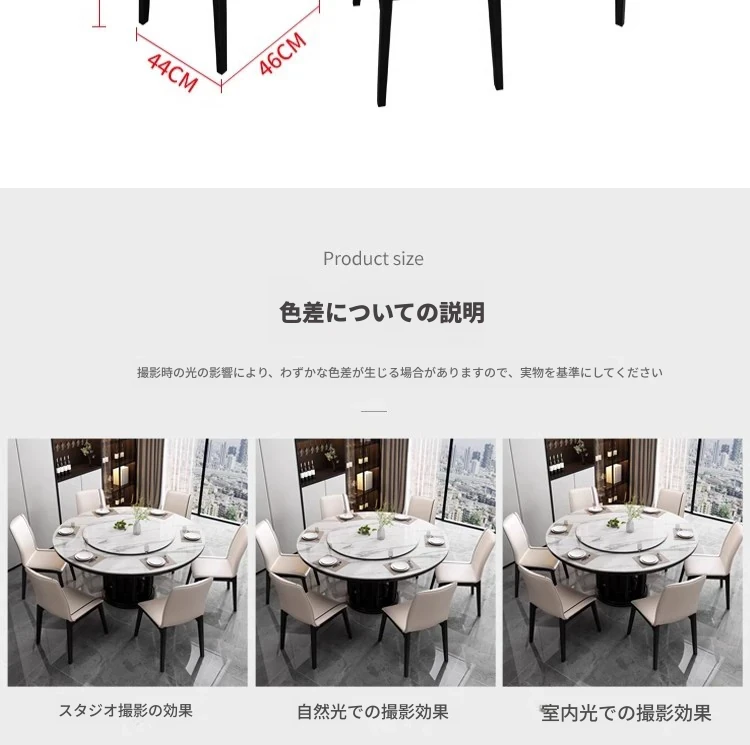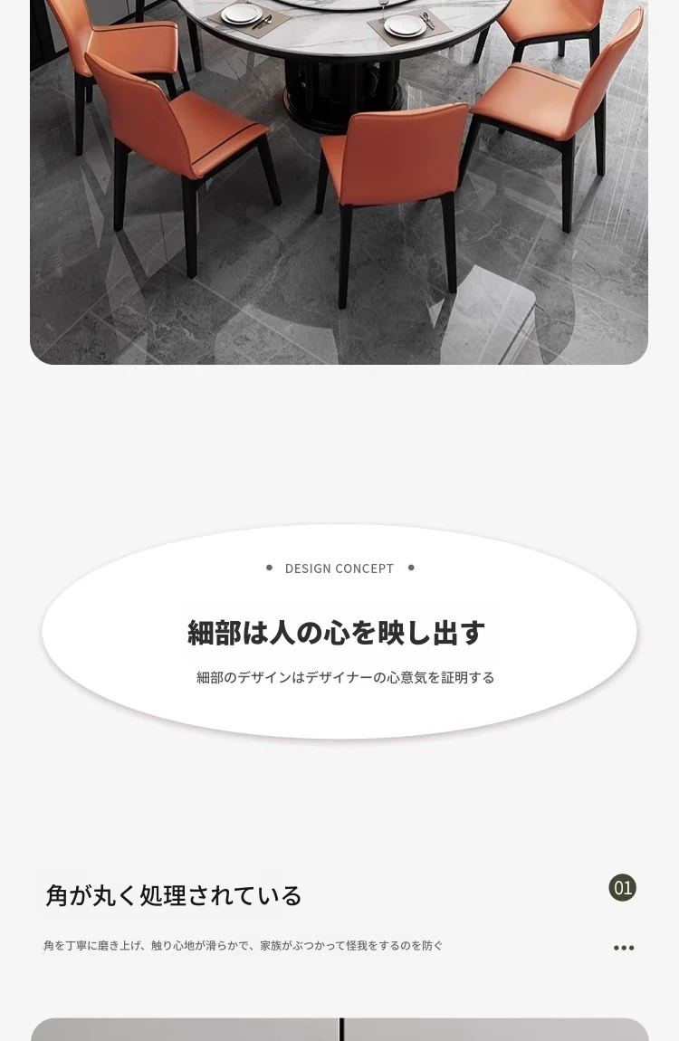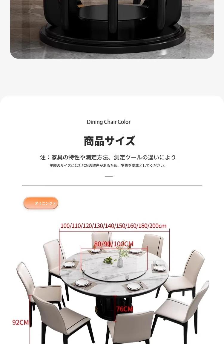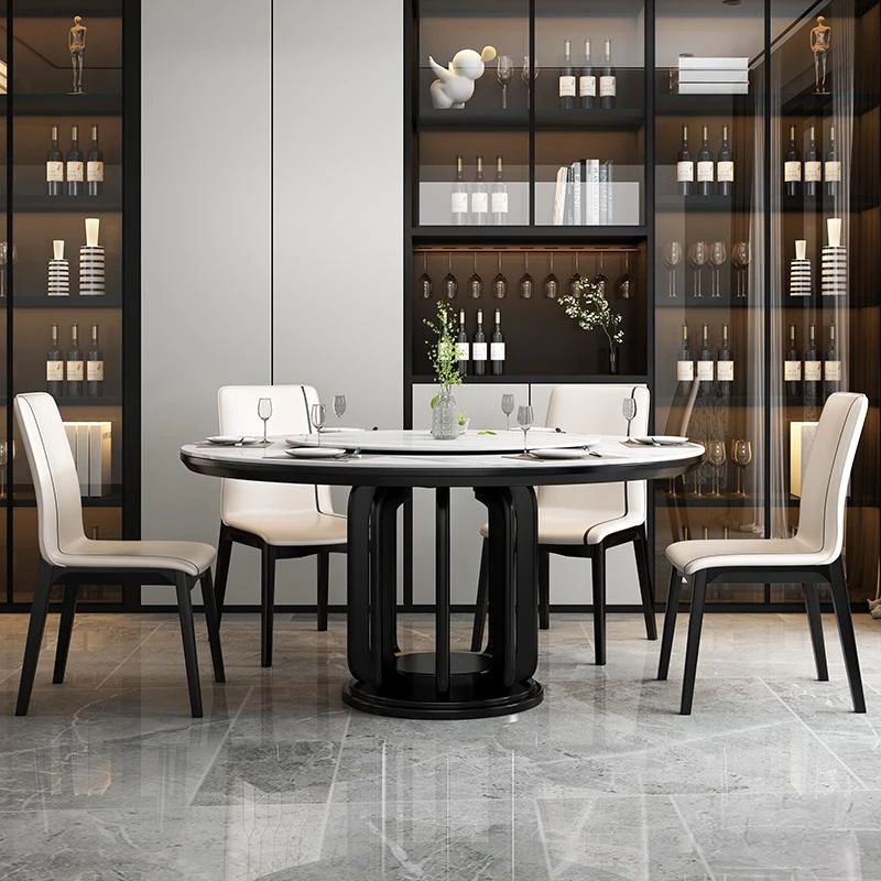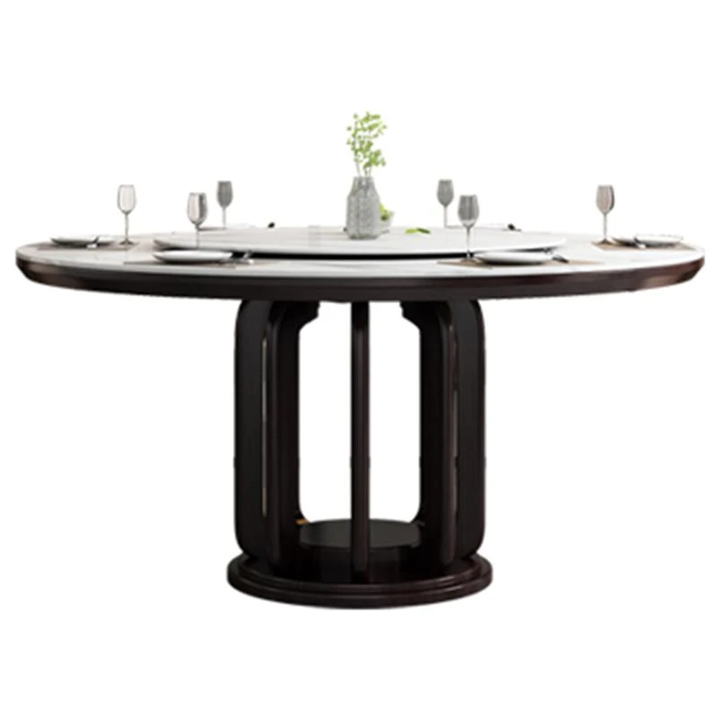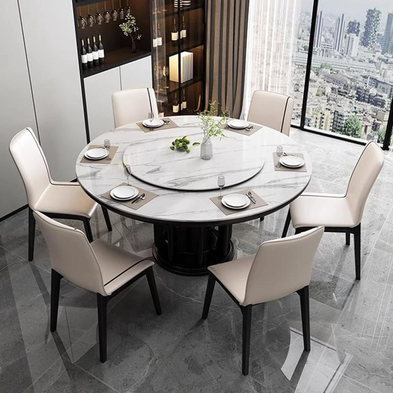高級岩板のモダンシンプル軽奢華ダイニングテーブル - 回転式プレート付き、電磁調理器対応の実木製円形テーブル。ホテルや家庭に最適!洗練されたデザインで、食事の時間を特別なひとときに。