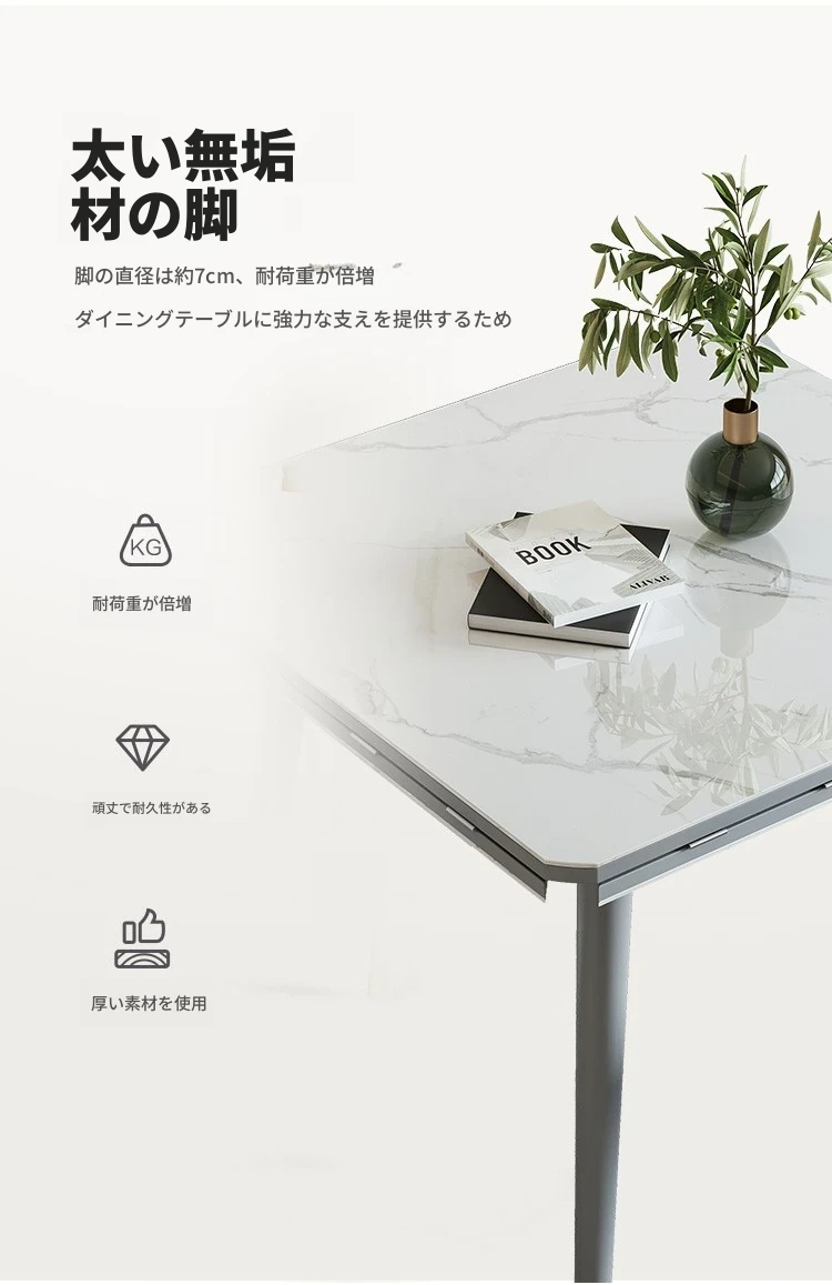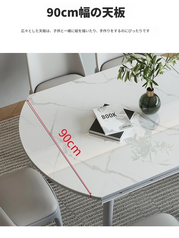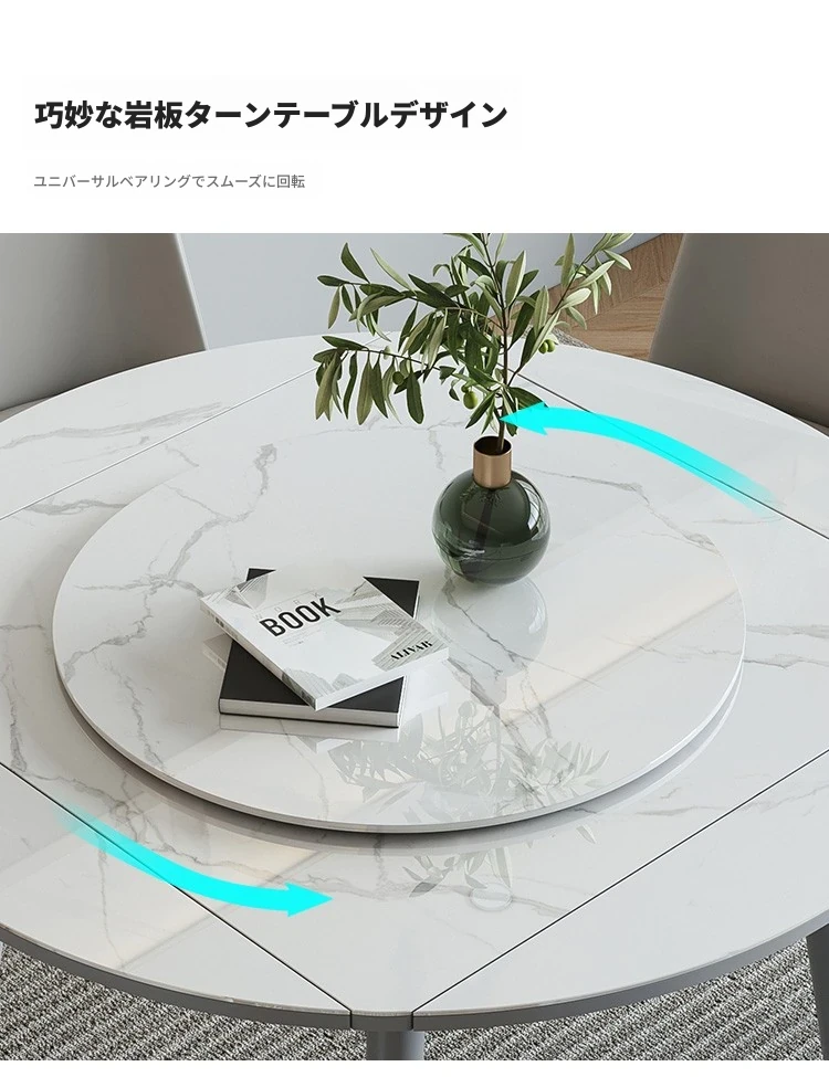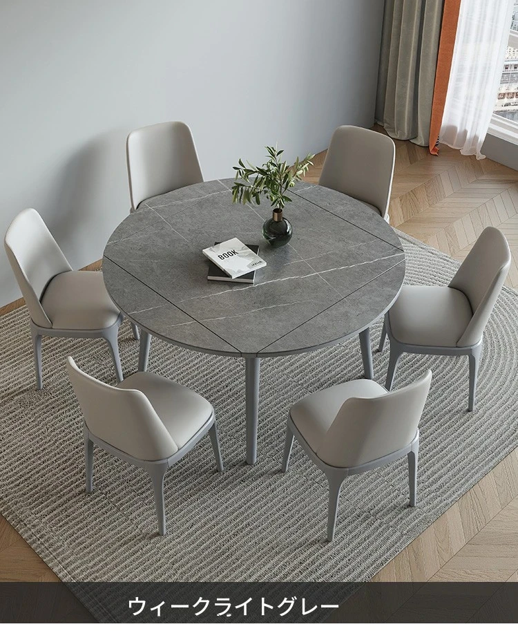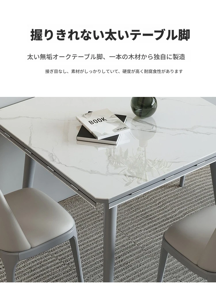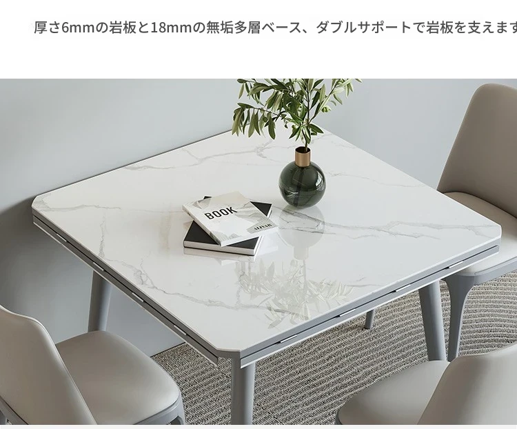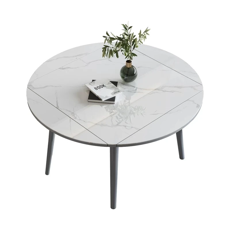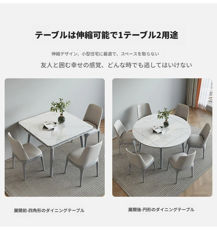 折りたたみ可能な岩板ダイニングテーブル|コンパクトな家用テーブル|実木製|四角と丸の2WAYデザイン|電磁調理器付きで便利!小さなお部屋にもぴったり!