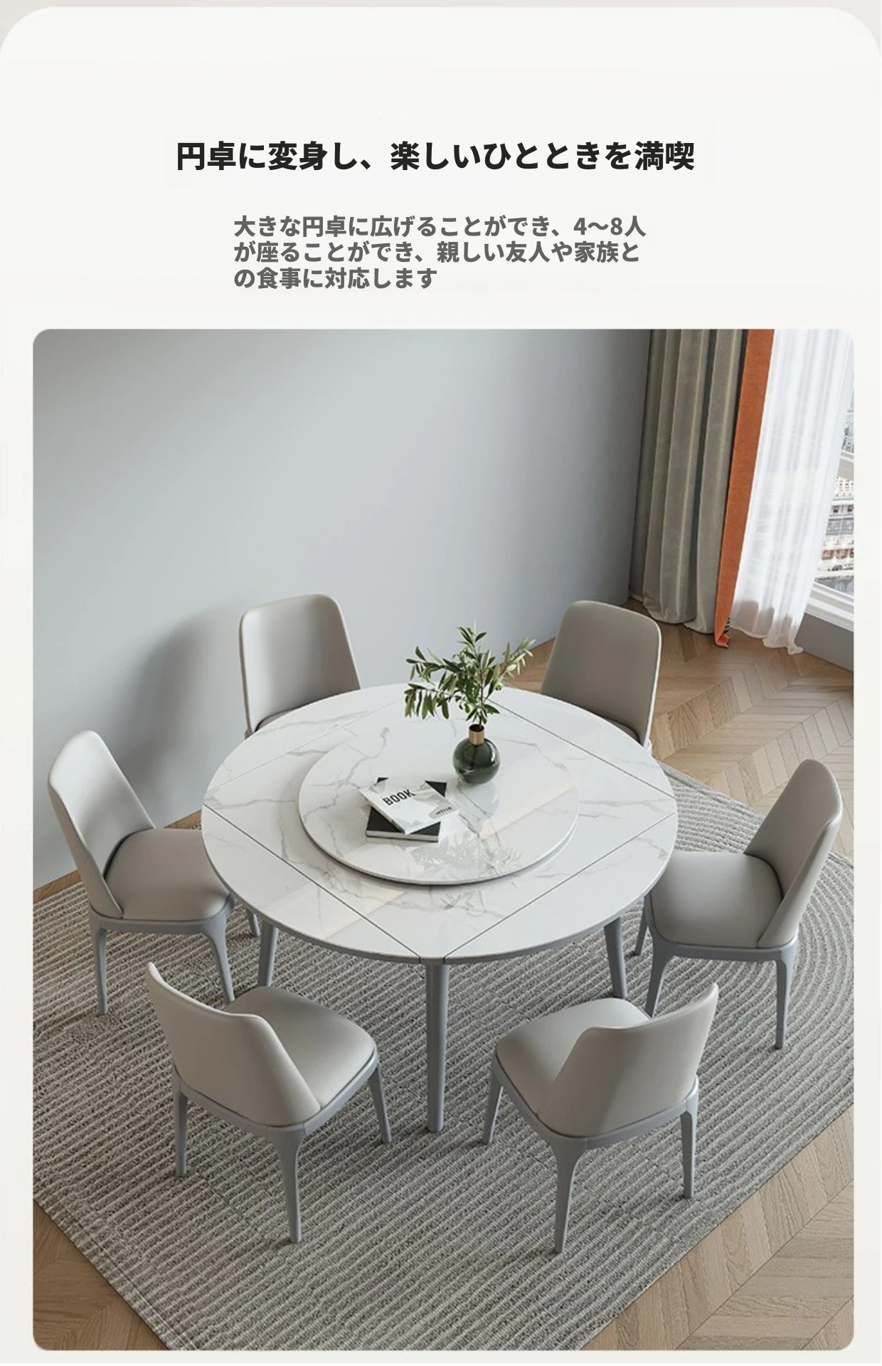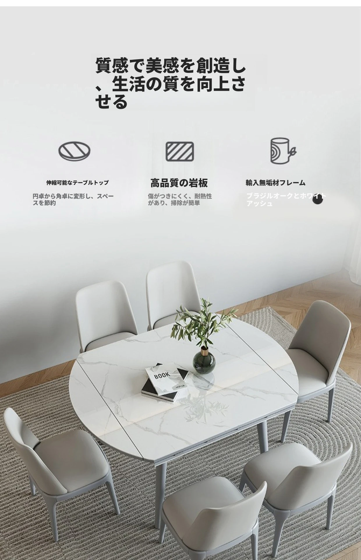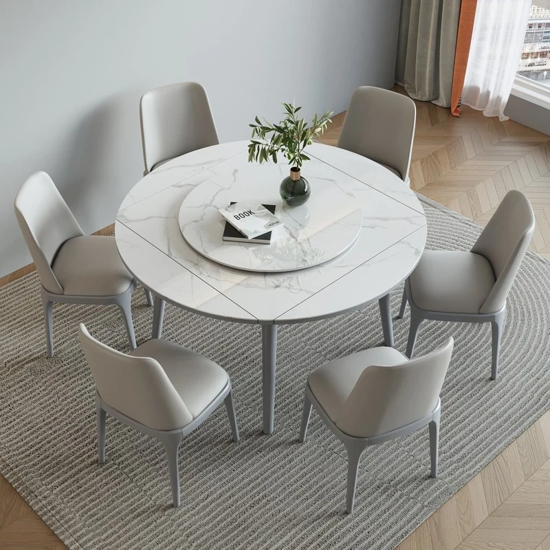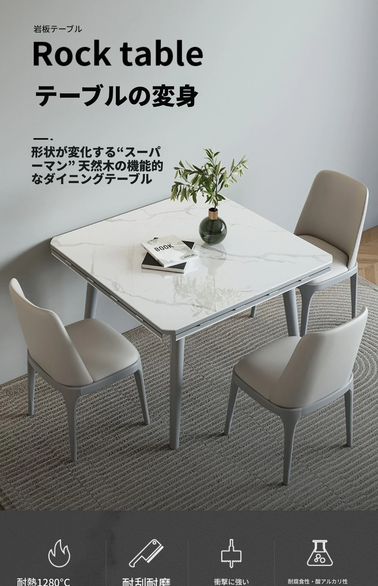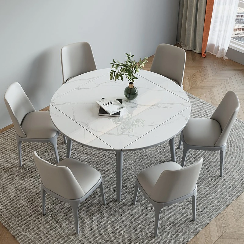 折りたたみ可能な岩板ダイニングテーブル|コンパクトな家用テーブル|実木製|四角と丸の2WAYデザイン|電磁調理器付きで便利!小さなお部屋にもぴったり!