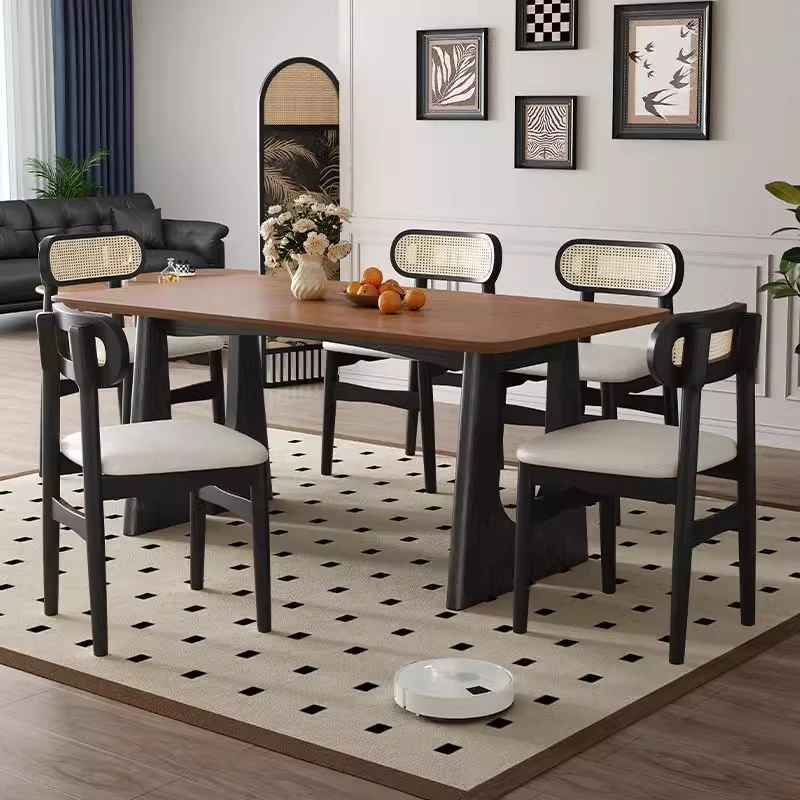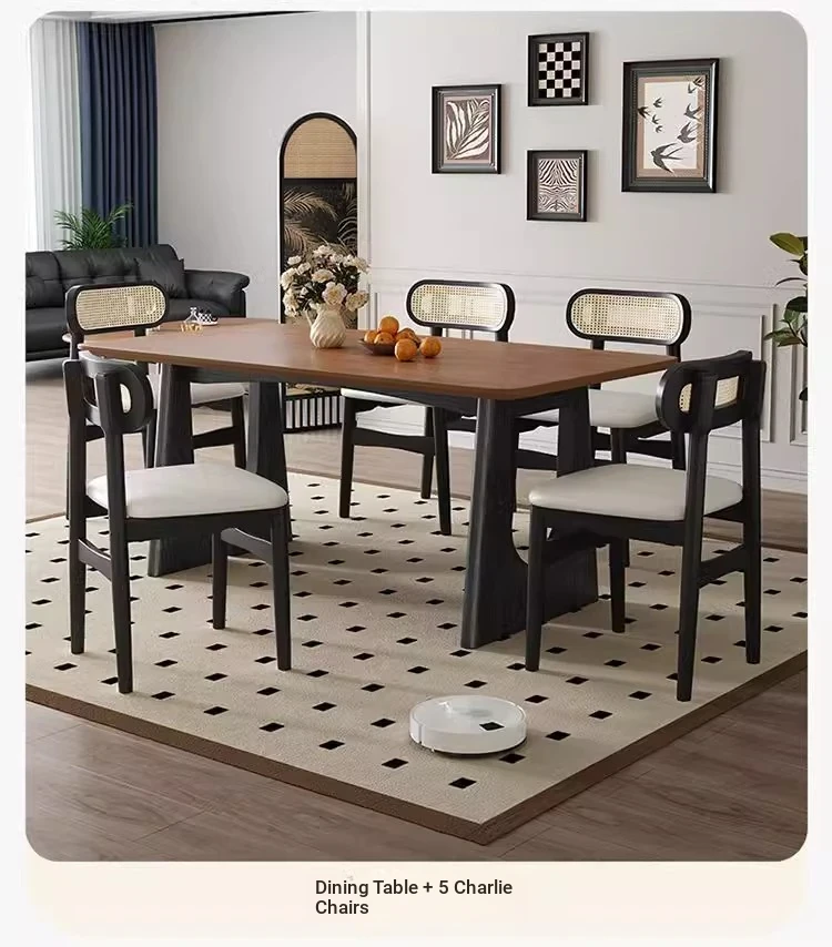 629# white wax square table + medieval Heart chair * 6