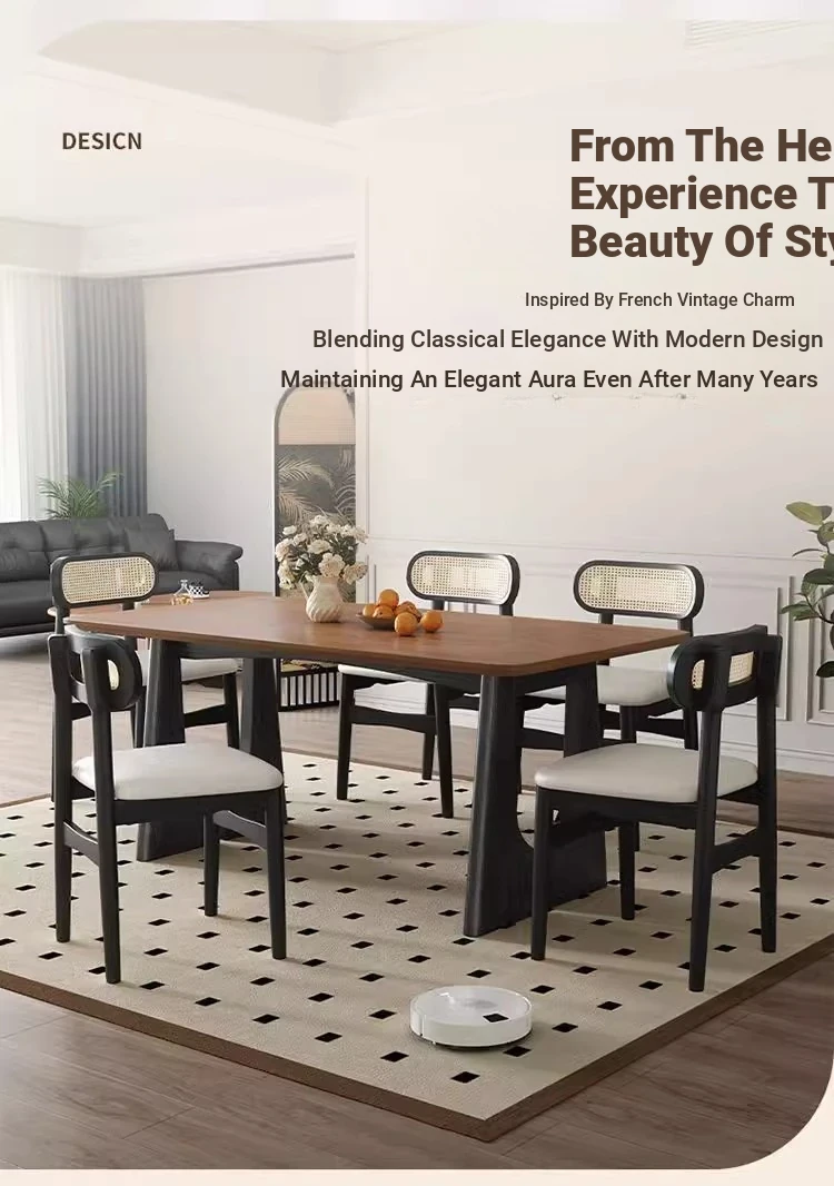 French Style Compact Dining Table for Small Spaces - Vintage Oval Solid Ash Wood with Stone Tabletop - Perfect for Cozy Homes
